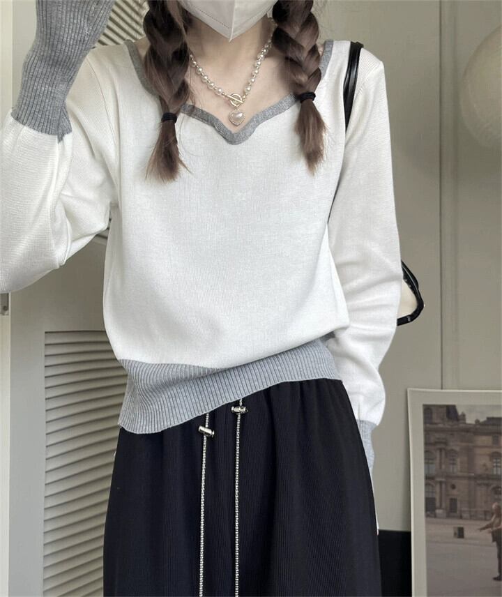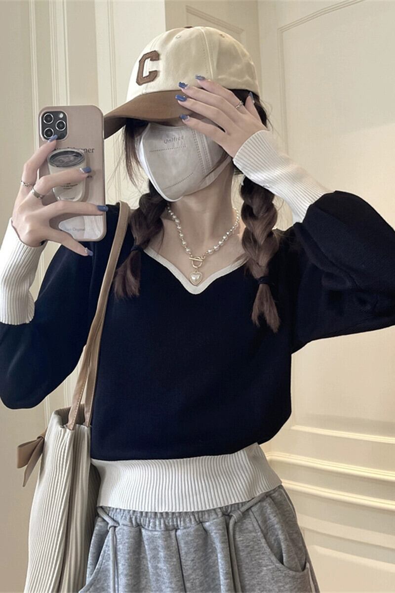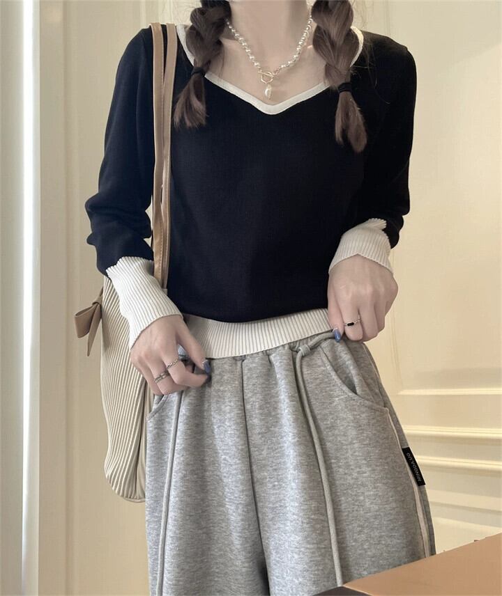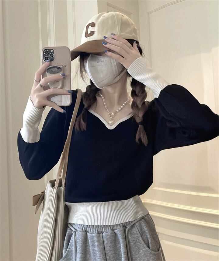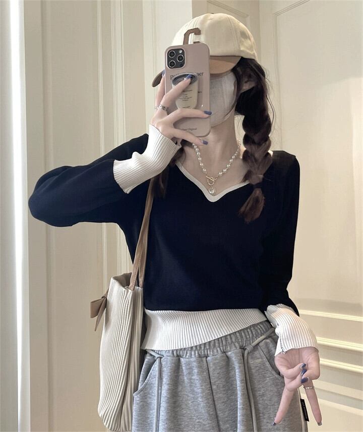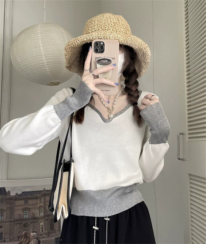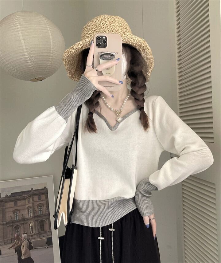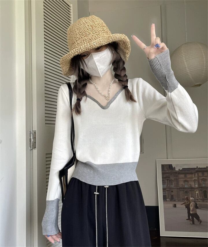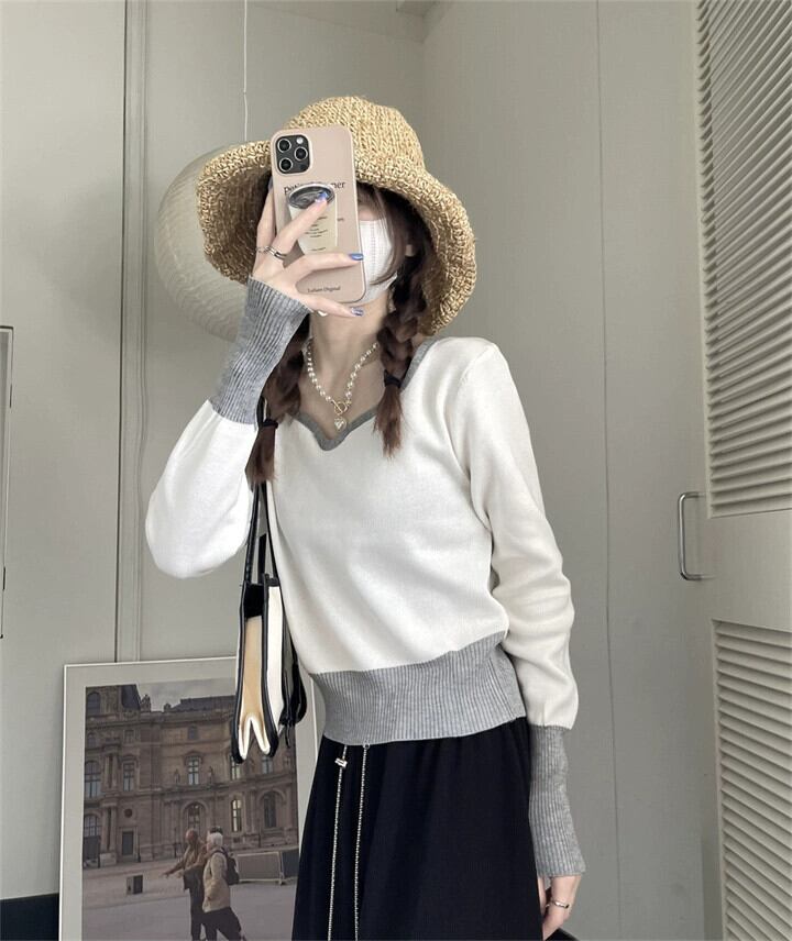 厚みのある v ネックボトミングシャツ女性 2023 秋と冬の新しいルーズでスリムフィットショートニットセーター小人 オータム 秋物 ウィンター 冬物 Vネック 7460038731020558 | framboise21