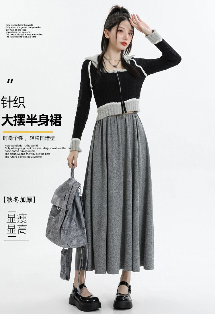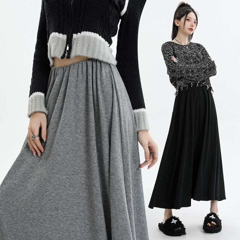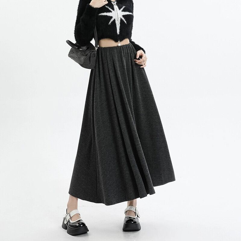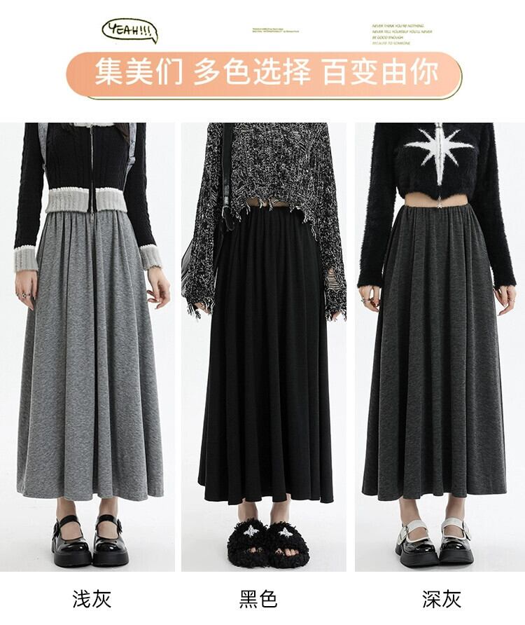 ミドル丈のニットAラインスカートレディース、2023年秋冬新作痩身、ヒップカバー、ドレープ性のある万能ハイウエストロングスカート オータム 秋物 ウィンター 冬物 7460065271415845 | framboise21