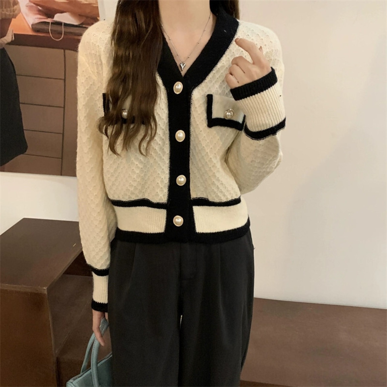 Xiaoxiangfeng Vネックセータージャケット女性の秋冬、シックでルーズなデザインのアウターウェア、ショートニットカーディガン小人 オータム 秋物 ウィンター 冬物 7460026604753792
