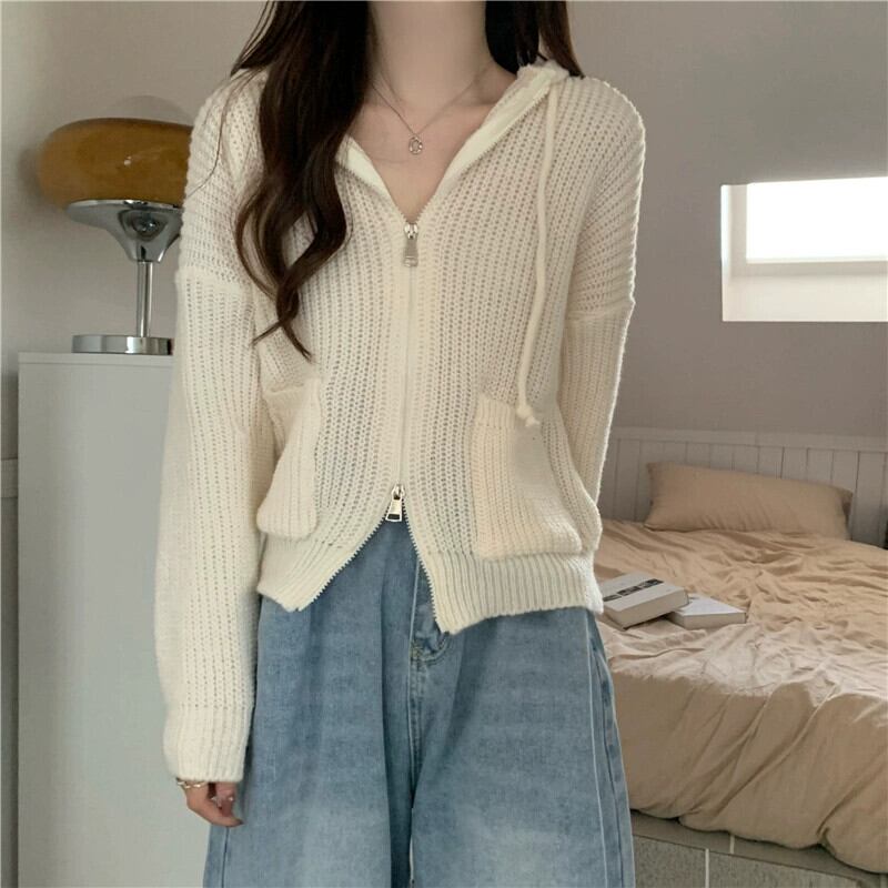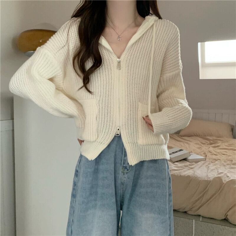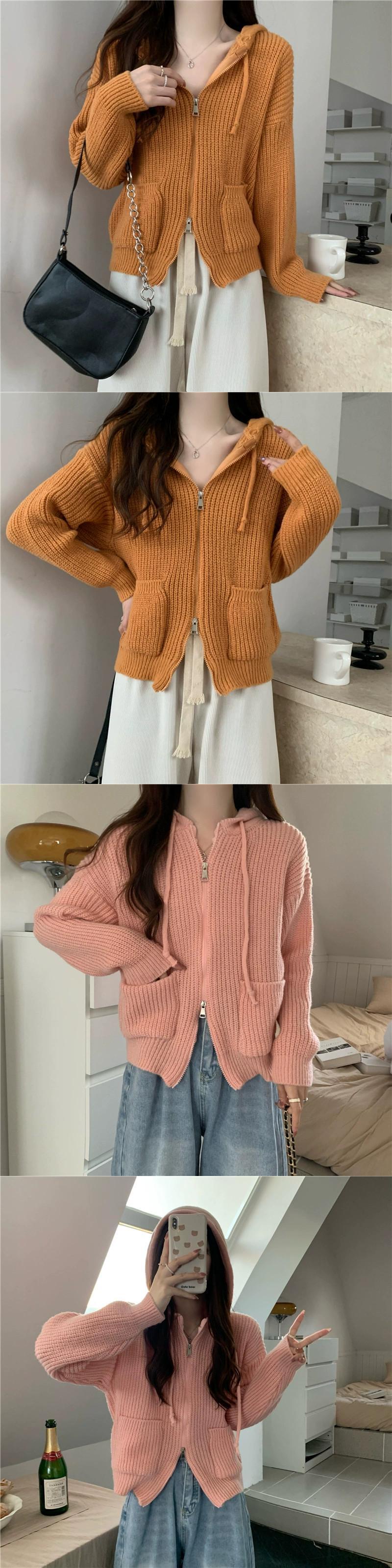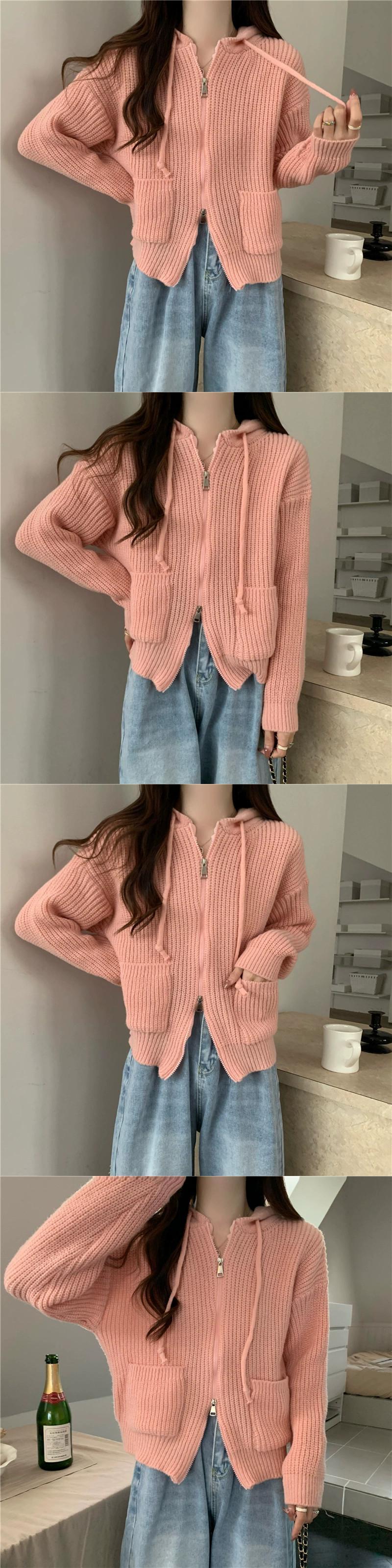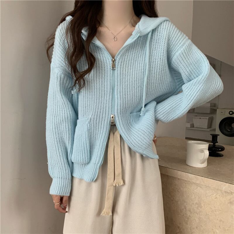 紫色のジッパーフード付きカーディガンセータージャケット女性秋と冬のレトロな優しいルーズアウターウェア怠惰なスタイルニットセーター オータム 秋物 ウィンター 冬物 パープル 7460068409403976 | framboise21