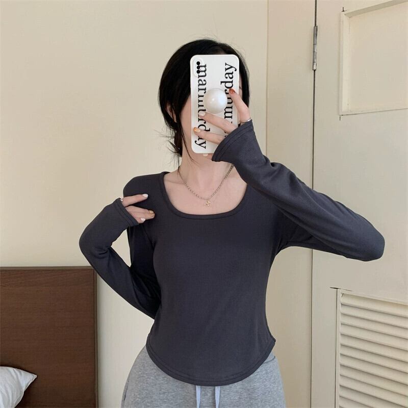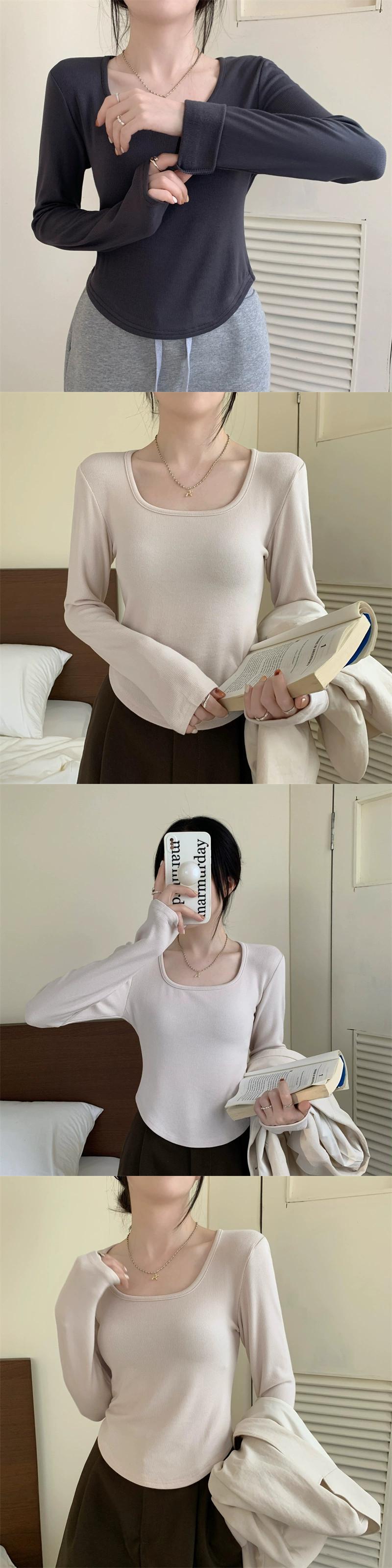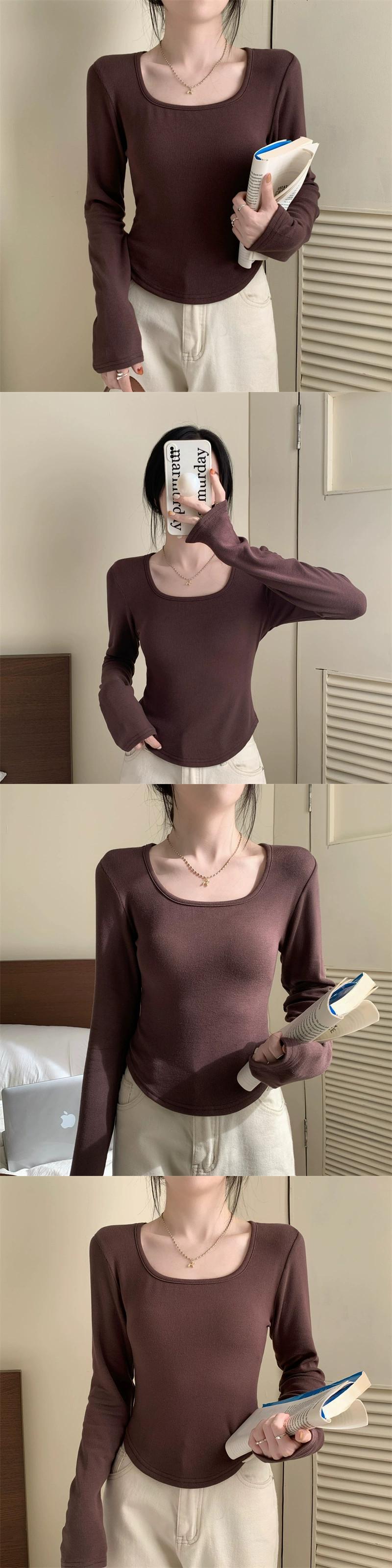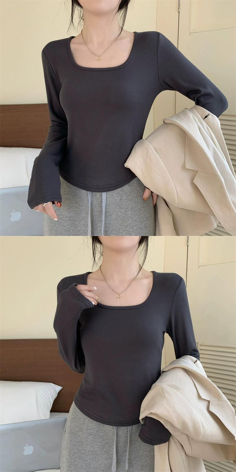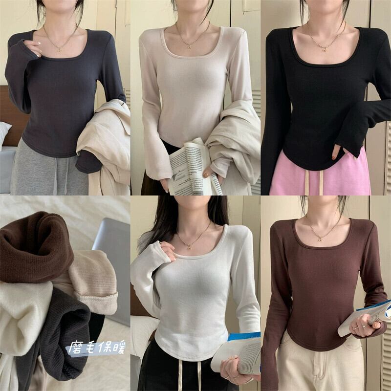 不規則な厚みのある起毛ボトムシャツ女性、秋と冬のファッショナブルなスリムフィットインナーショートカーブヘム長袖Tシャツ ロング オータム 秋物 ウィンター 冬物 7460051477341824 | framboise21