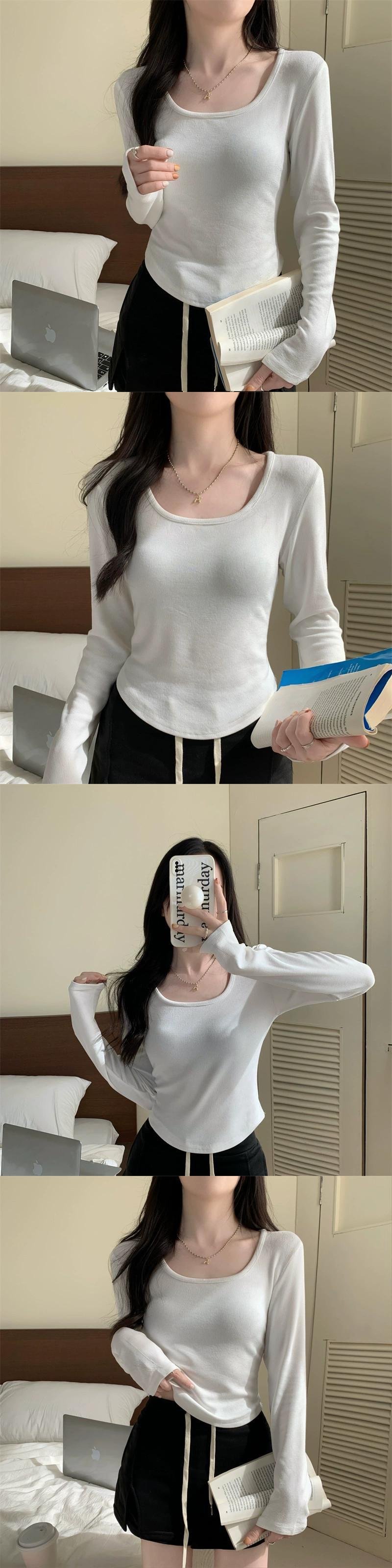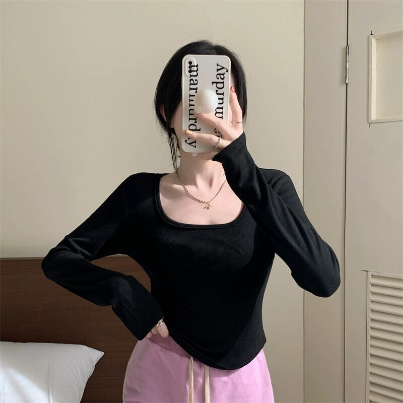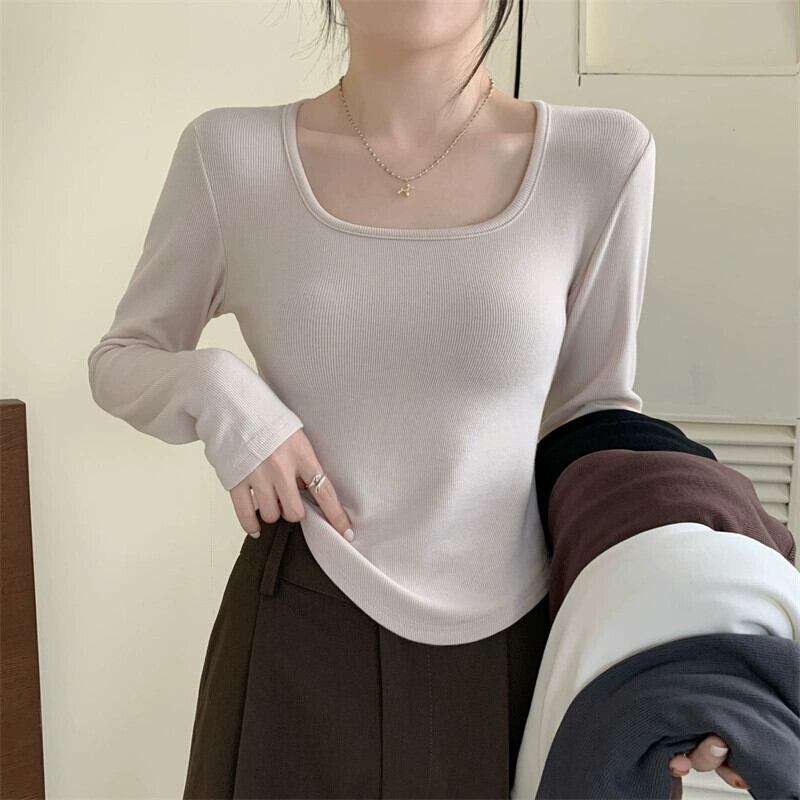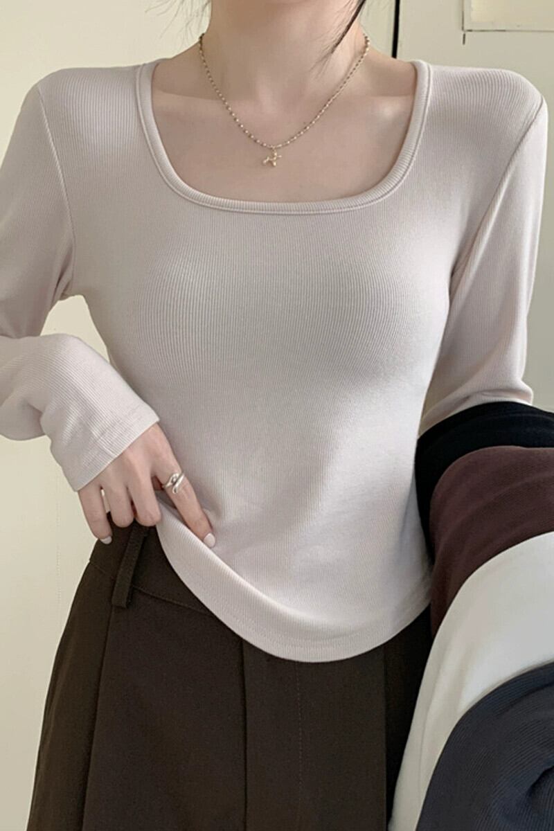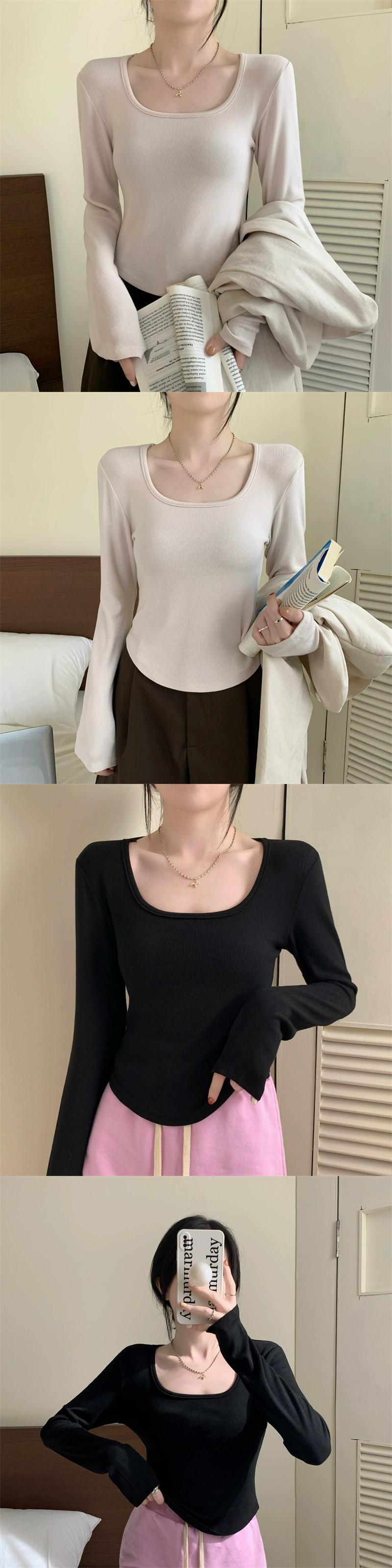 不規則な厚みのある起毛ボトムシャツ女性、秋と冬のファッショナブルなスリムフィットインナーショートカーブヘム長袖Tシャツ ロング オータム 秋物 ウィンター 冬物 7460051477341824 | framboise21