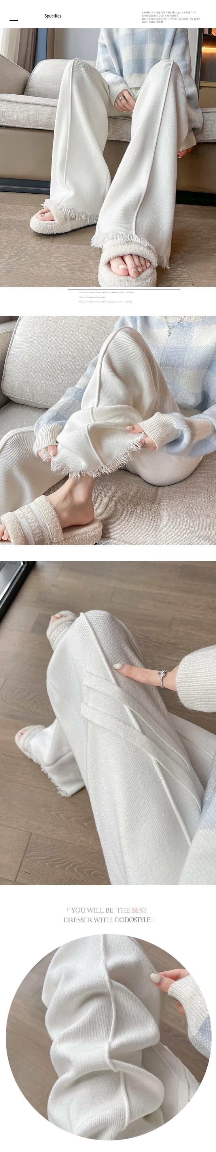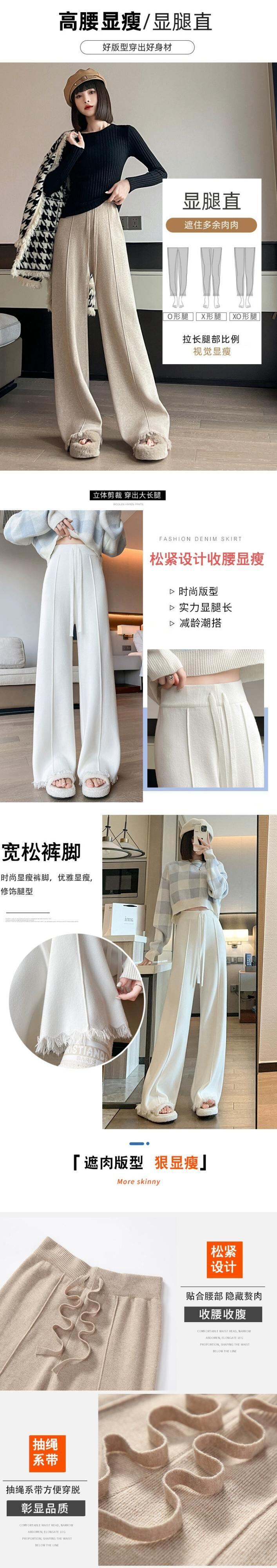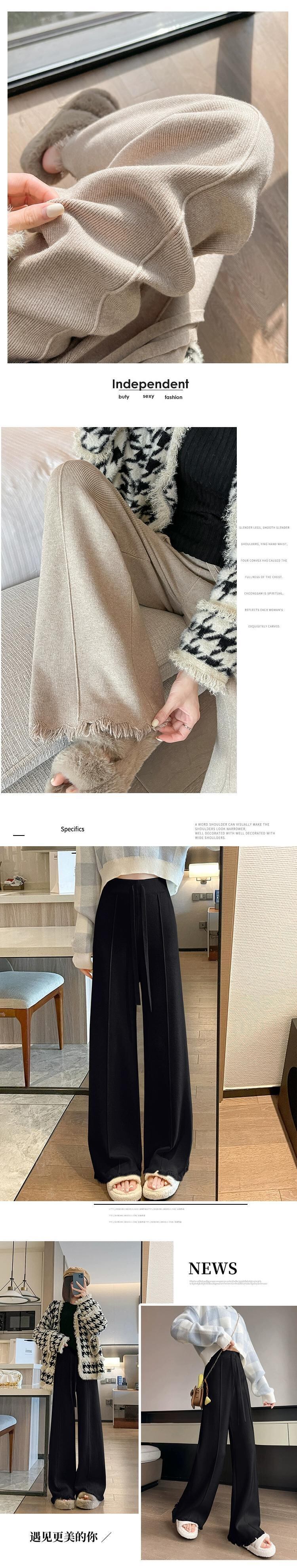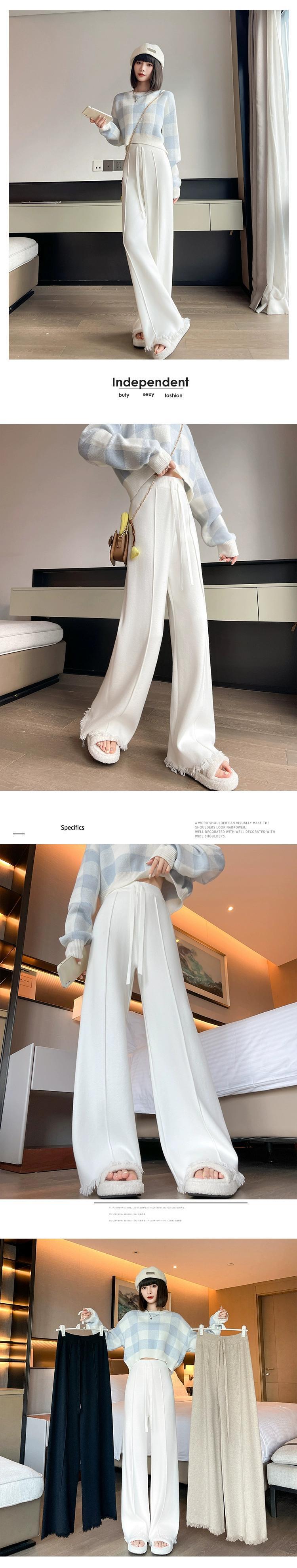 ローエッジニットタオルワイドレッグパンツ女性秋冬 2023 新しいハイウエストドレープストレート多用途白カジュアルパンツ ハイウェスト ホワイト オータム 秋物 ウィンター 冬物 ワイドパンツ 746008740254094 | framboise21