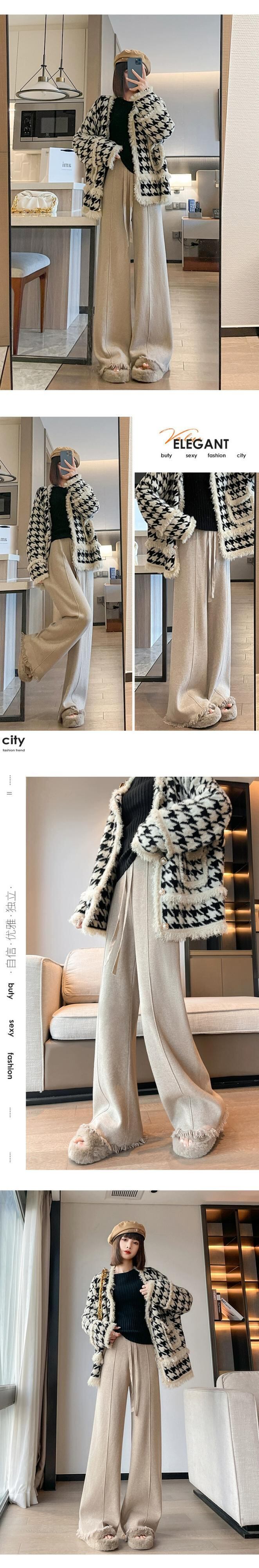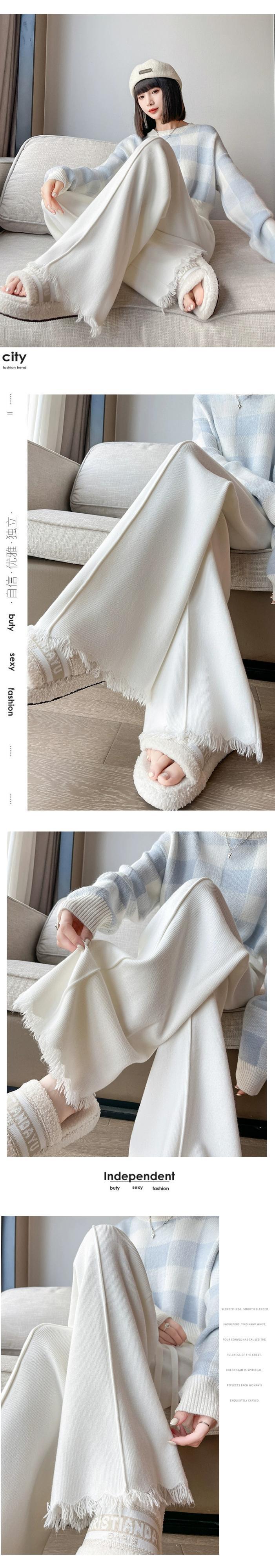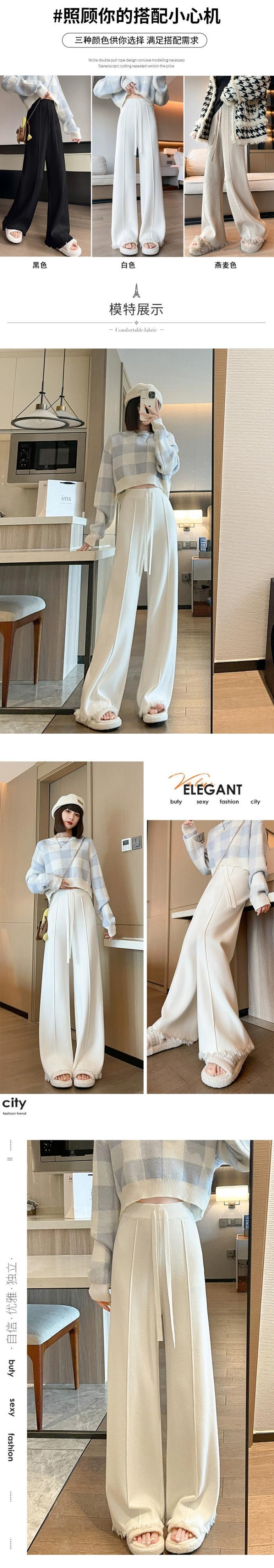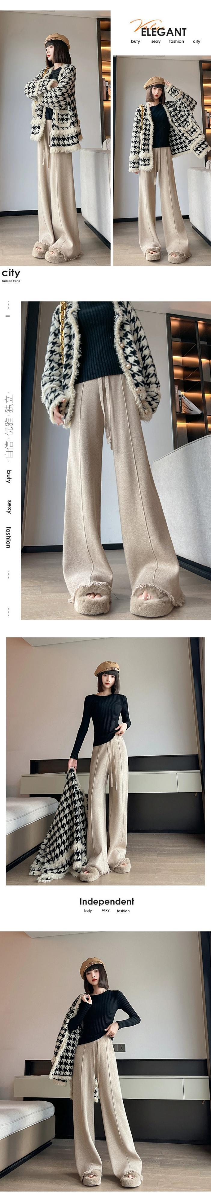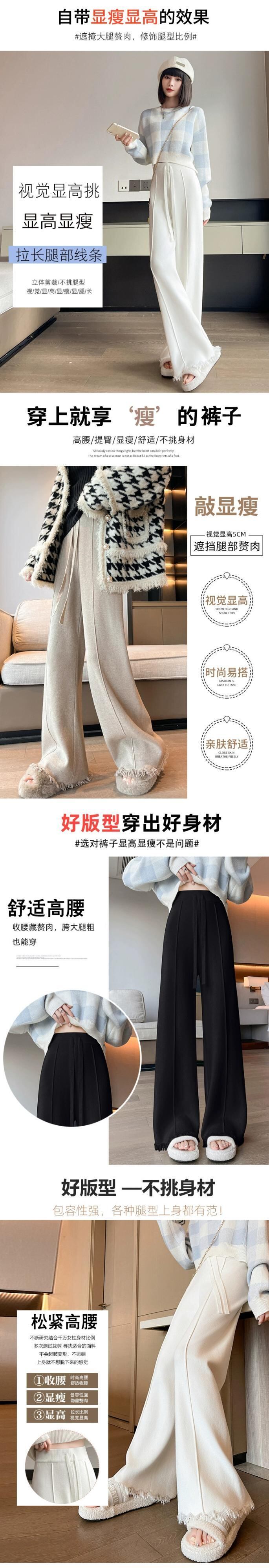 ローエッジニットタオルワイドレッグパンツ女性秋冬 2023 新しいハイウエストドレープストレート多用途白カジュアルパンツ ハイウェスト ホワイト オータム 秋物 ウィンター 冬物 ワイドパンツ 746008740254094 | framboise21