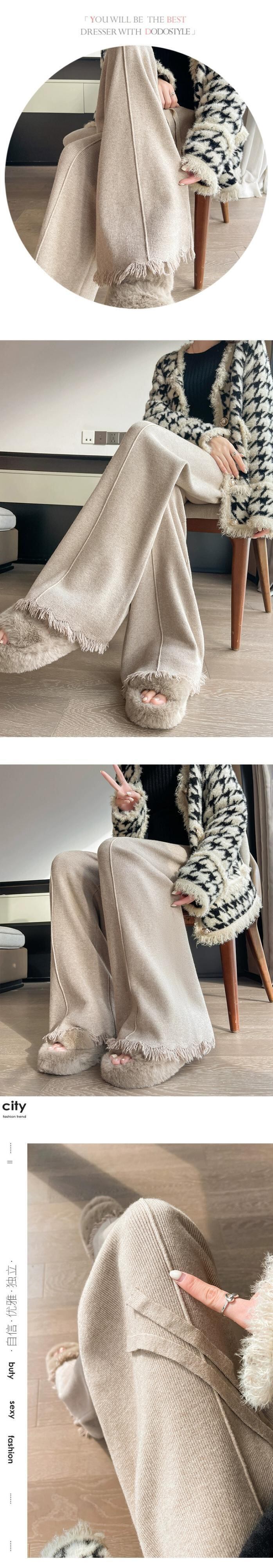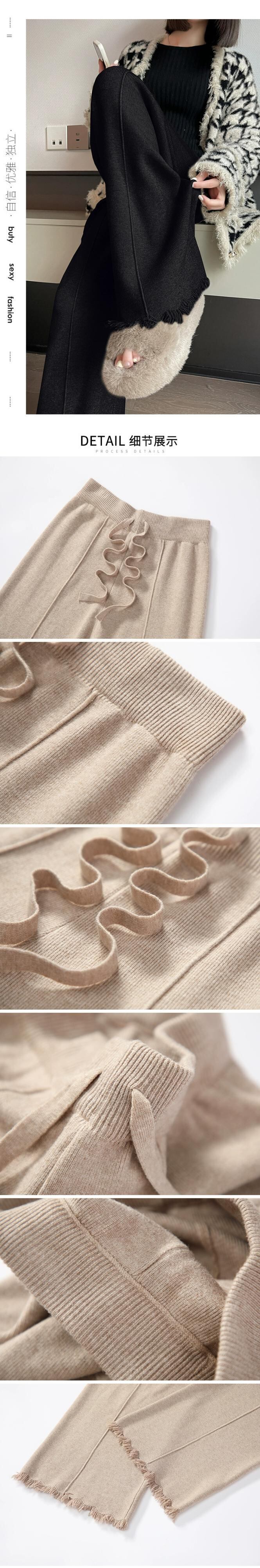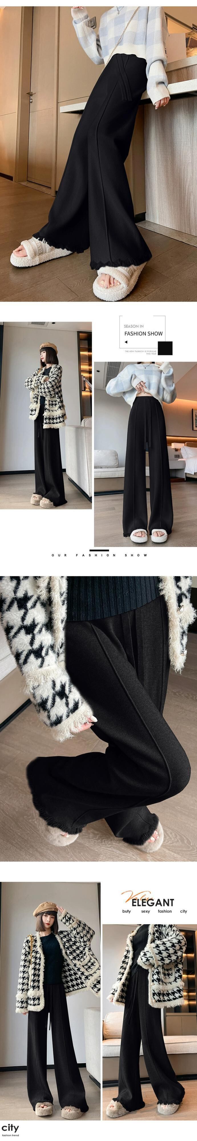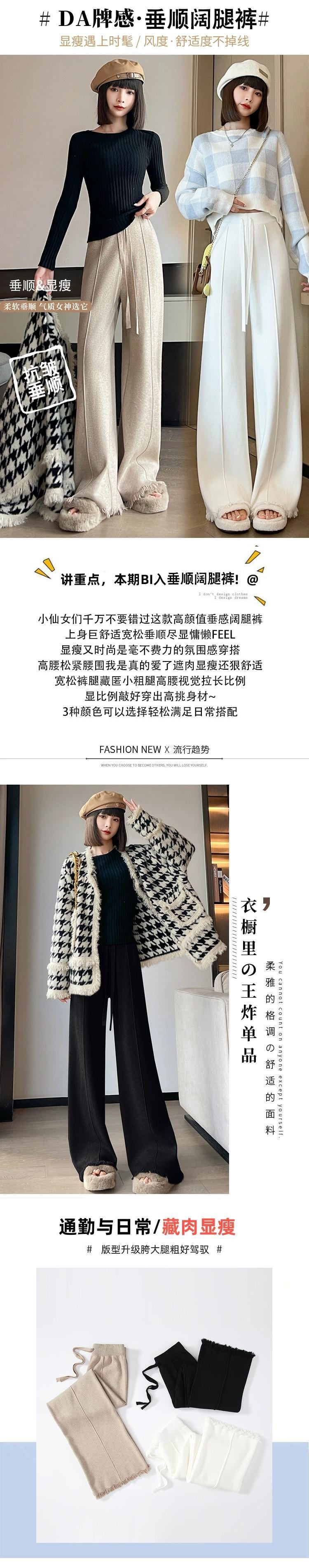 ローエッジニットタオルワイドレッグパンツ女性秋冬 2023 新しいハイウエストドレープストレート多用途白カジュアルパンツ ハイウェスト ホワイト オータム 秋物 ウィンター 冬物 ワイドパンツ 746008740254094 | framboise21