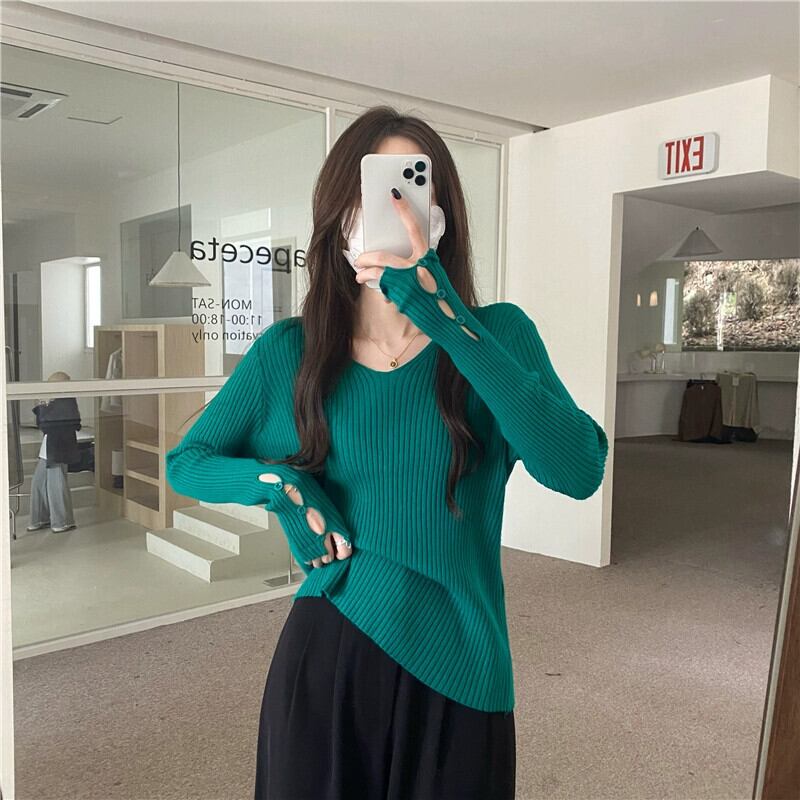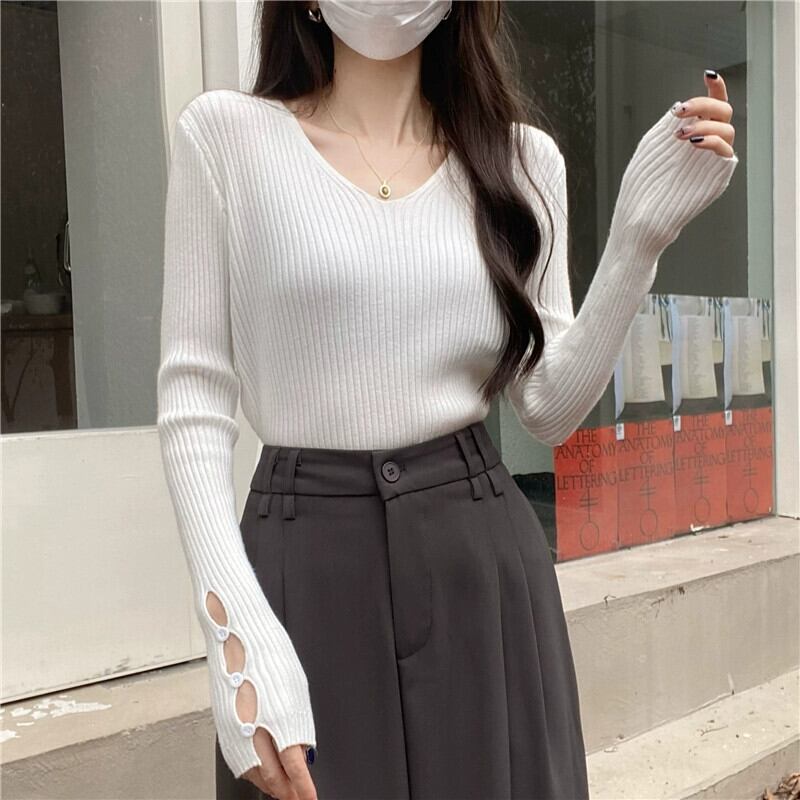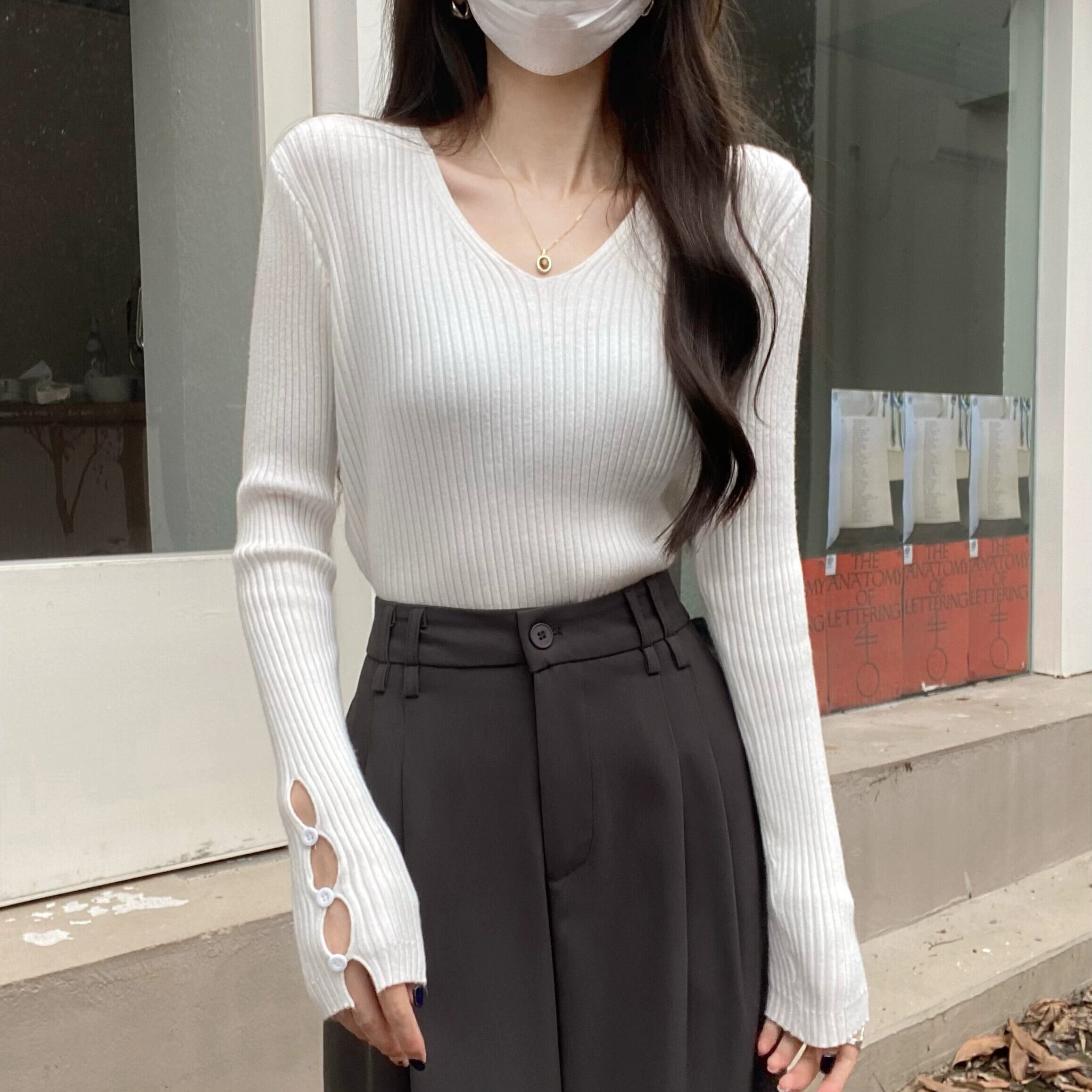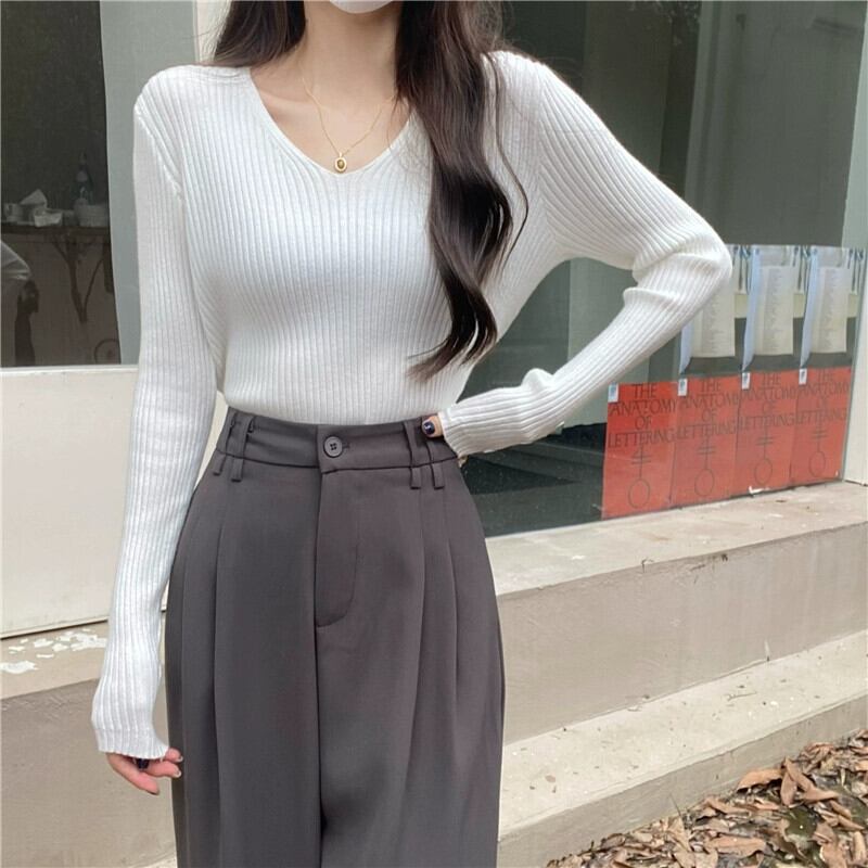 白いローネックボトリングシャツ 2023 レディース秋冬ファッショナブルなファッショナブルなスリムフィットインナー長袖 V ネックニットセーター ロング ホワイト オータム 秋物 ウィンター 冬物 Vネック 7460046267896448 | framboise21