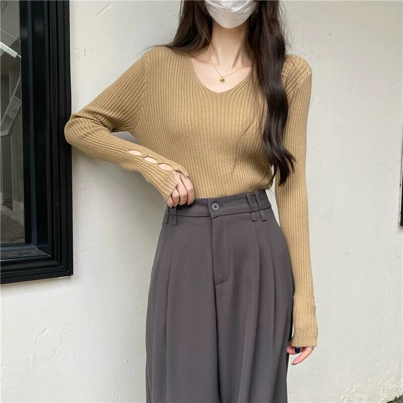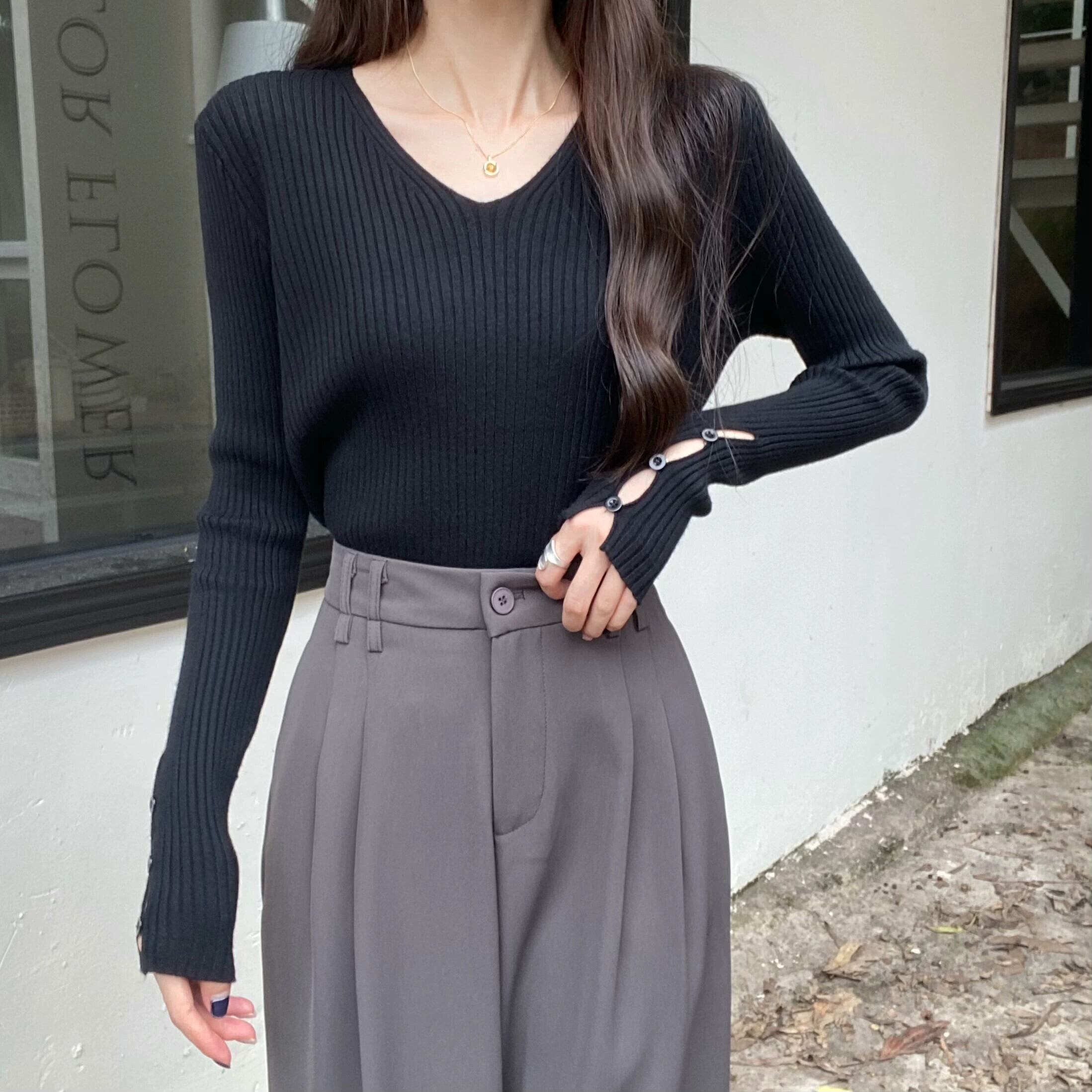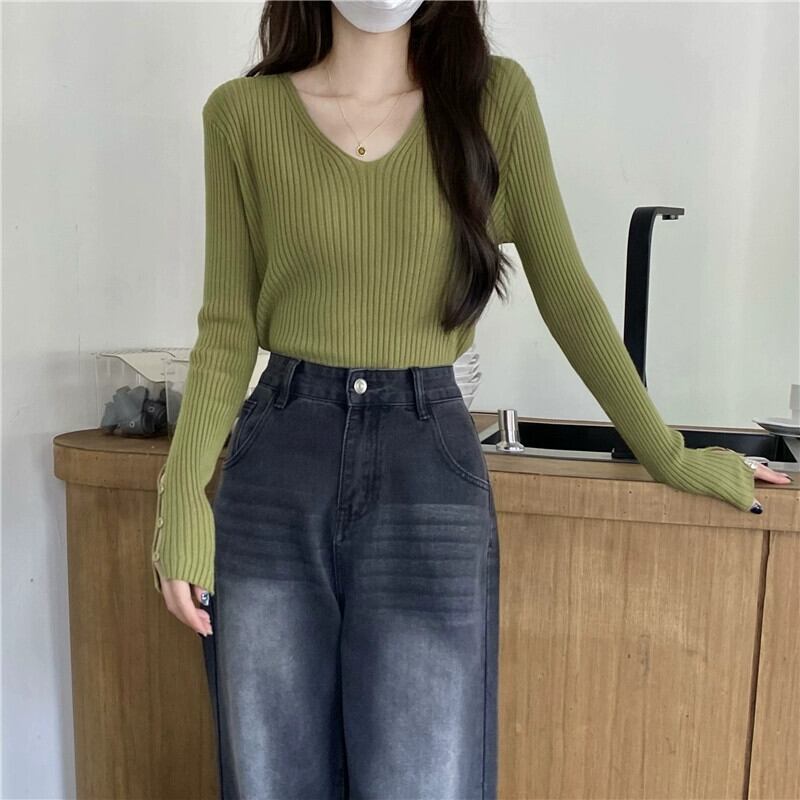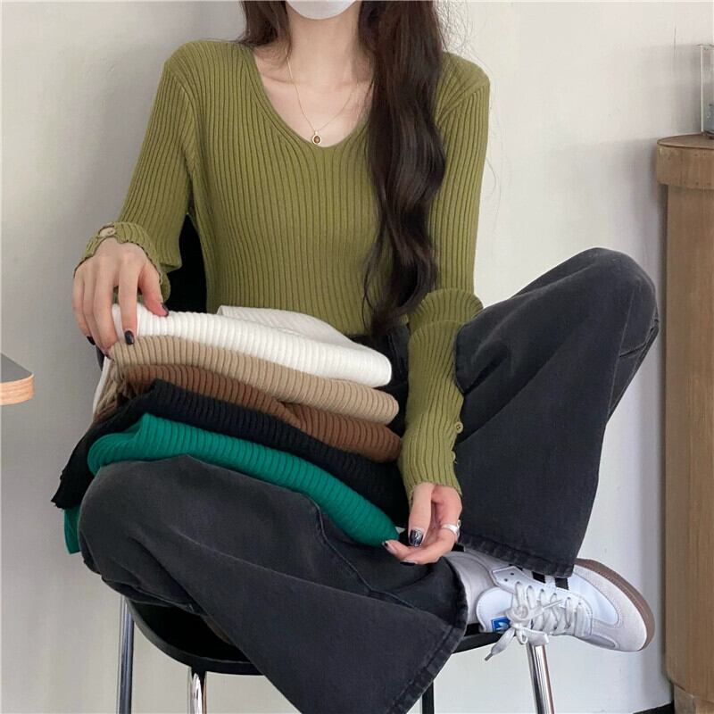 白いローネックボトリングシャツ 2023 レディース秋冬ファッショナブルなファッショナブルなスリムフィットインナー長袖 V ネックニットセーター ロング ホワイト オータム 秋物 ウィンター 冬物 Vネック 7460046267896448 | framboise21