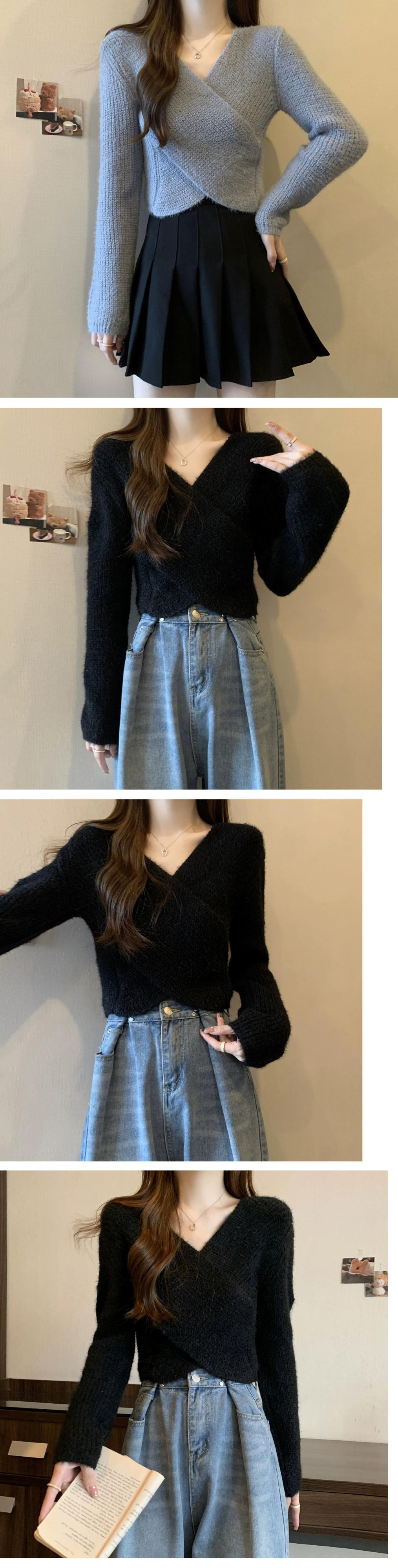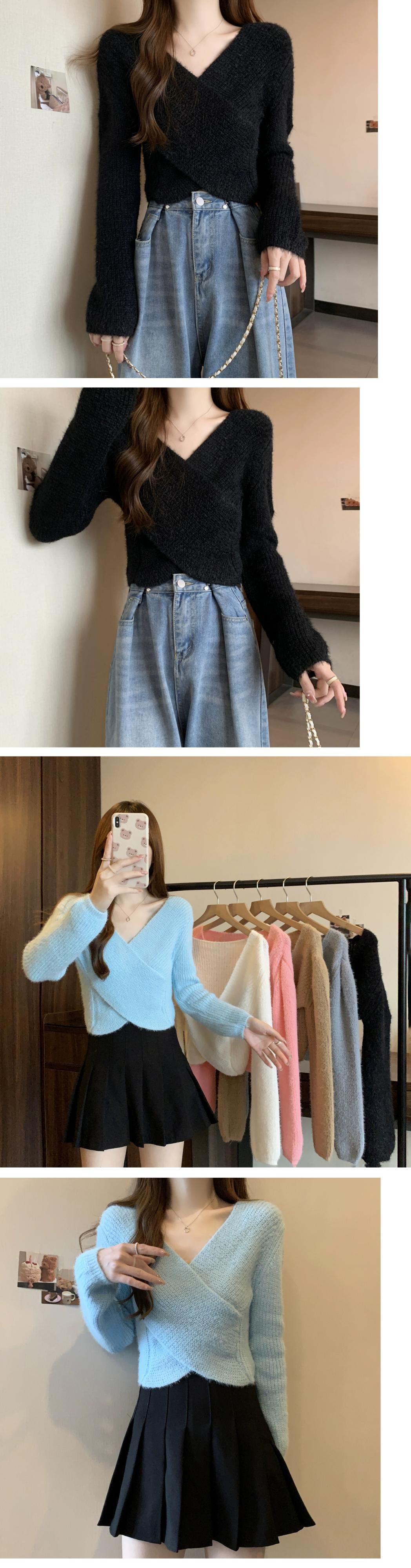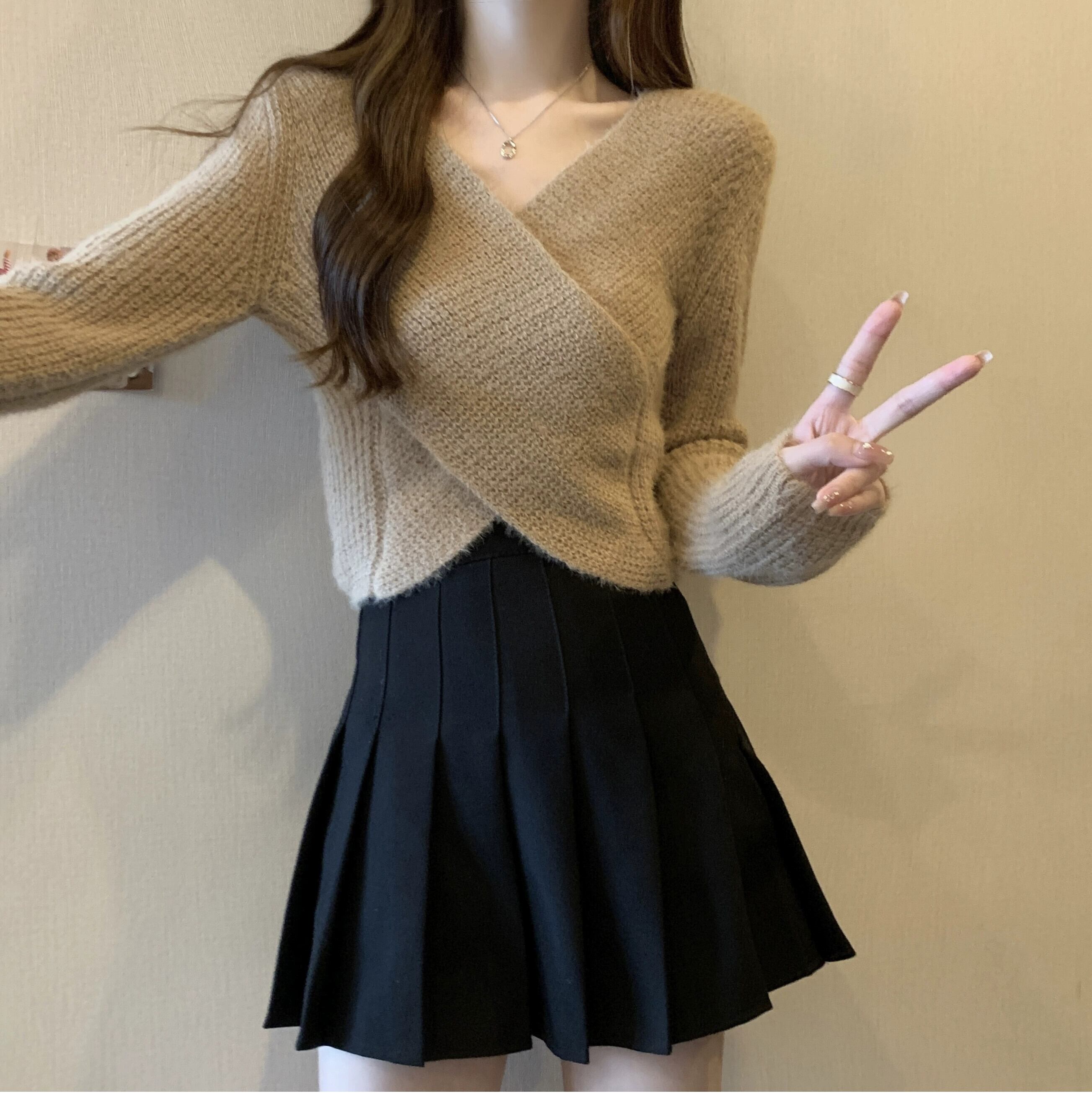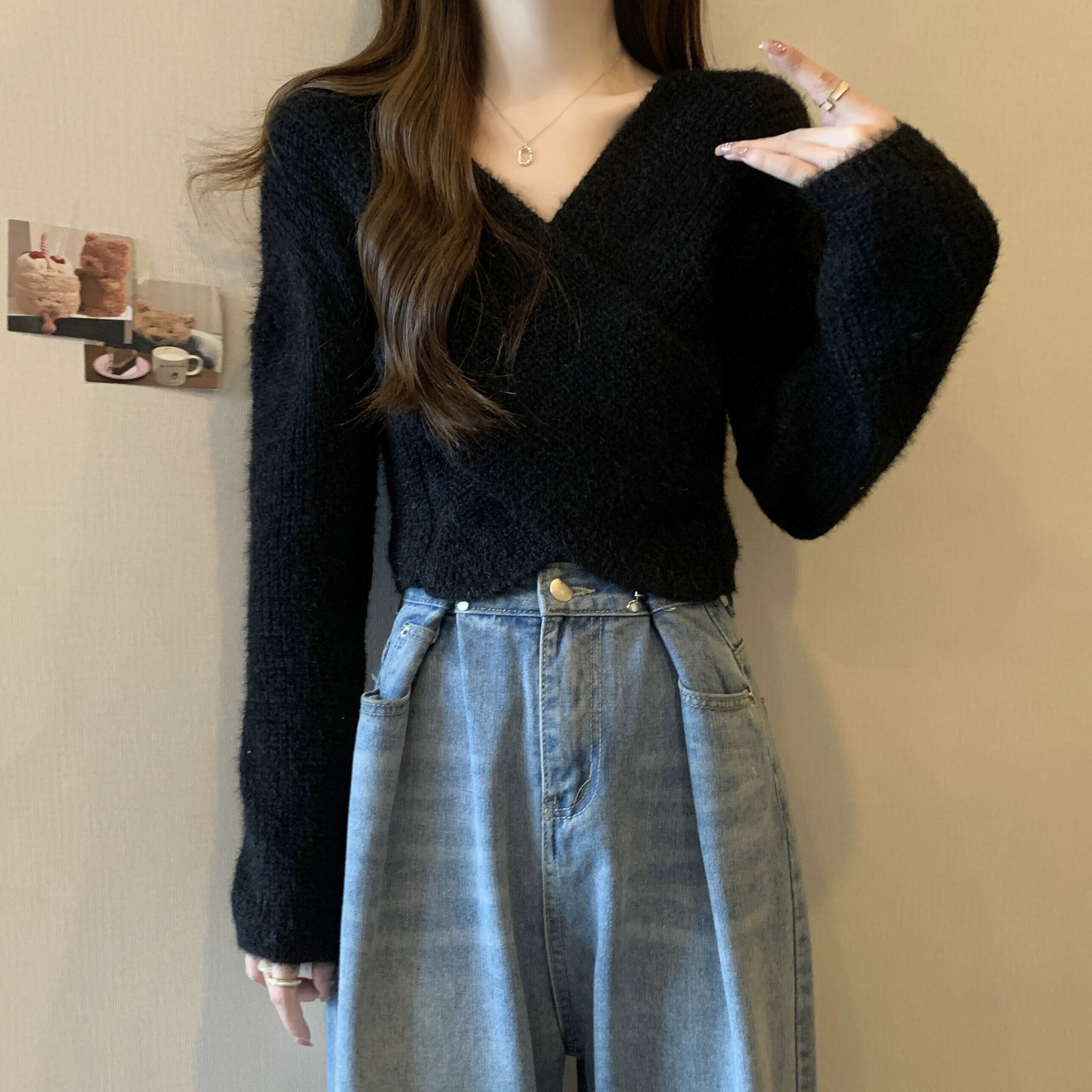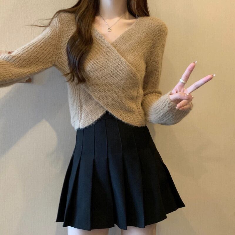 不規則なショートセーターの女性の秋冬 2023 新しいアウターウェアデザイン痩身クロス V ネックセーター オータム 秋物 ウィンター 冬物 Vネック 7460048490578632 | framboise21