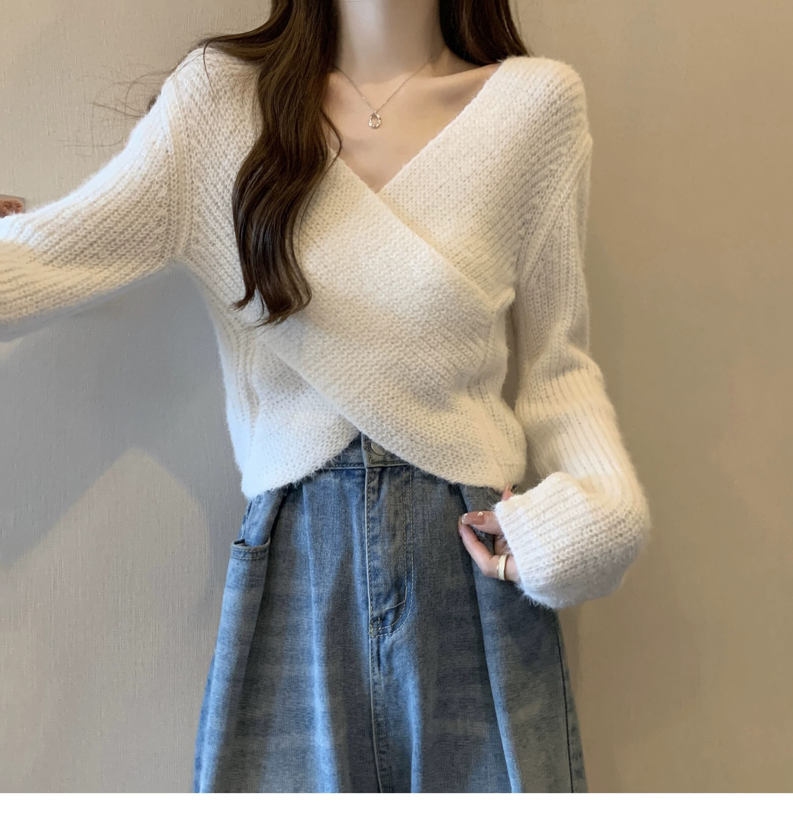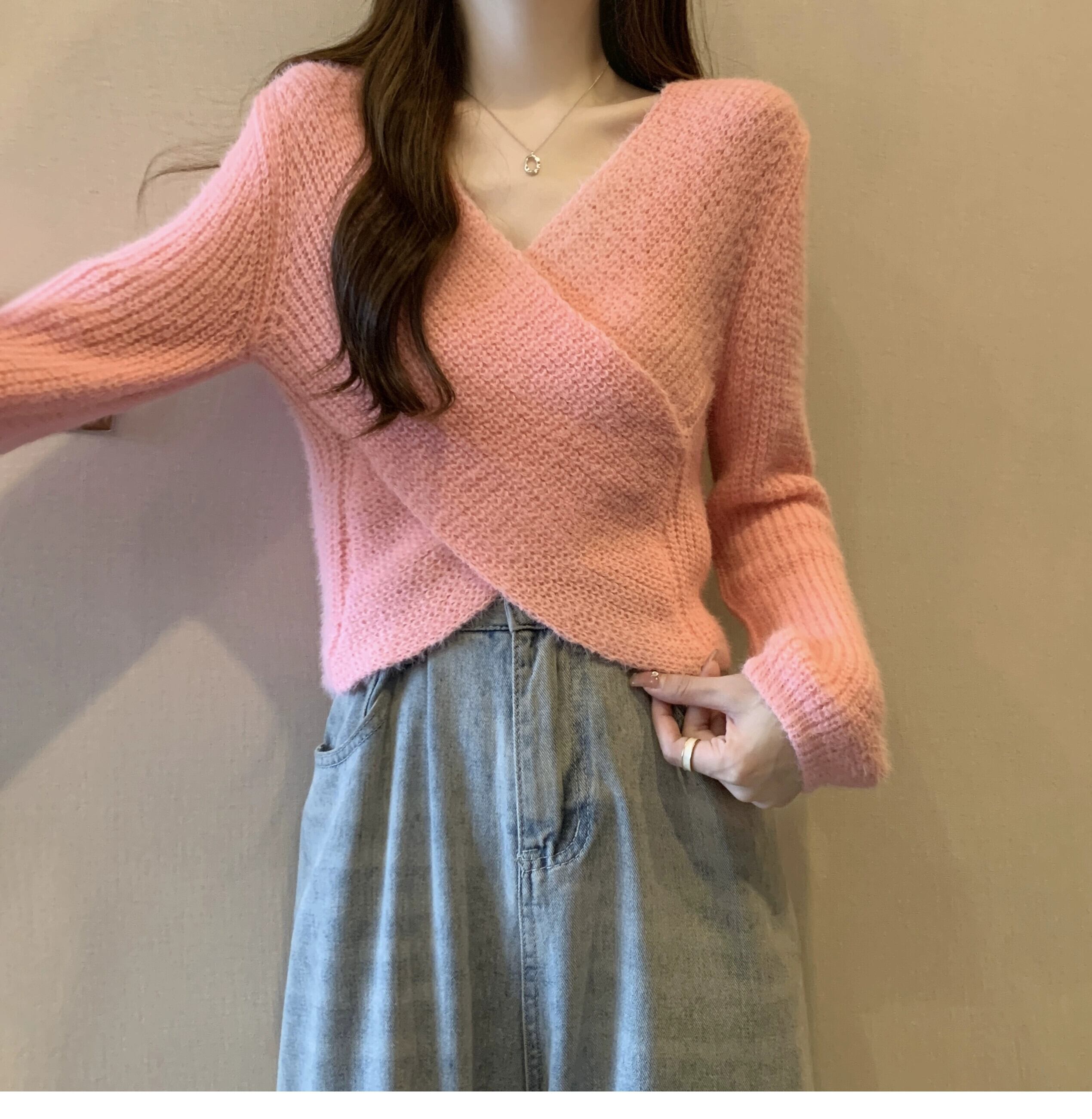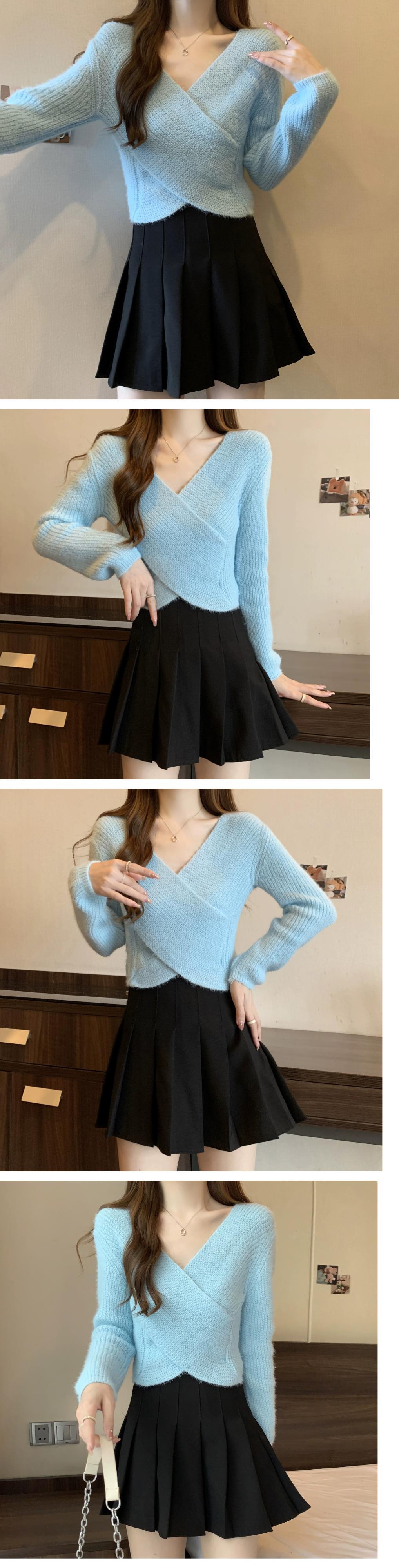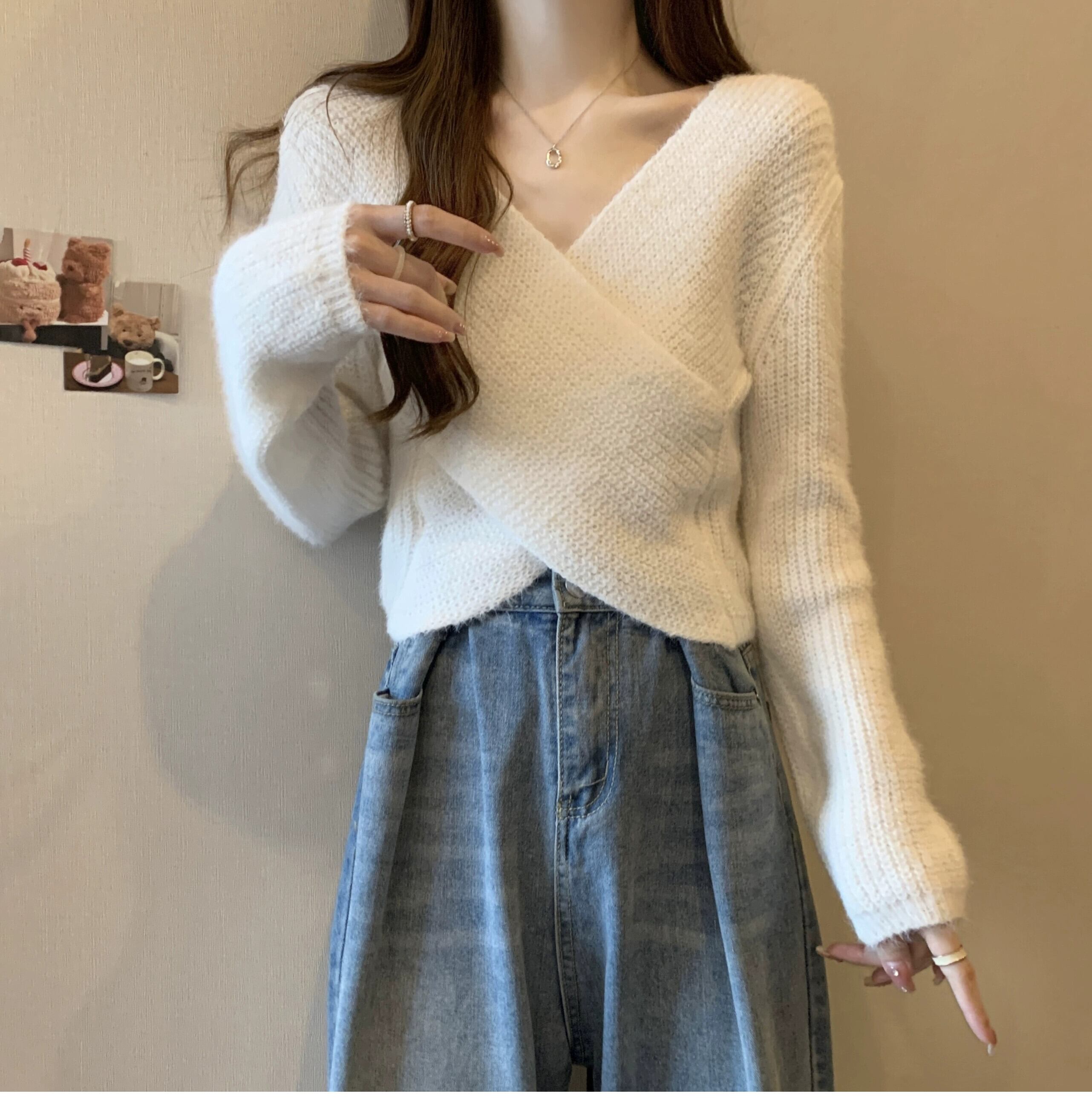 不規則なショートセーターの女性の秋冬 2023 新しいアウターウェアデザイン痩身クロス V ネックセーター オータム 秋物 ウィンター 冬物 Vネック 7460048490578632 | framboise21