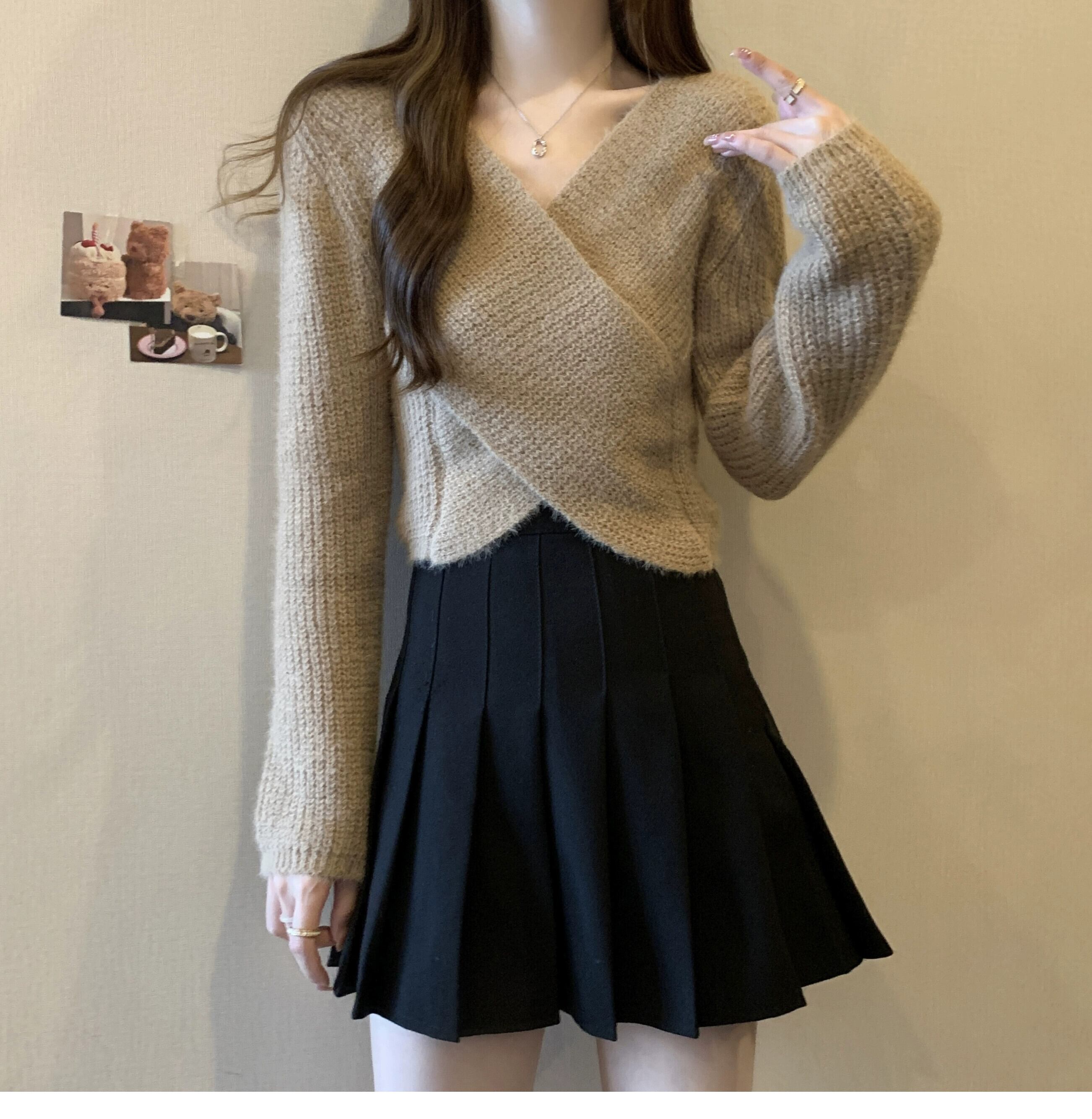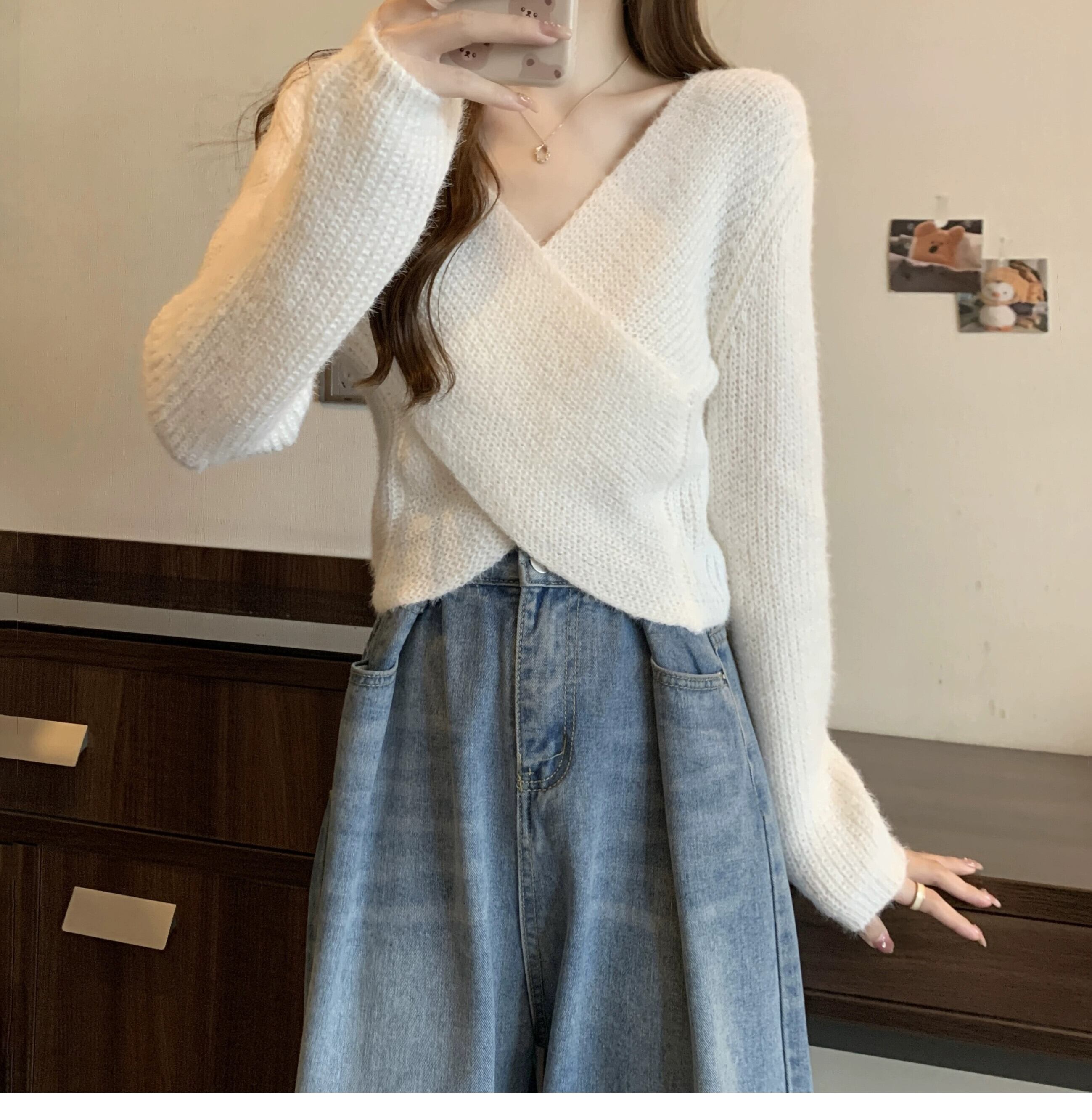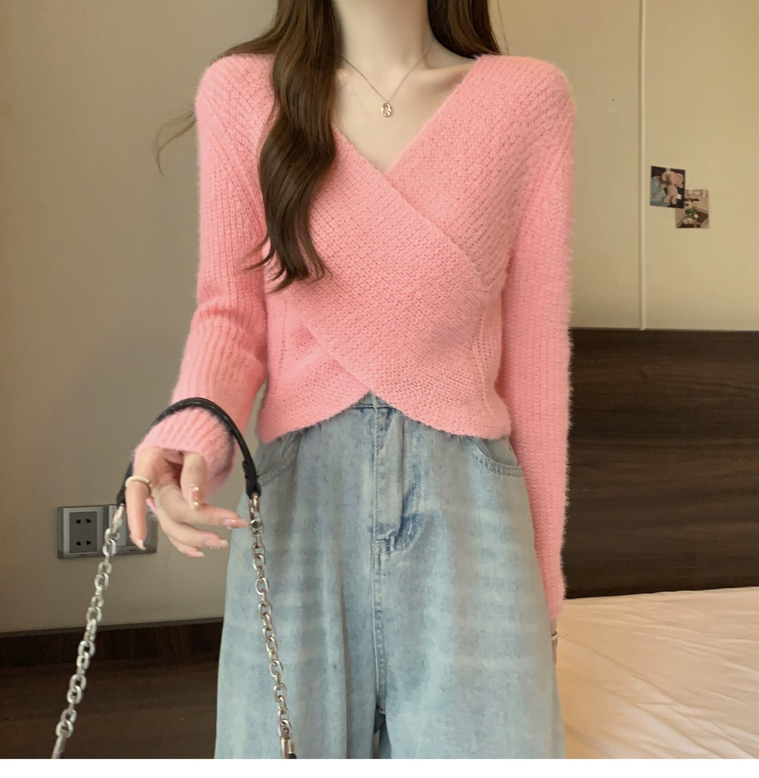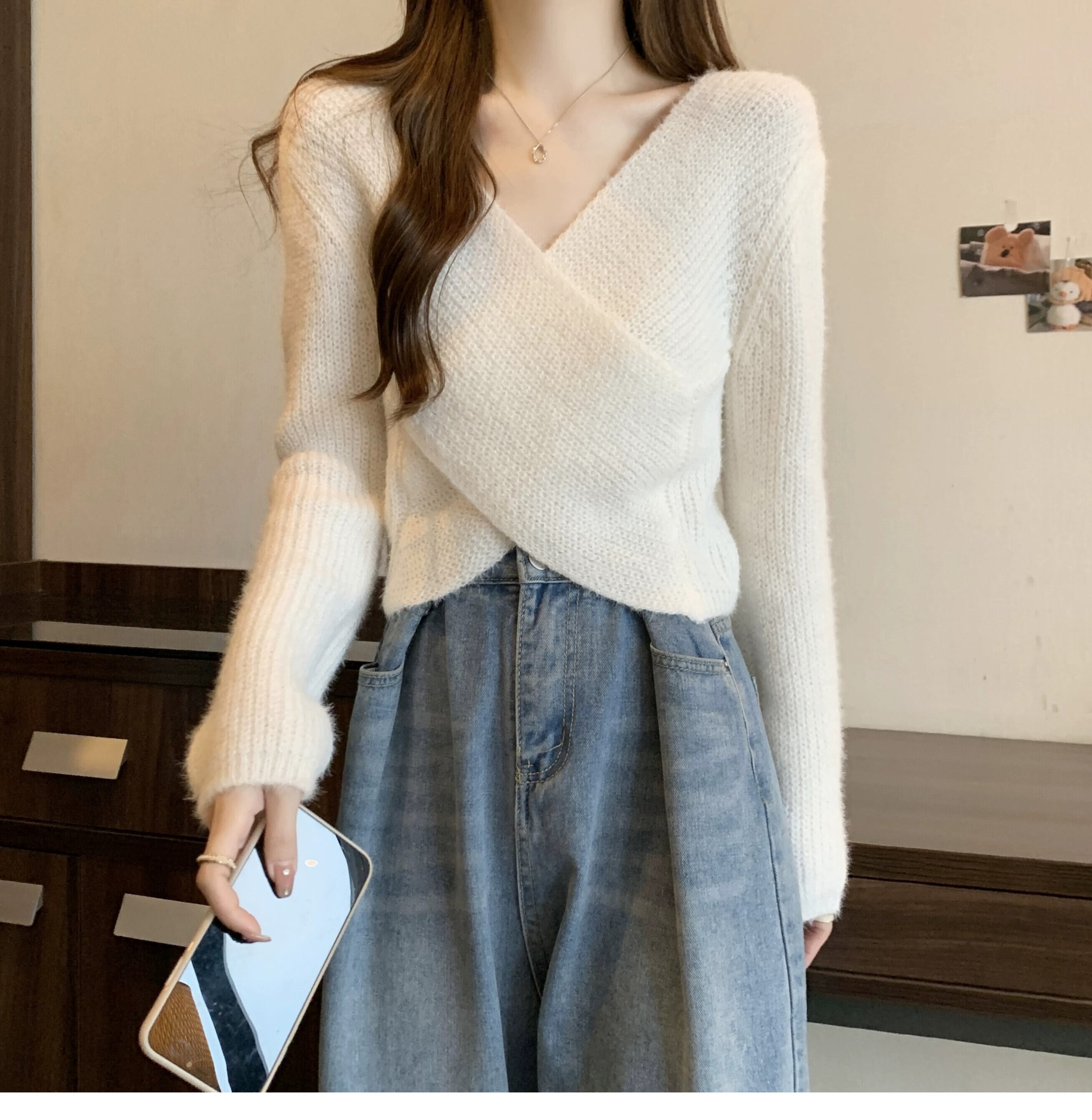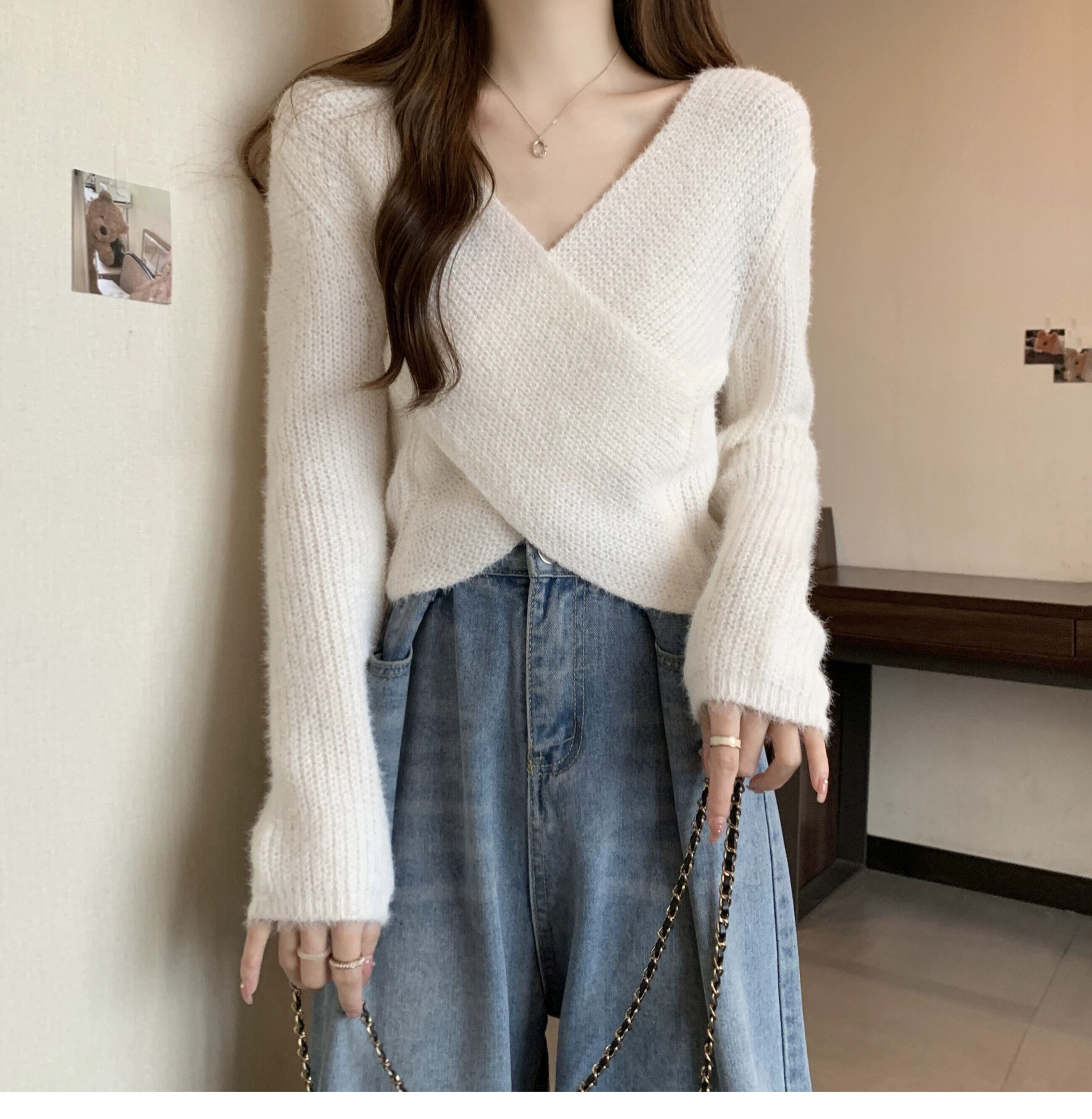 不規則なショートセーターの女性の秋冬 2023 新しいアウターウェアデザイン痩身クロス V ネックセーター オータム 秋物 ウィンター 冬物 Vネック 7460048490578632 | framboise21