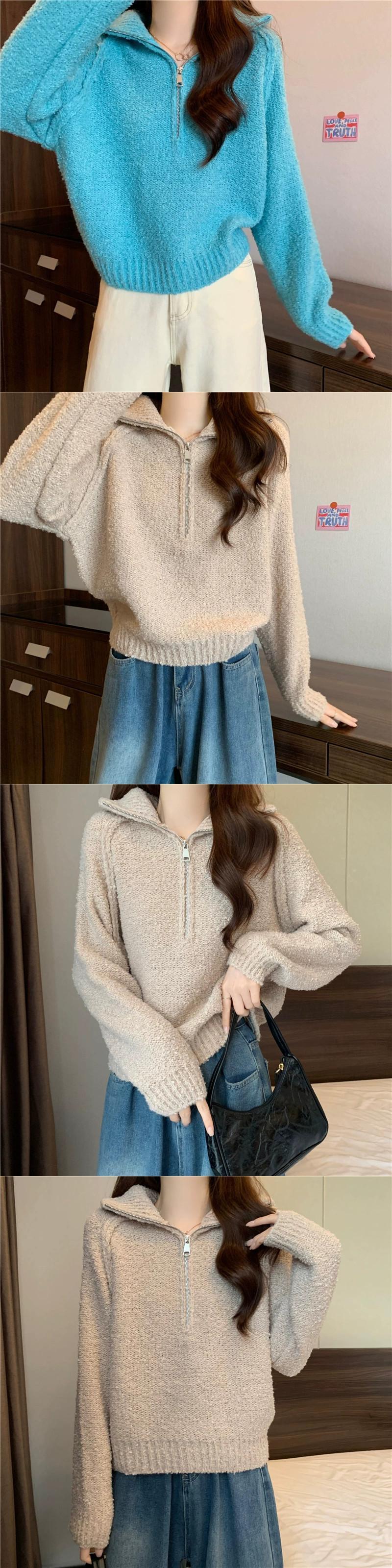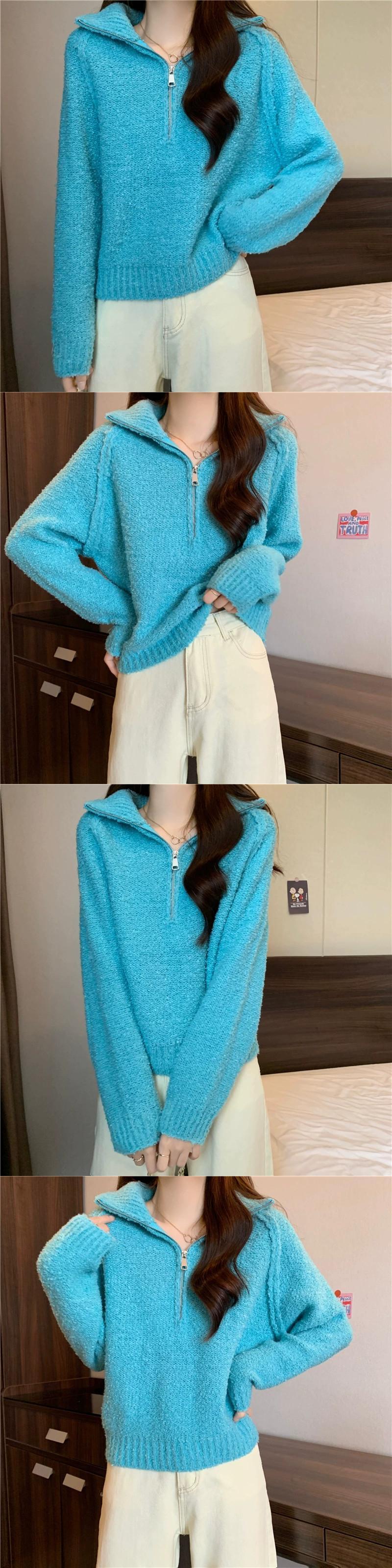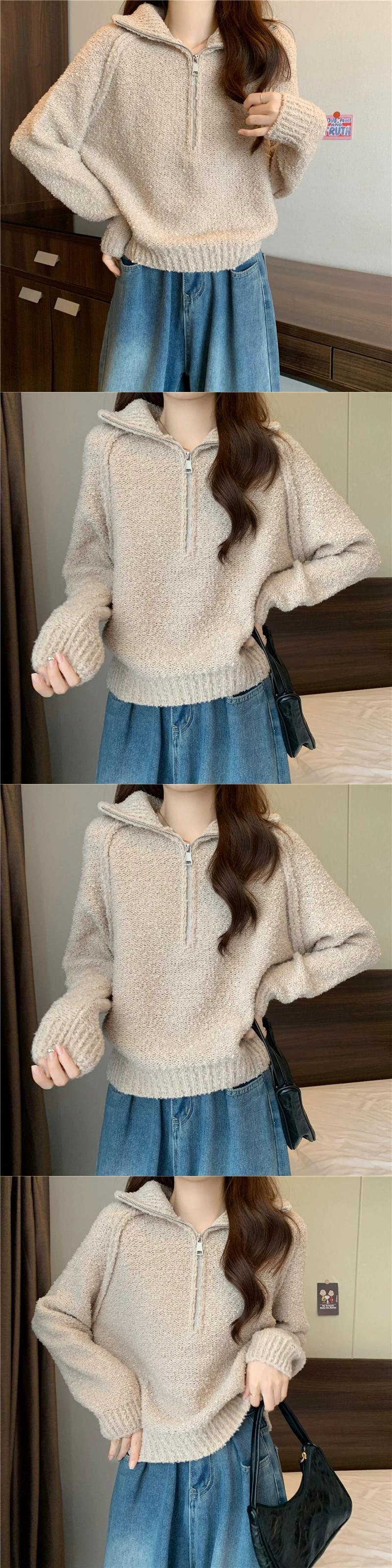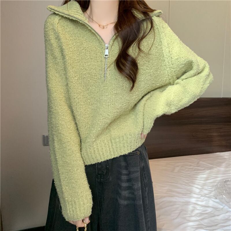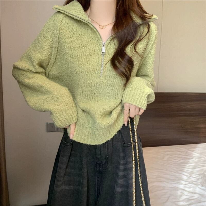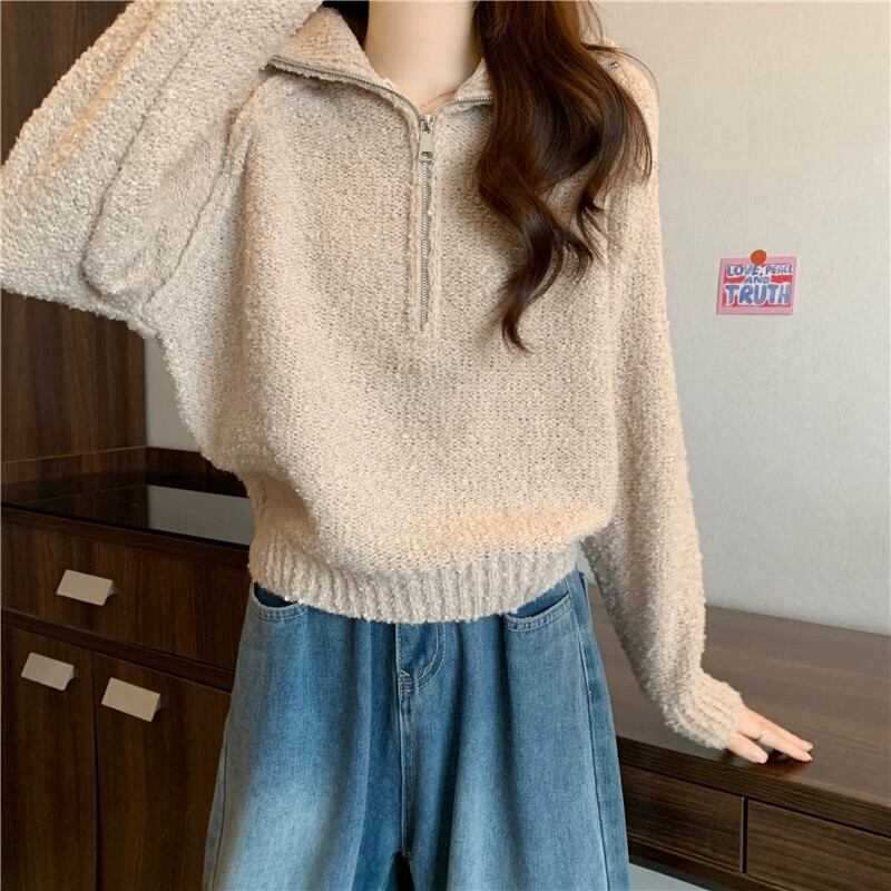ピンクのハーフジップラペルセーターの女性の秋と冬の優しいスタイルルーズアウターウェア怠惰なソフトワックスプルオーバー長袖セーター ロング オータム 秋物 ウィンター 冬物 7460052537744986 | framboise21