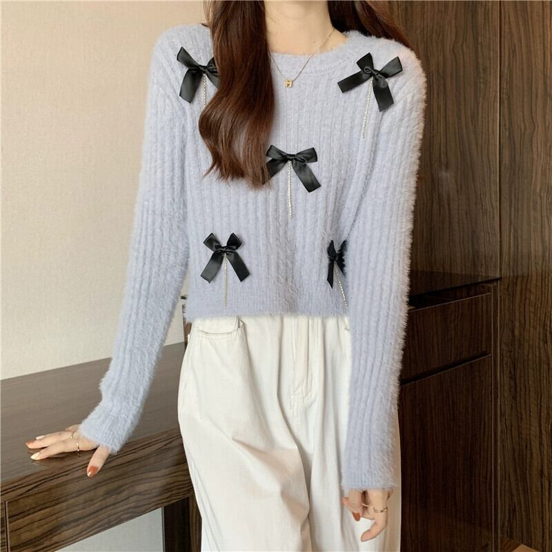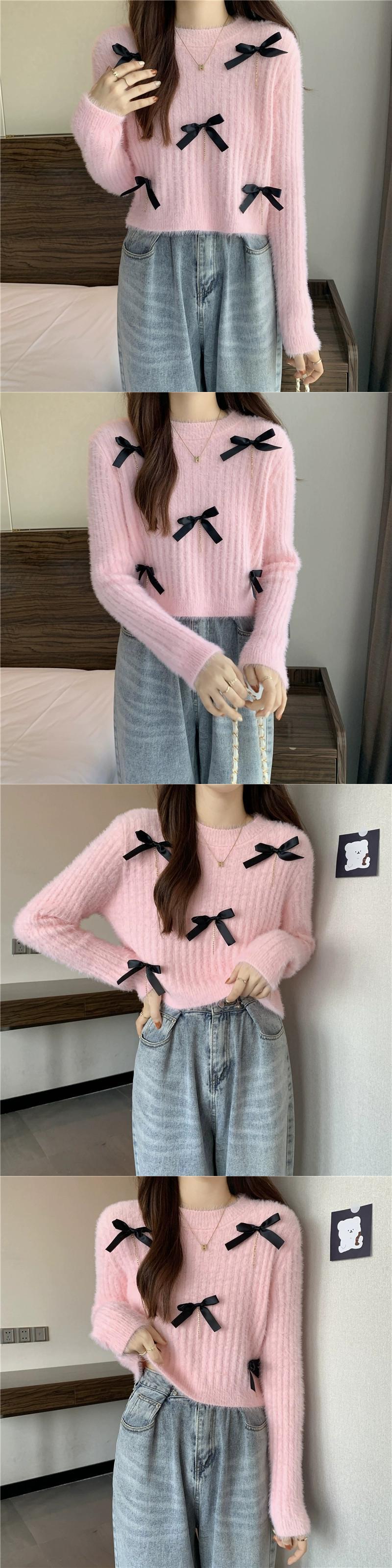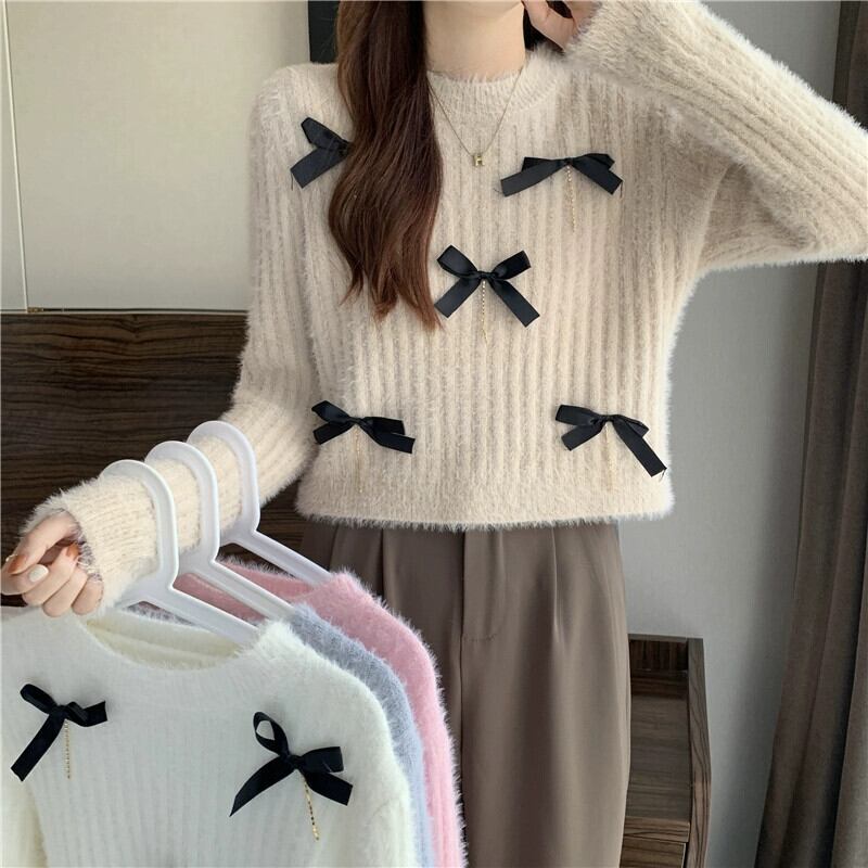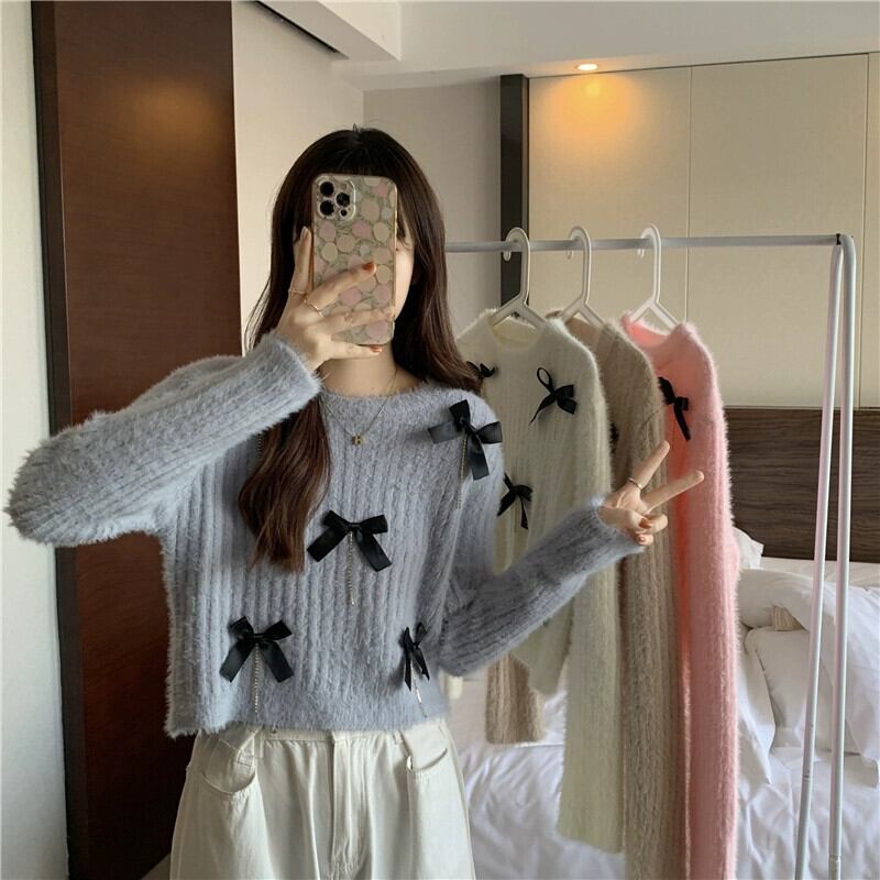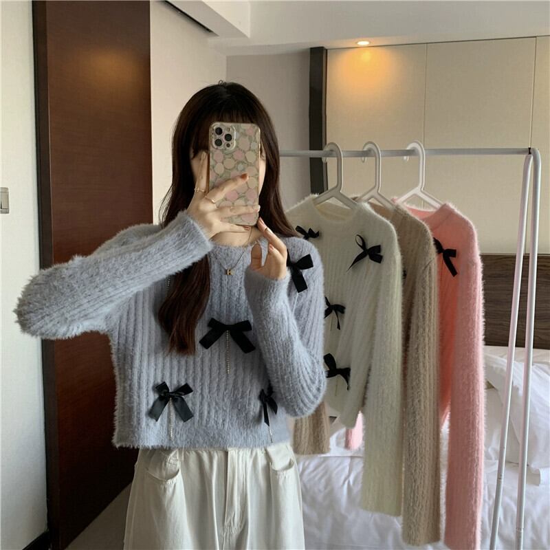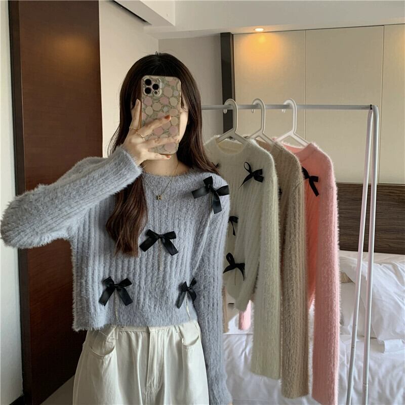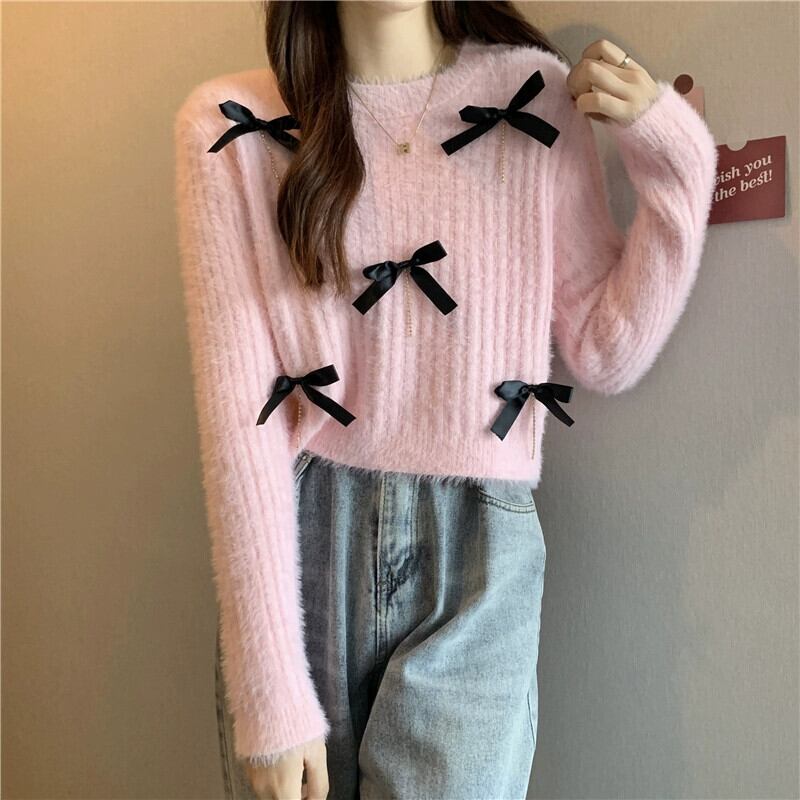 秋と冬のピンクの短いモヘアセーターの女性、優しくて甘い、ゆったりしたアウターウェア、厚い長袖セーター小人 ショート ロング 大人ガーリー スウィート キュート カジュアル オータム 秋物 ウィンター 冬物 7460095803716102 | framboise21