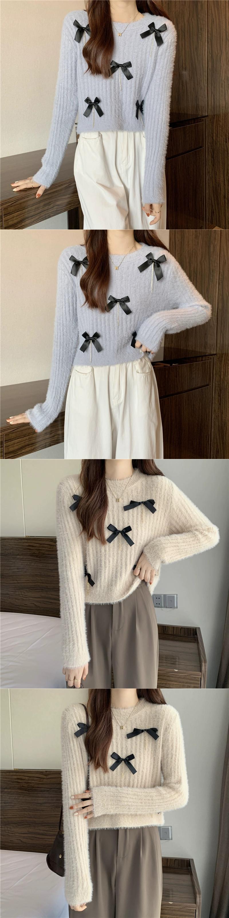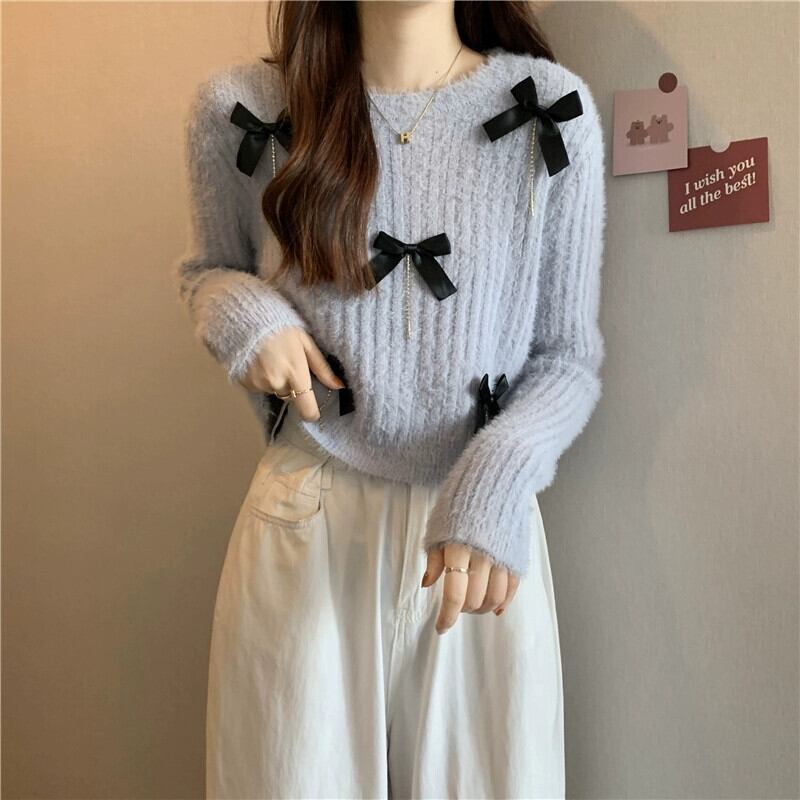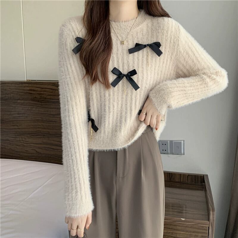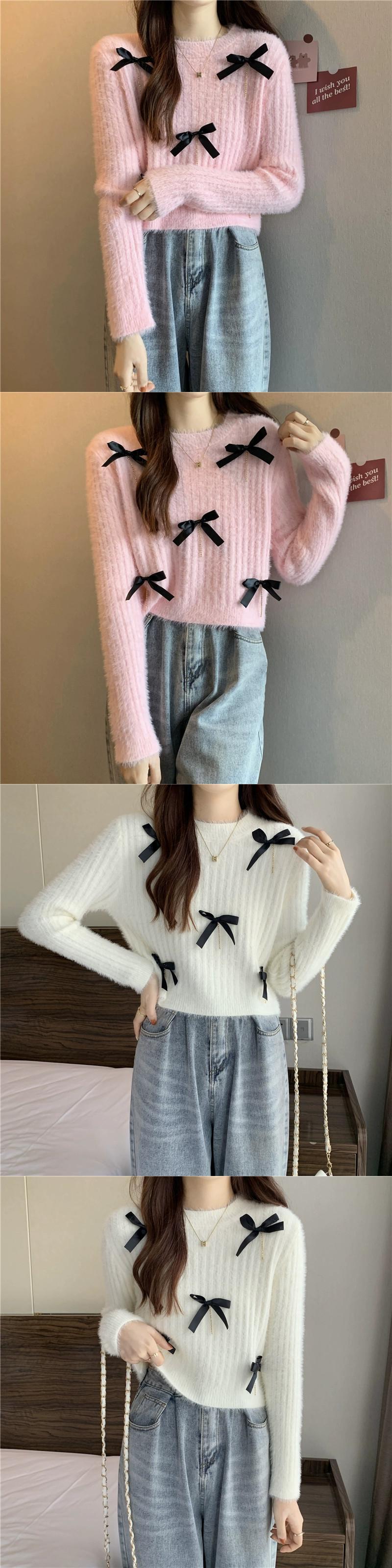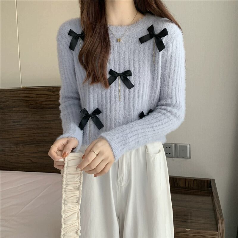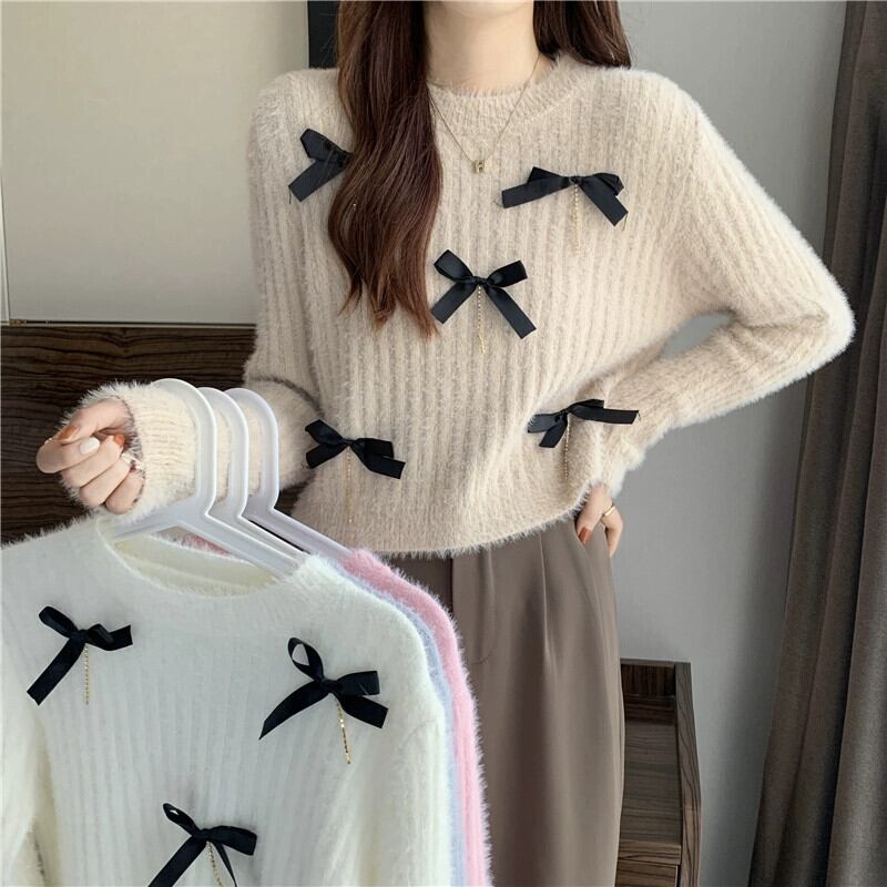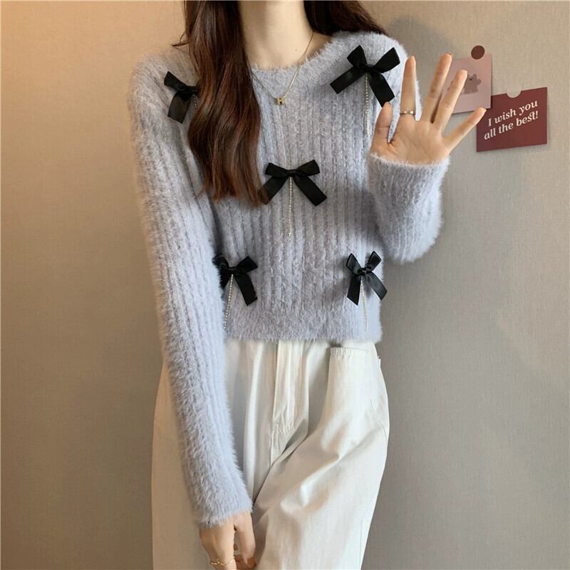 秋と冬のピンクの短いモヘアセーターの女性、優しくて甘い、ゆったりしたアウターウェア、厚い長袖セーター小人 ショート ロング 大人ガーリー スウィート キュート カジュアル オータム 秋物 ウィンター 冬物 7460095803716102 | framboise21