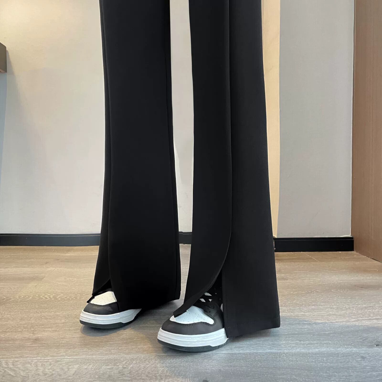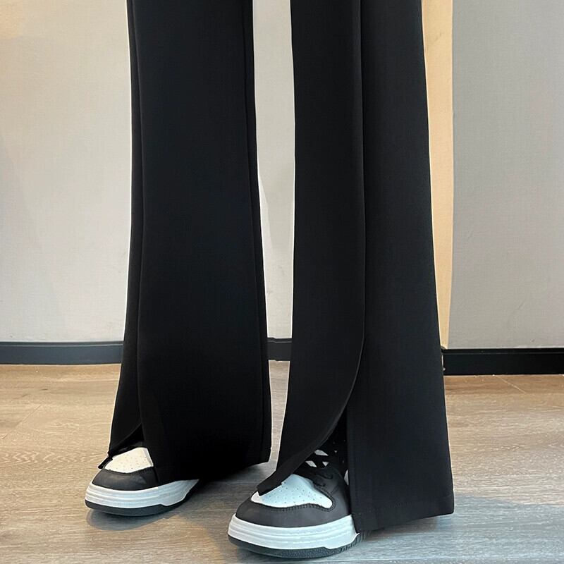 スリットわずかフレアスーツパンツ女性 2023 秋の新しいナローワイドレッグパンツハイウエストストレートカジュアルベルボトムパンツ レッド オータム 秋物 7460064664708672 | framboise21
