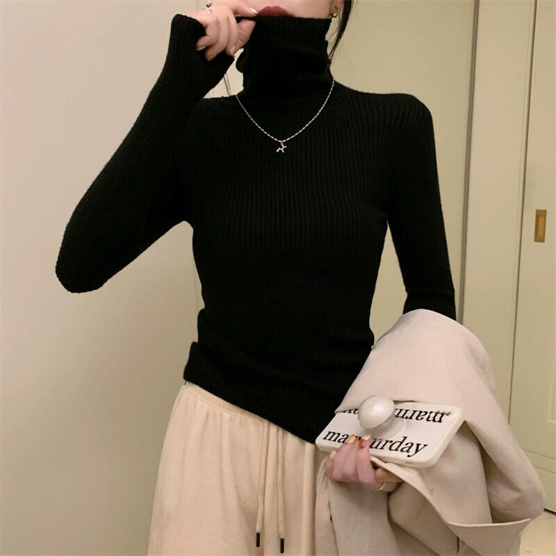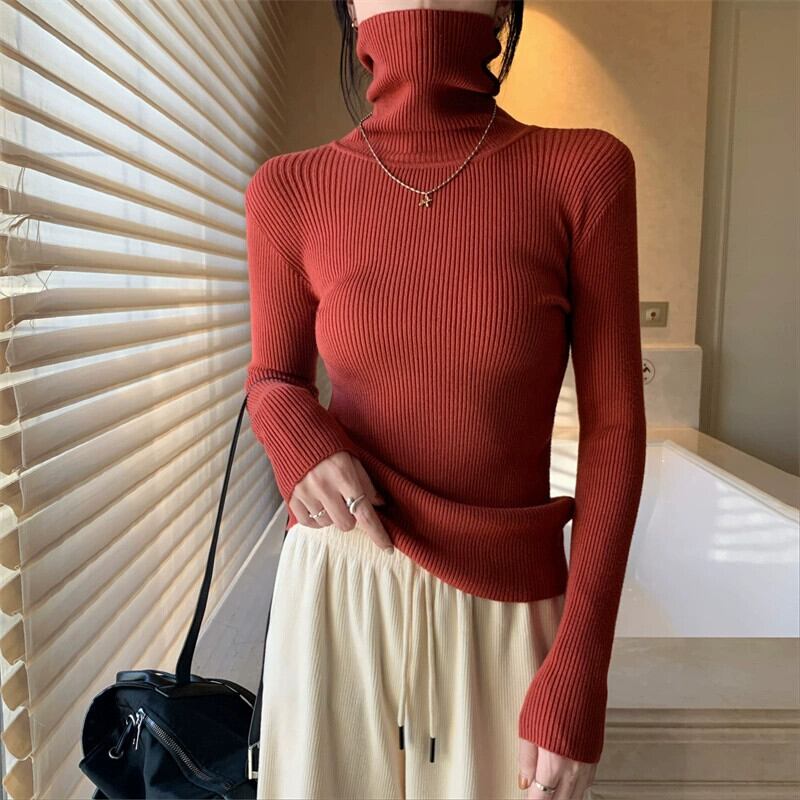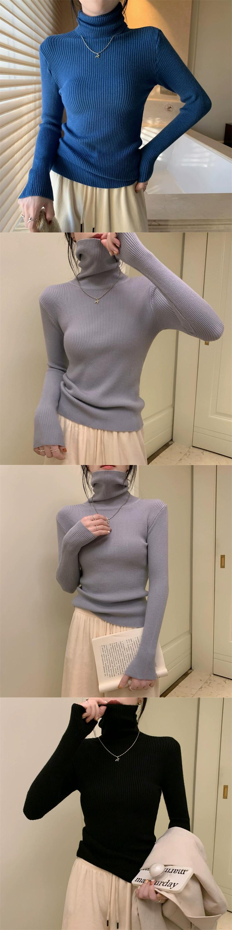 スレッドタートルネックボトムシャツレディース、秋冬スタイル、ショートセーター、スリムフィット、パイルカラー、長袖セーター ロング オータム 秋物 ウィンター 冬物 7460011471832007 | framboise21