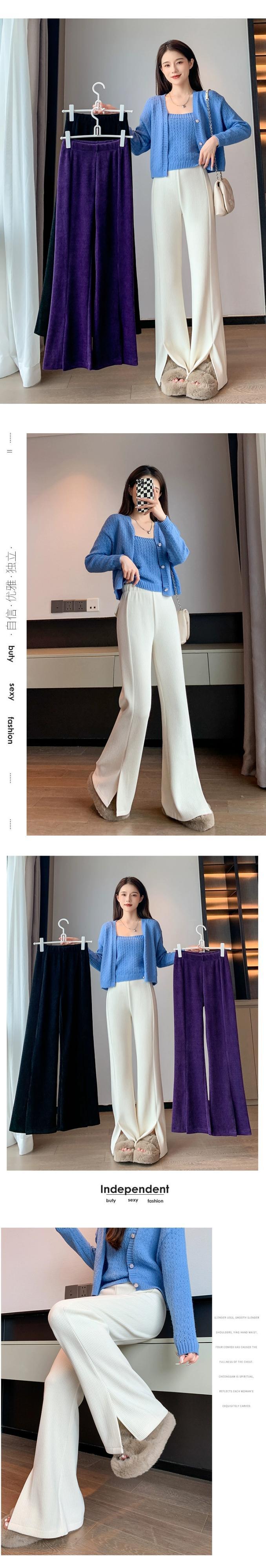 シェニールワイドレッグパンツレディース、秋冬ハイウエストフレアパンツ、ドレープストレートレッグカジュアルプラスベルベット厚みのあるコーデュロイパンツ レッド オータム 秋物 ウィンター 冬物 7460047921847725 | framboise21