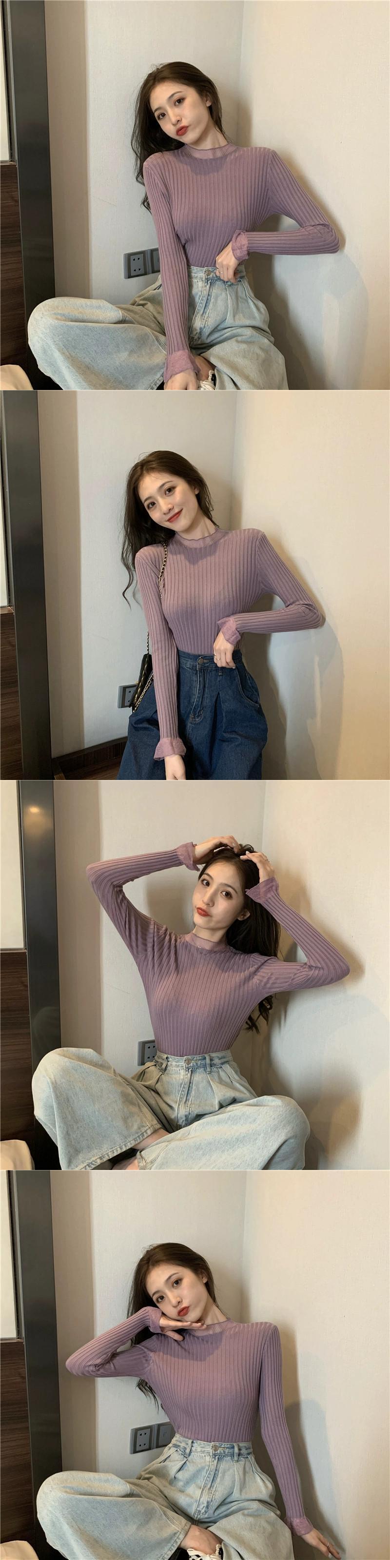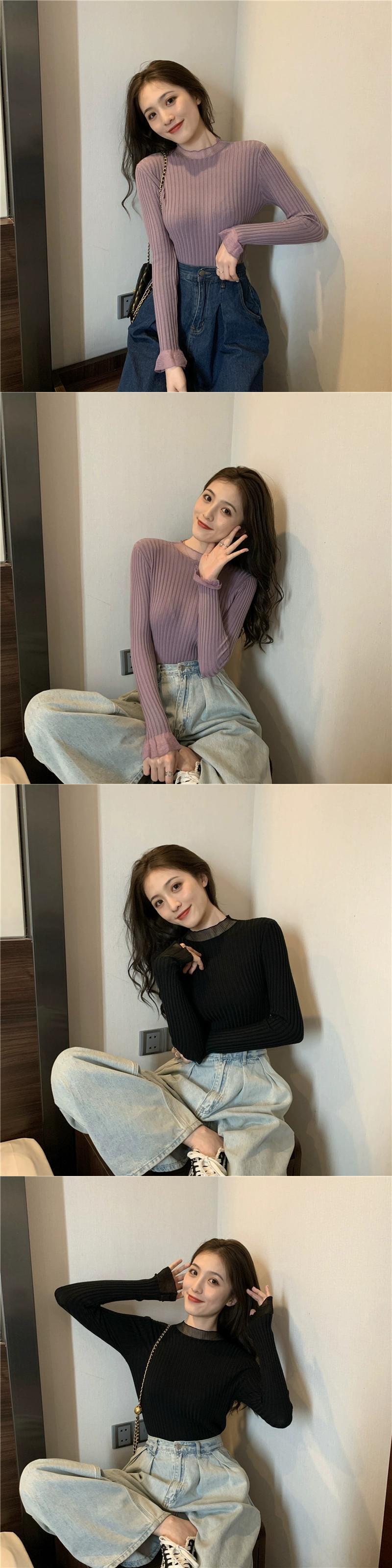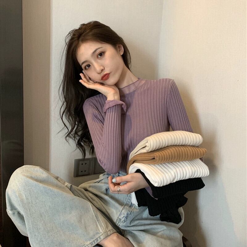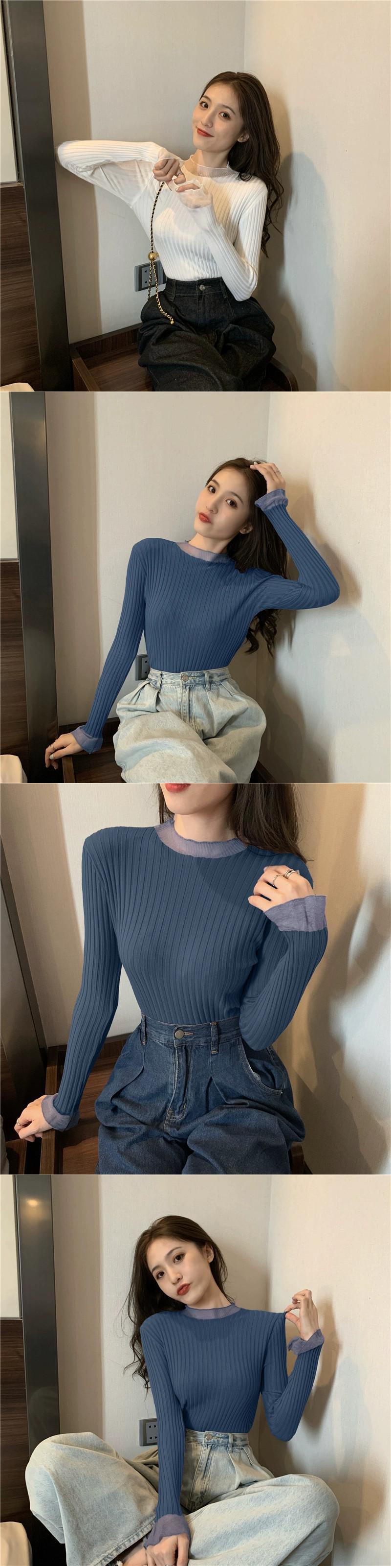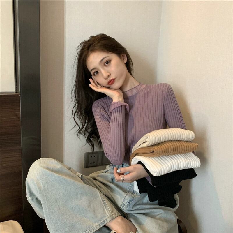 ハーフタートルネックニットボトムシャツレディース、2023年秋冬の新しいスタイル、スリムフィット、メッシュ長袖セーター ロング オータム 秋物 ウィンター 冬物 7460058001637259 | framboise21