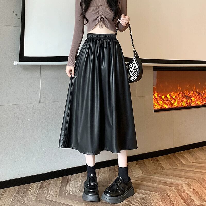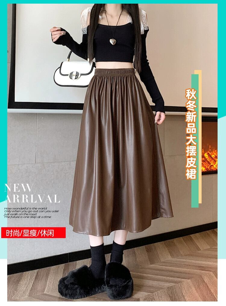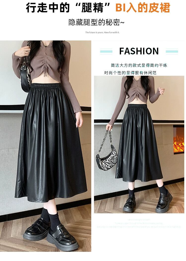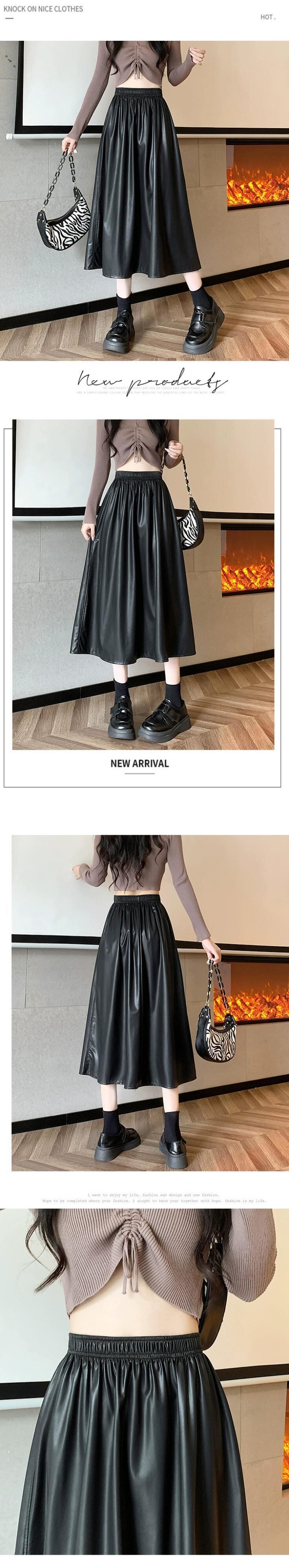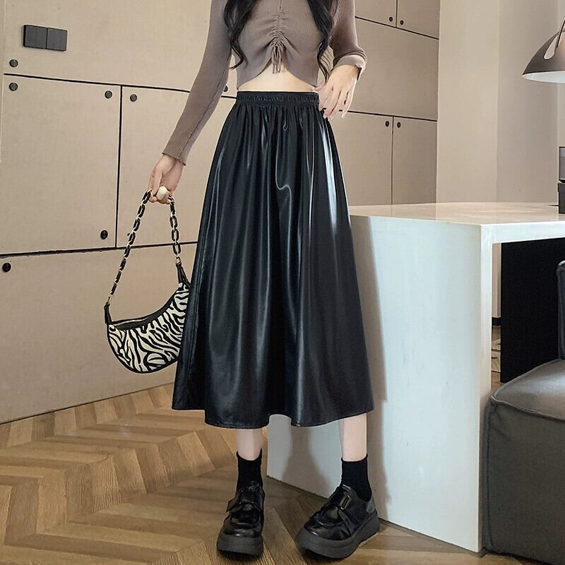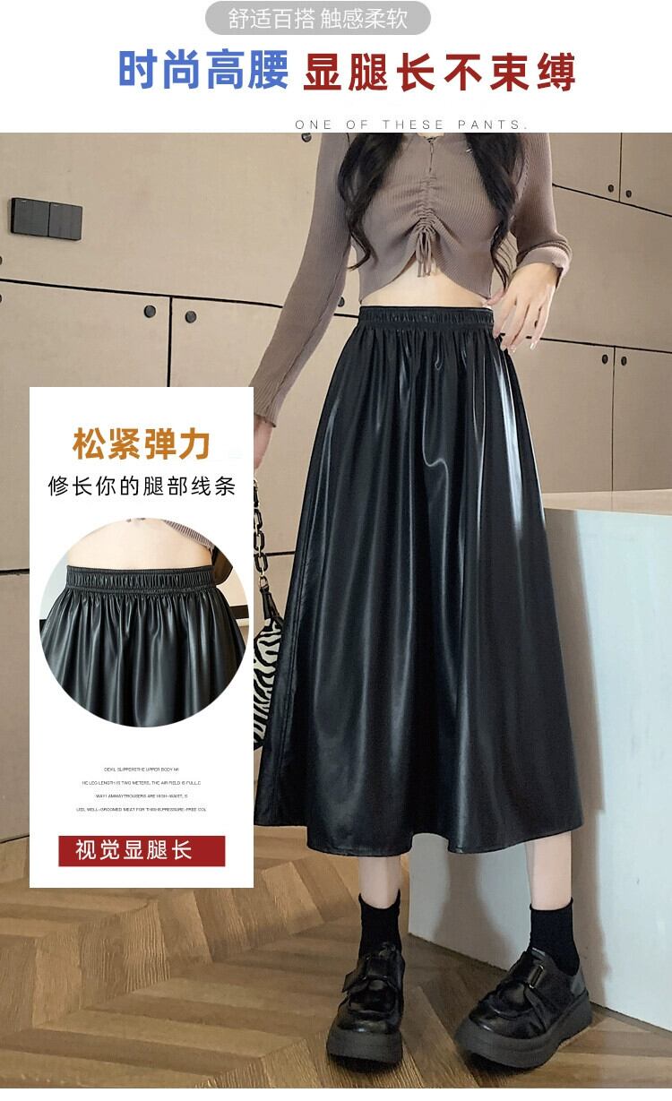 黒 pu レザースカートレディース秋冬新作超人気 a ラインレザースカートハイエンドスリムで多用途なハイウエストロングスカート ブラック オータム 秋物 ウィンター 冬物 Aライン 746006366966855 | framboise21