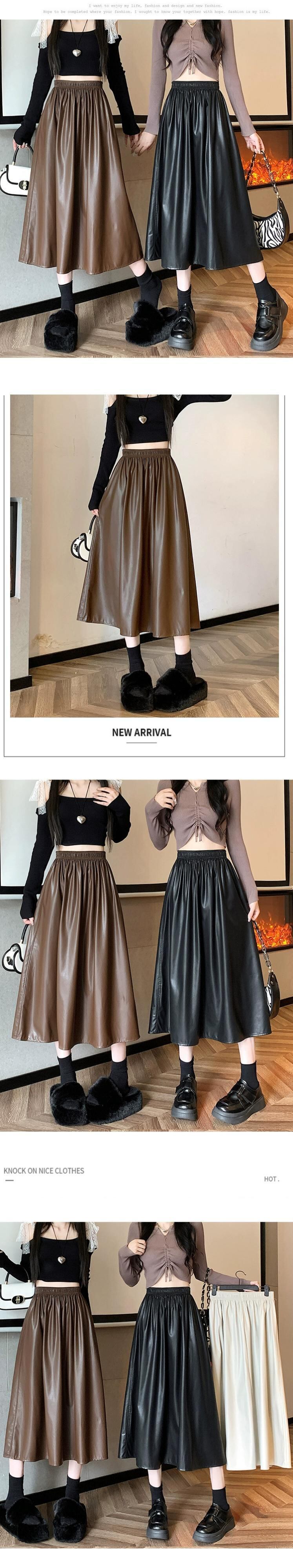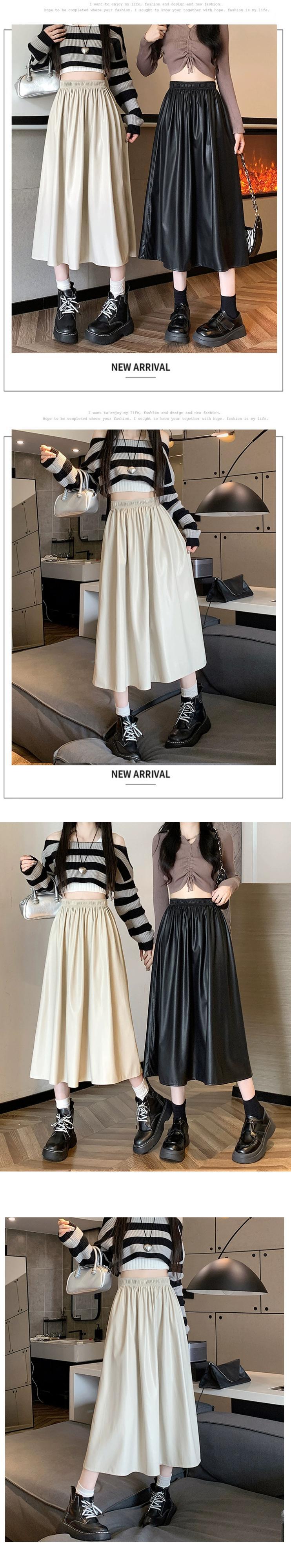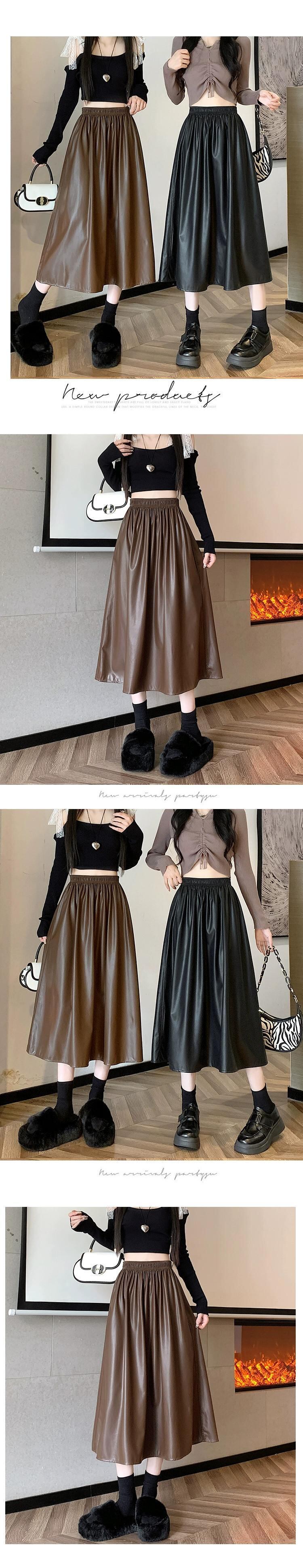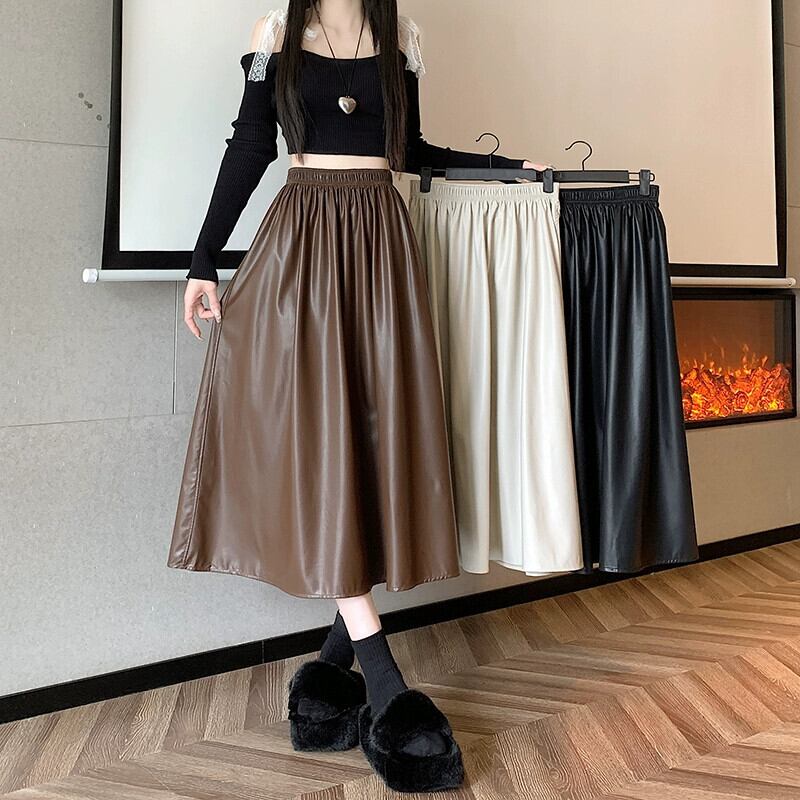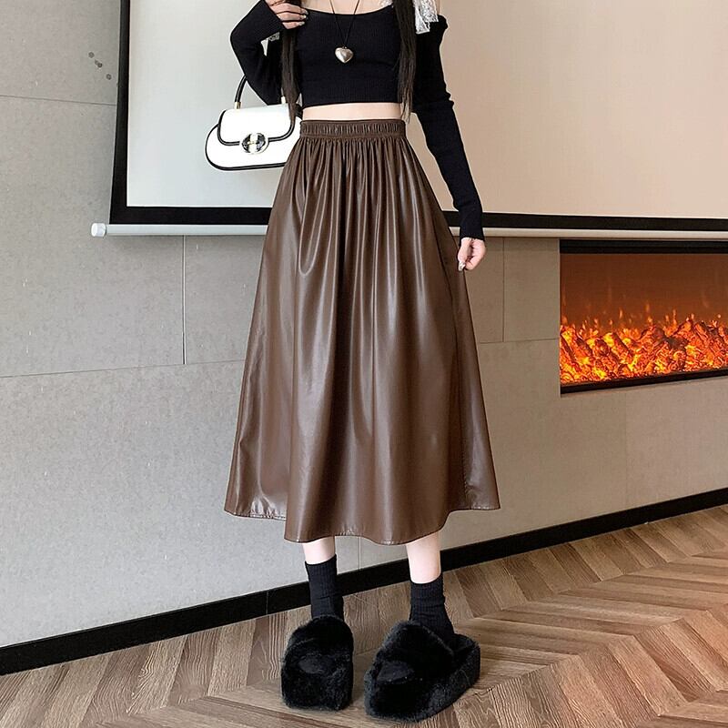 黒 pu レザースカートレディース秋冬新作超人気 a ラインレザースカートハイエンドスリムで多用途なハイウエストロングスカート ブラック オータム 秋物 ウィンター 冬物 Aライン 746006366966855 | framboise21