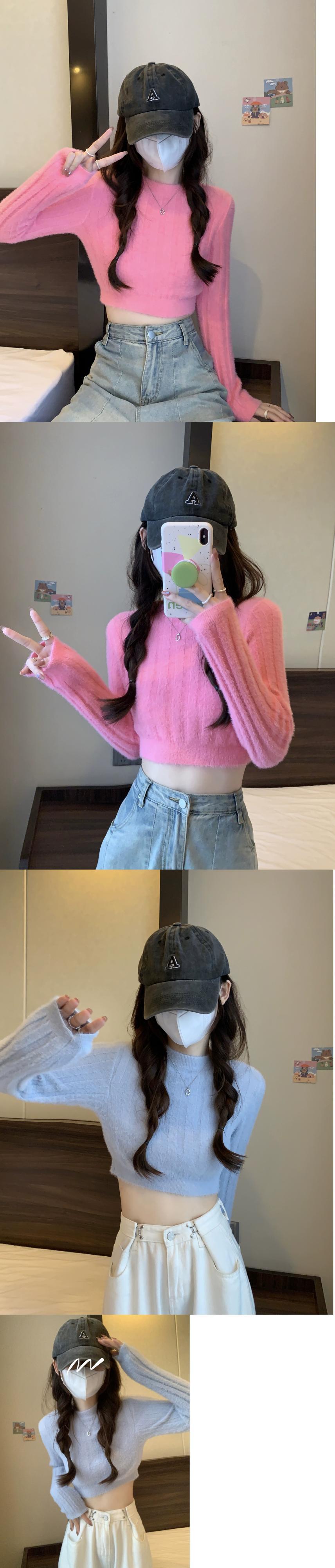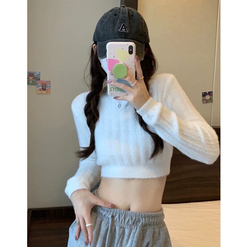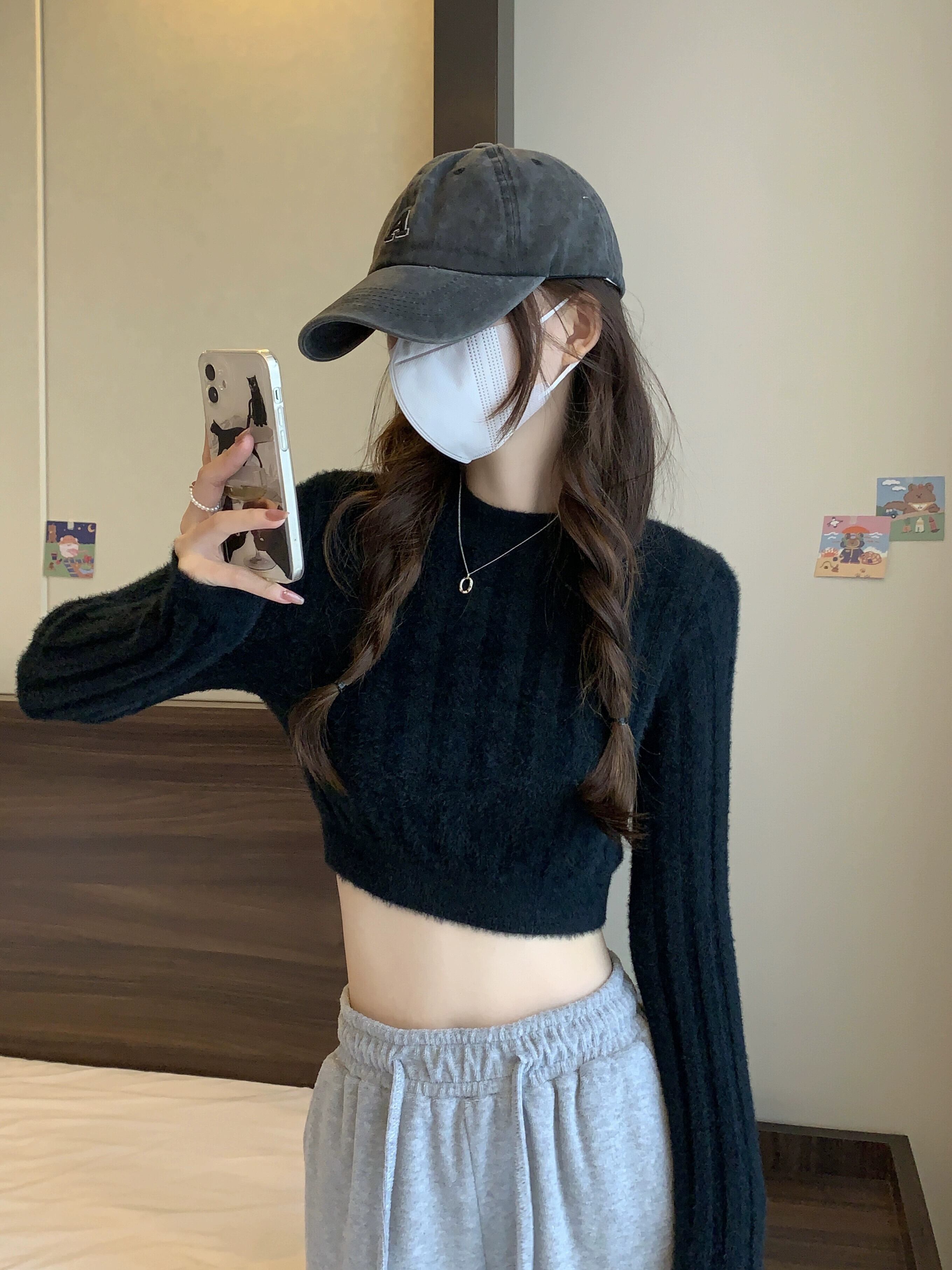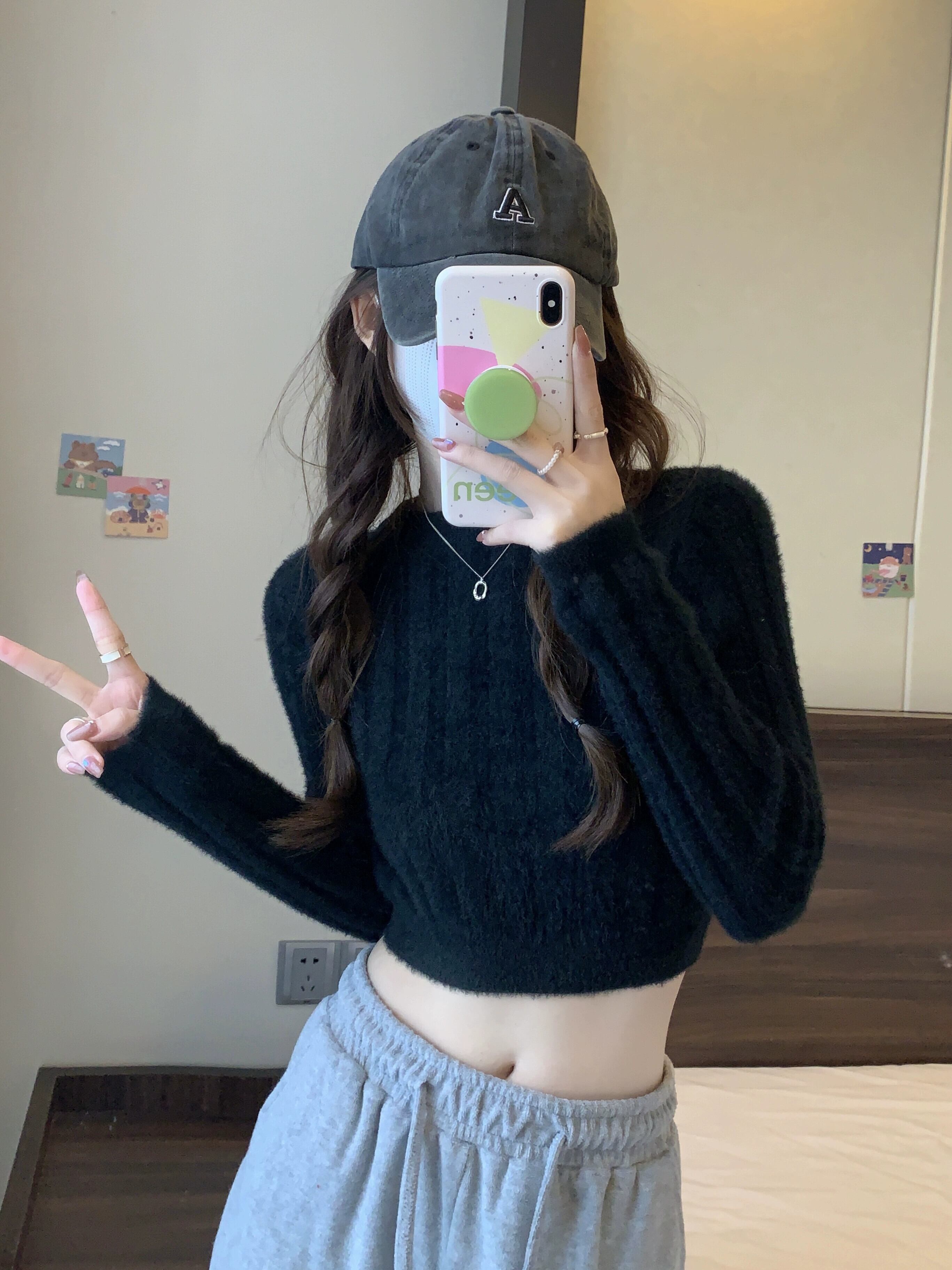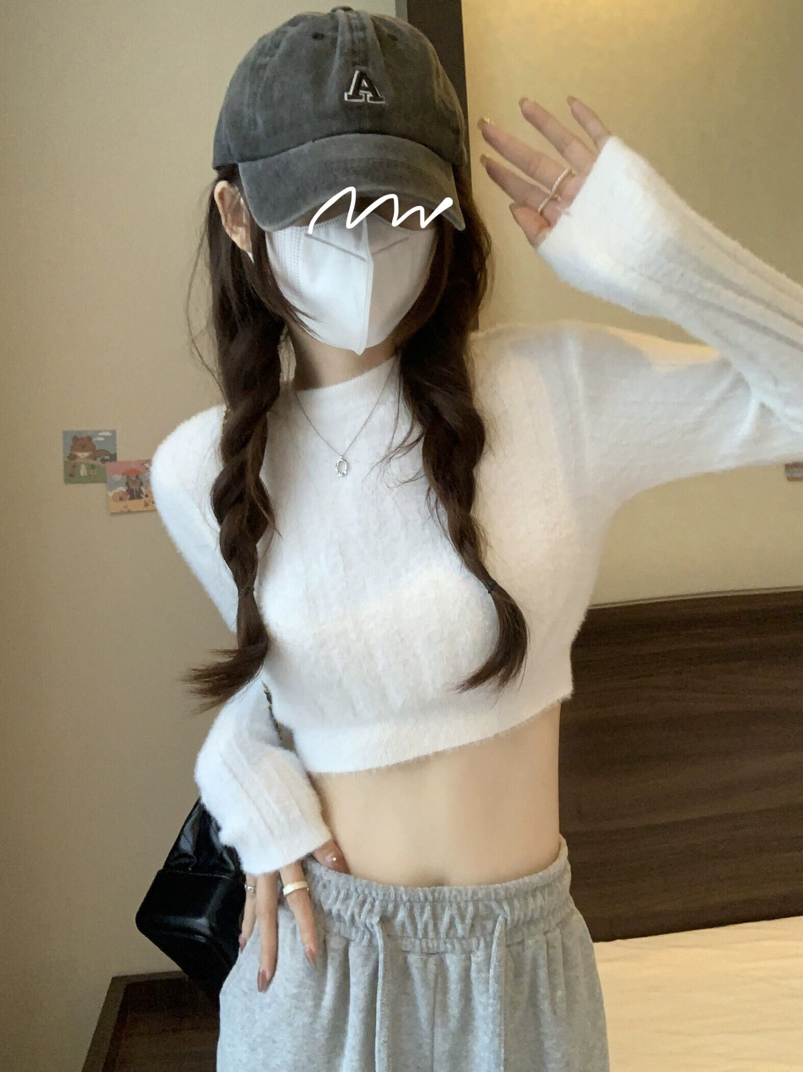 モヘアボトムセーターレディース、秋冬新スタイル、2023スタイル、ファッショナブル、スリムフィットインナーショートニットトップ オータム 秋物 ウィンター 冬物 7460068223503460 | framboise21