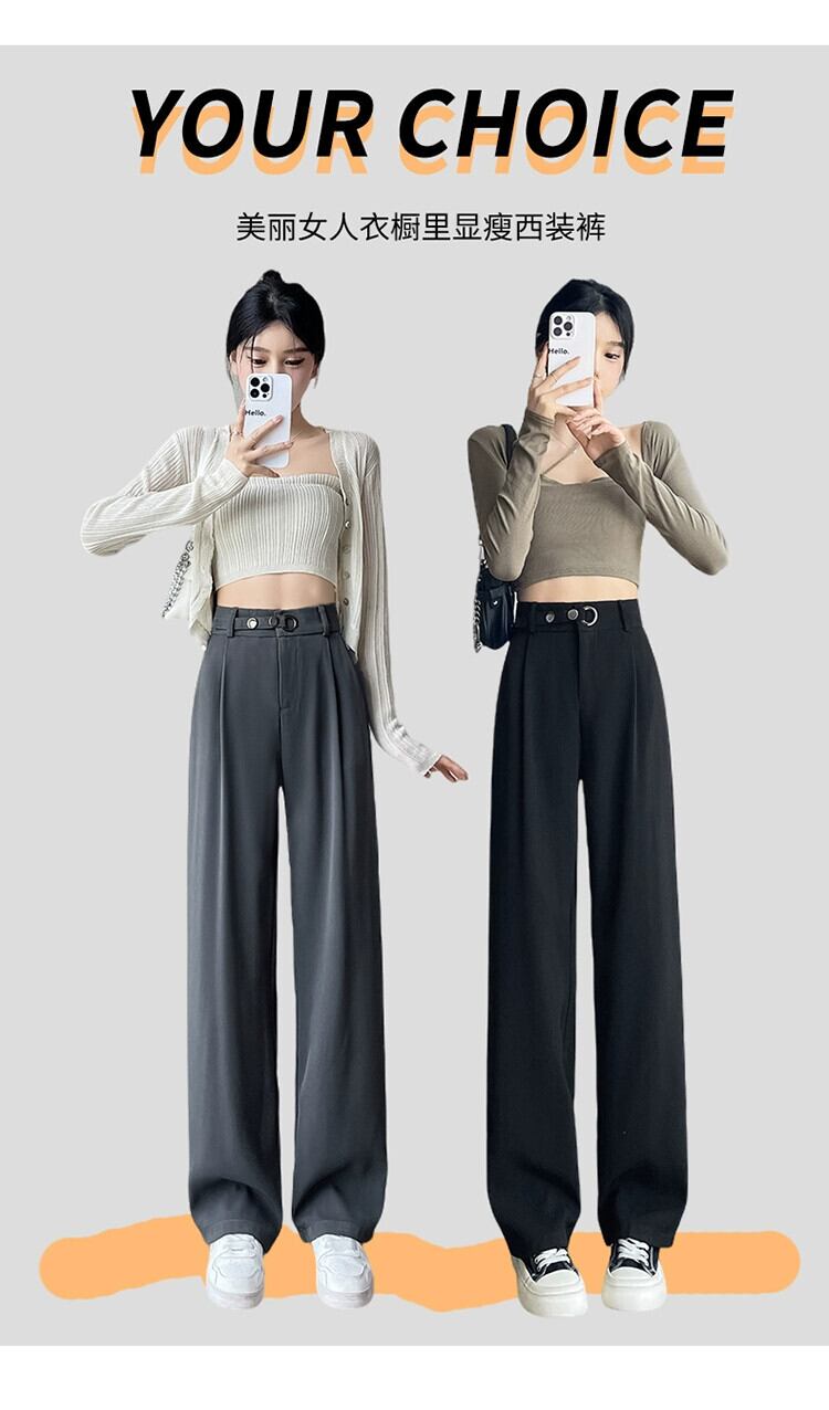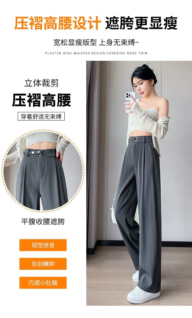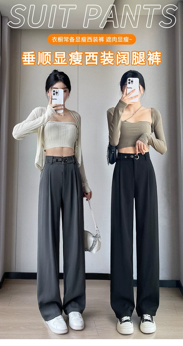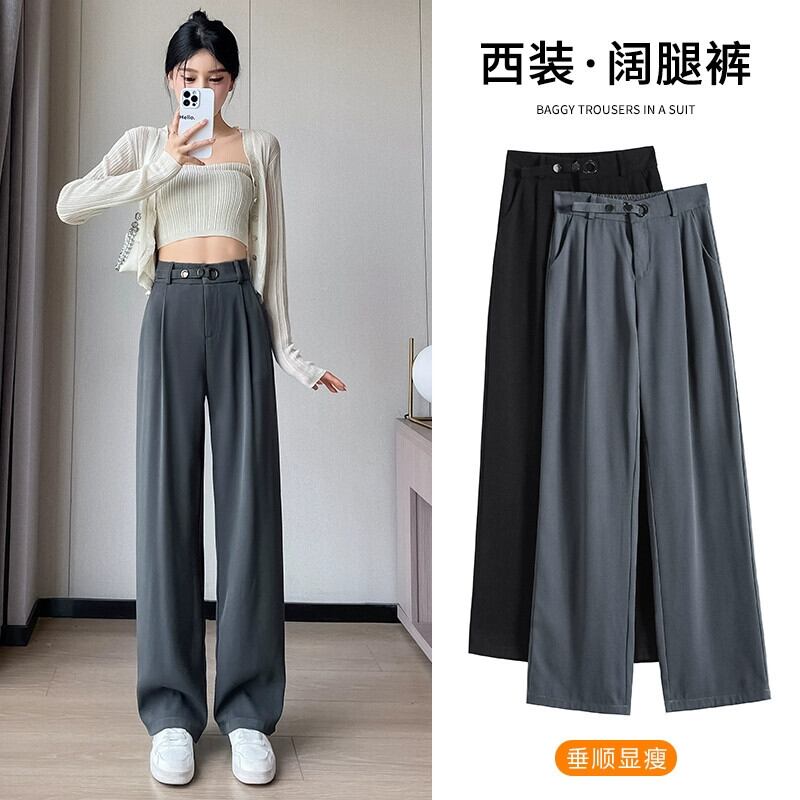 グレーハイウエストストレートスーツパンツ女性 2023 春と秋の新作ハイエンドドレープルーズカジュアルナローワイドレッグパンツ スプリング 春物 オータム 秋物 7460011747415421 | framboise21