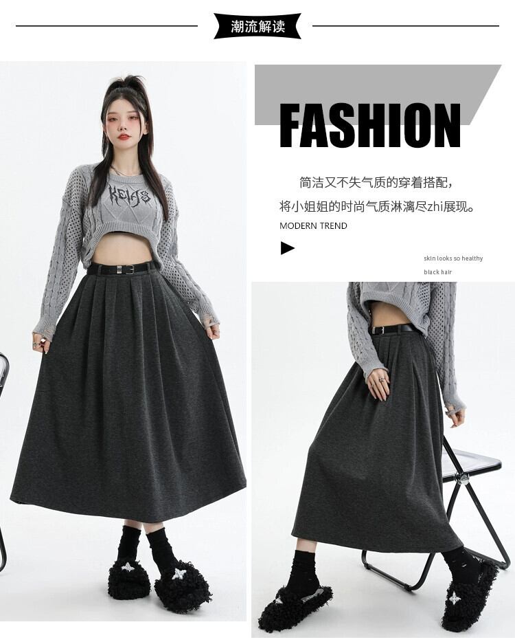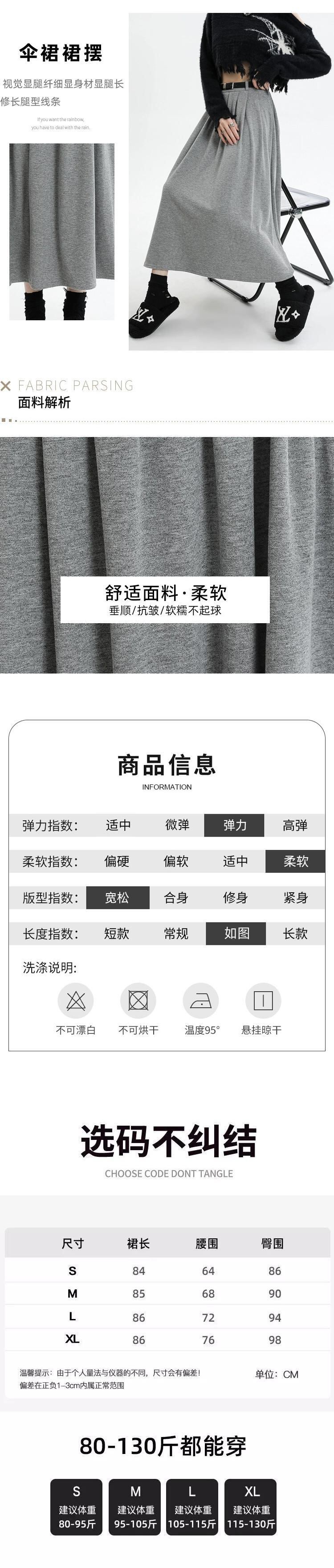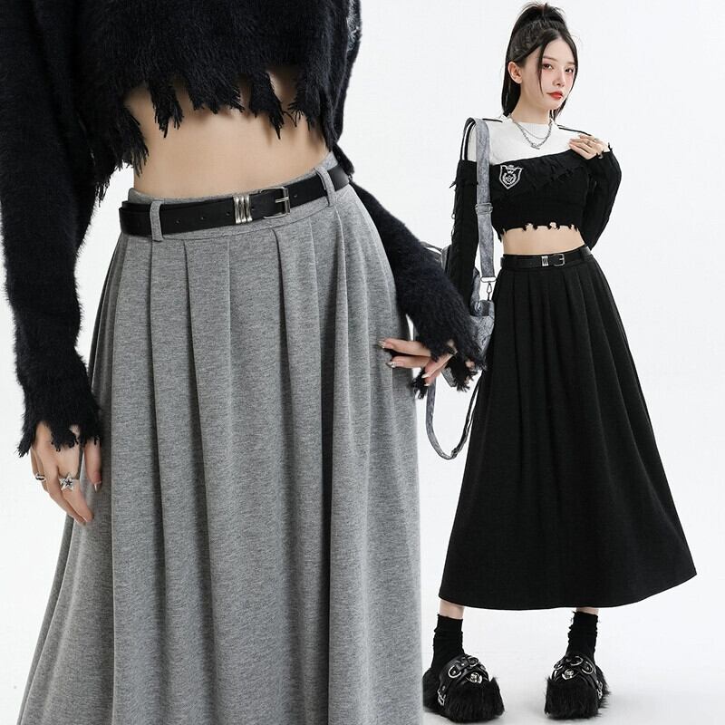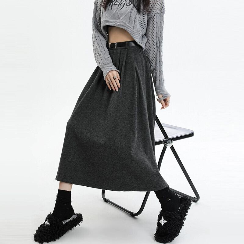 ダークグレーのニットスカートレディース、秋冬新作ハイウエストAラインスカート、お腹周りをカバーして着痩せ見え、万能ドレープロングスカート オータム 秋物 ウィンター 冬物 7460010654409964 | framboise21