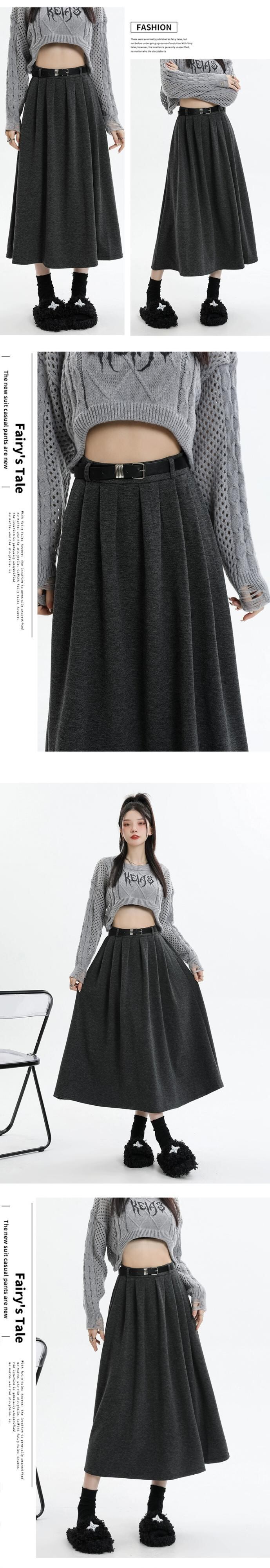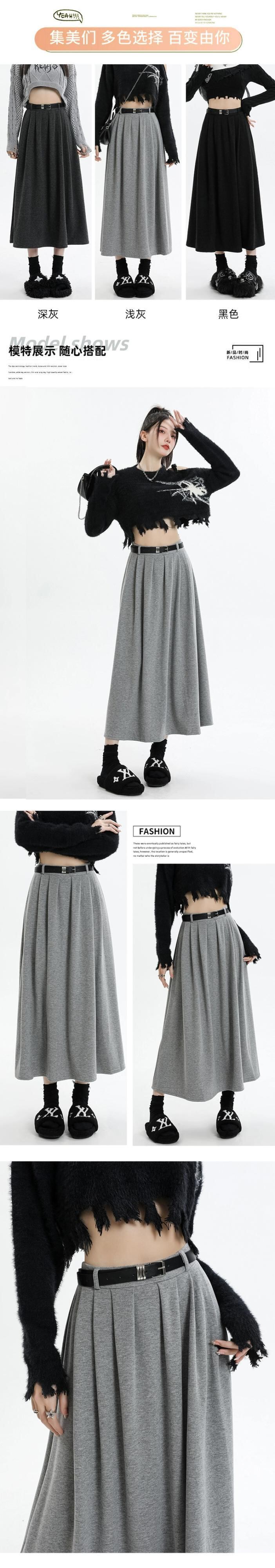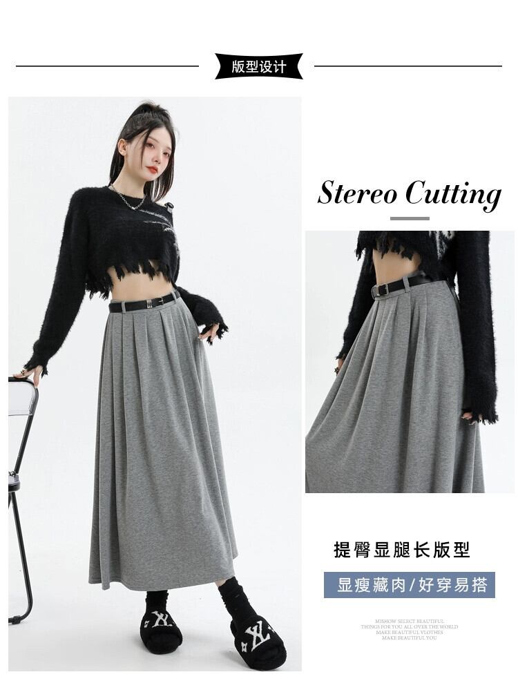 ダークグレーのニットスカートレディース、秋冬新作ハイウエストAラインスカート、お腹周りをカバーして着痩せ見え、万能ドレープロングスカート オータム 秋物 ウィンター 冬物 7460010654409964 | framboise21