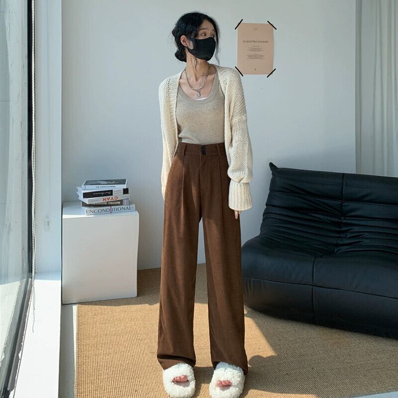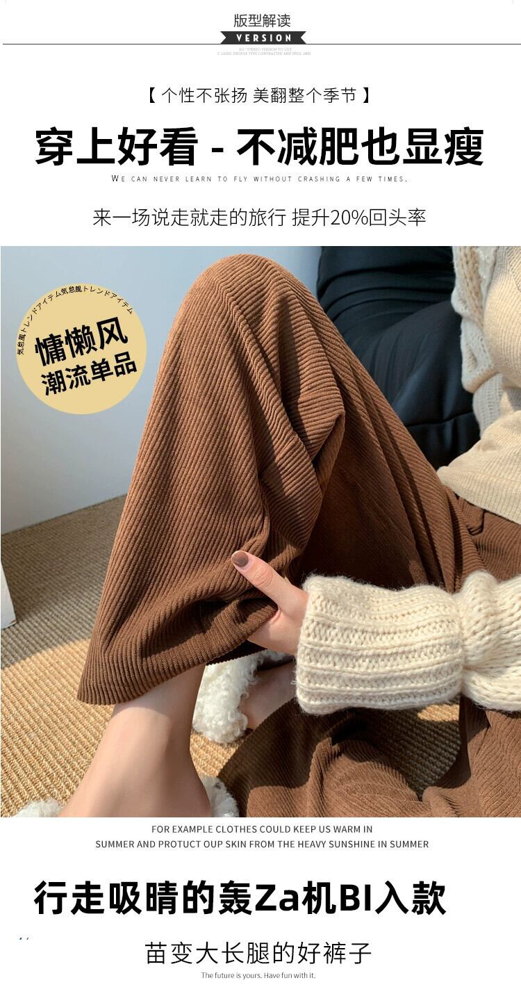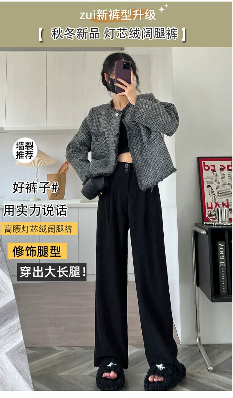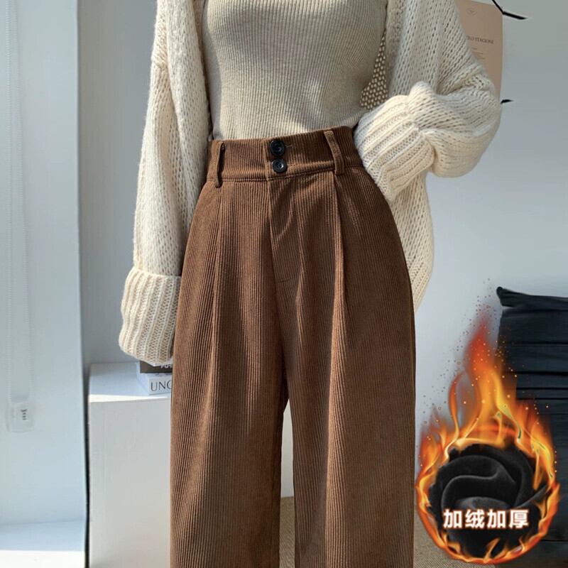 ベルベット肥厚パンツ女性秋冬 2023 新しいコーデュロイワイドレッグパンツハイウエストドレープストレートルーズカジュアルパンツ オータム 秋物 ウィンター 冬物 746008638021690 | framboise21