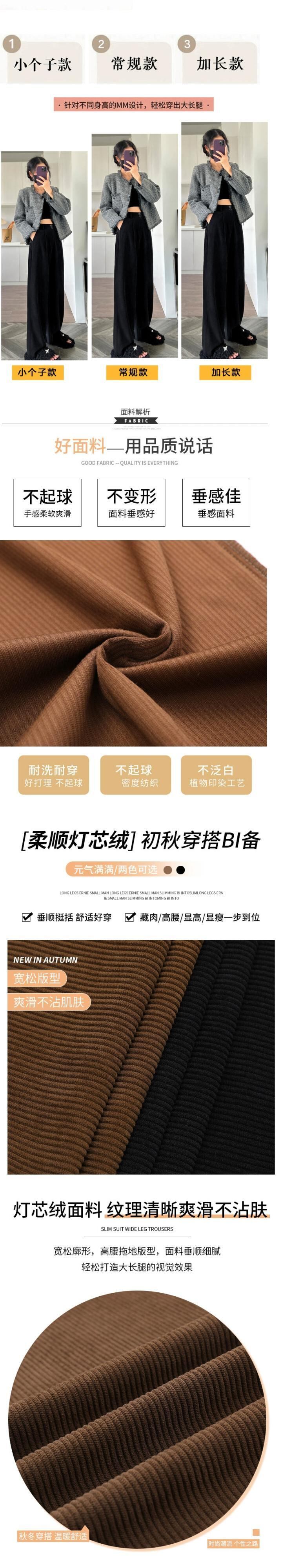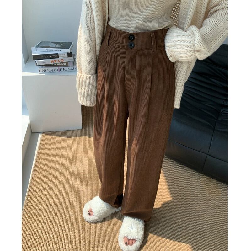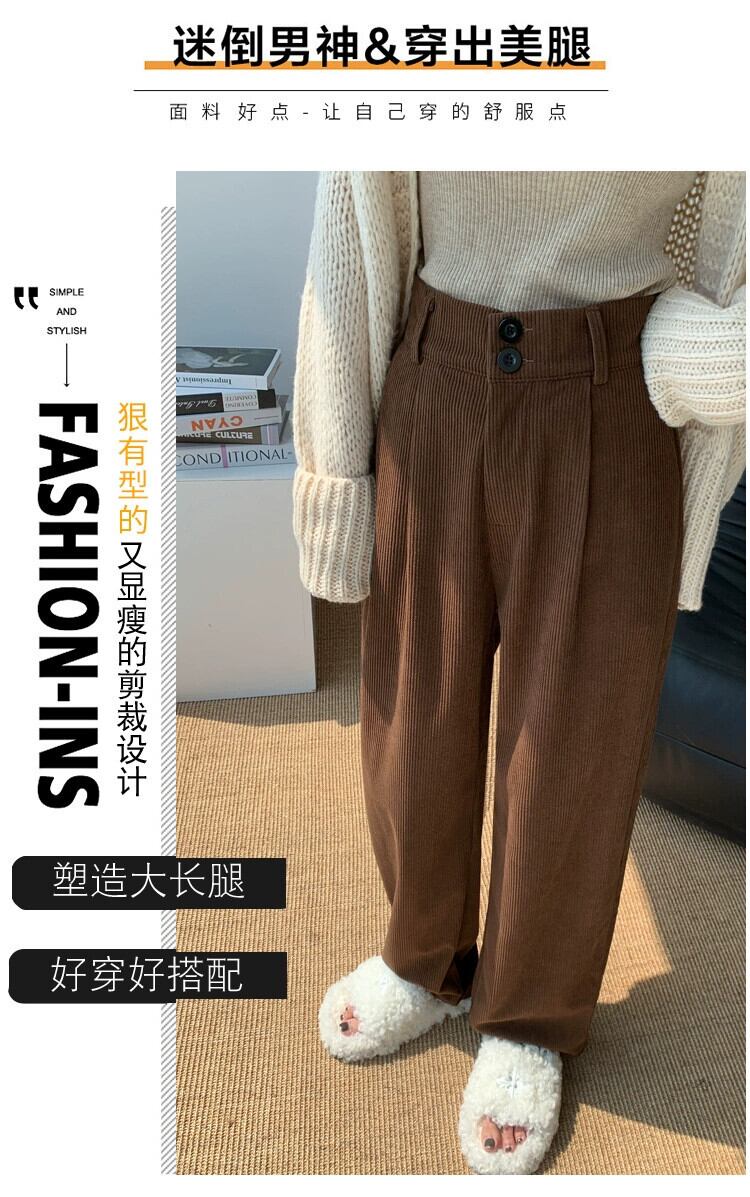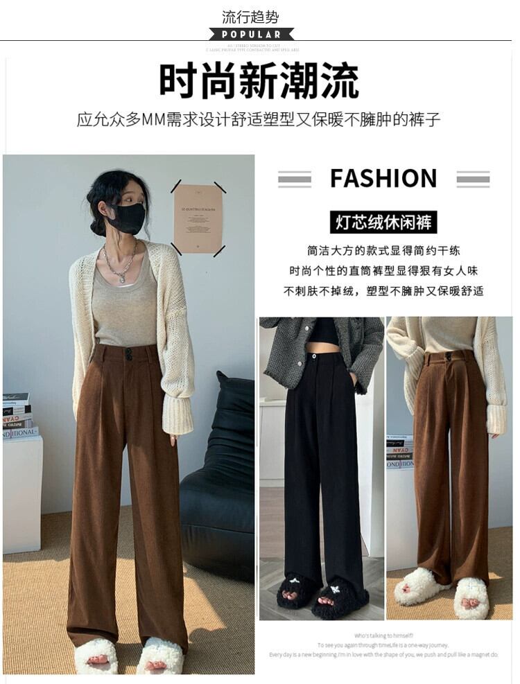 ベルベット肥厚パンツ女性秋冬 2023 新しいコーデュロイワイドレッグパンツハイウエストドレープストレートルーズカジュアルパンツ オータム 秋物 ウィンター 冬物 746008638021690 | framboise21