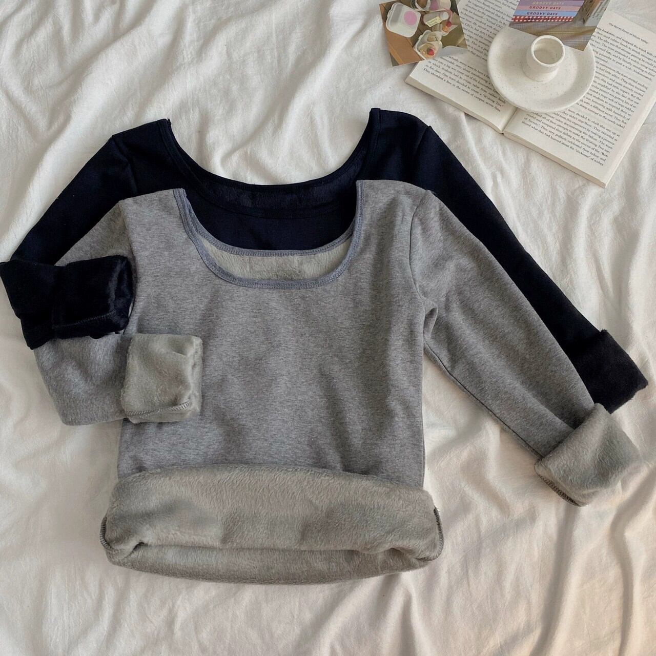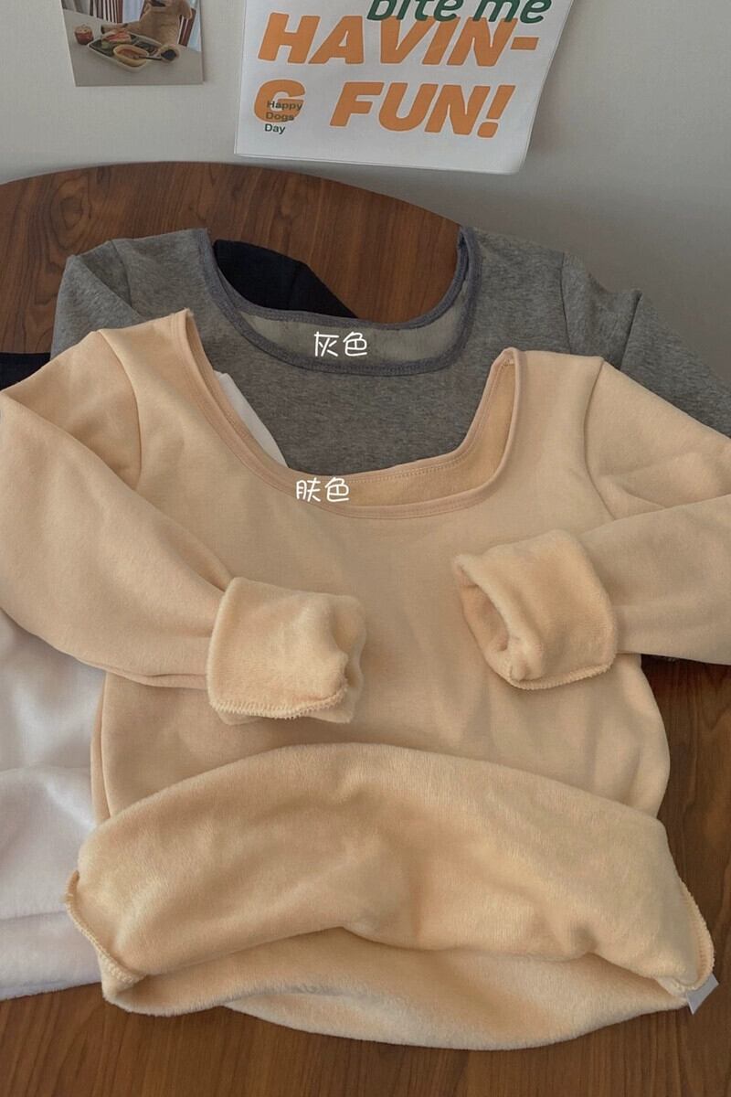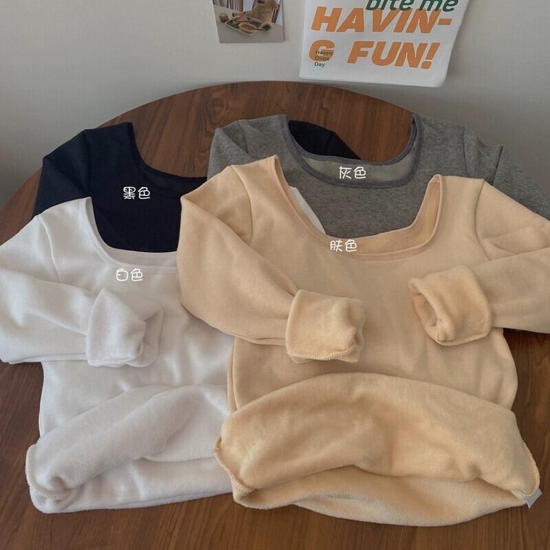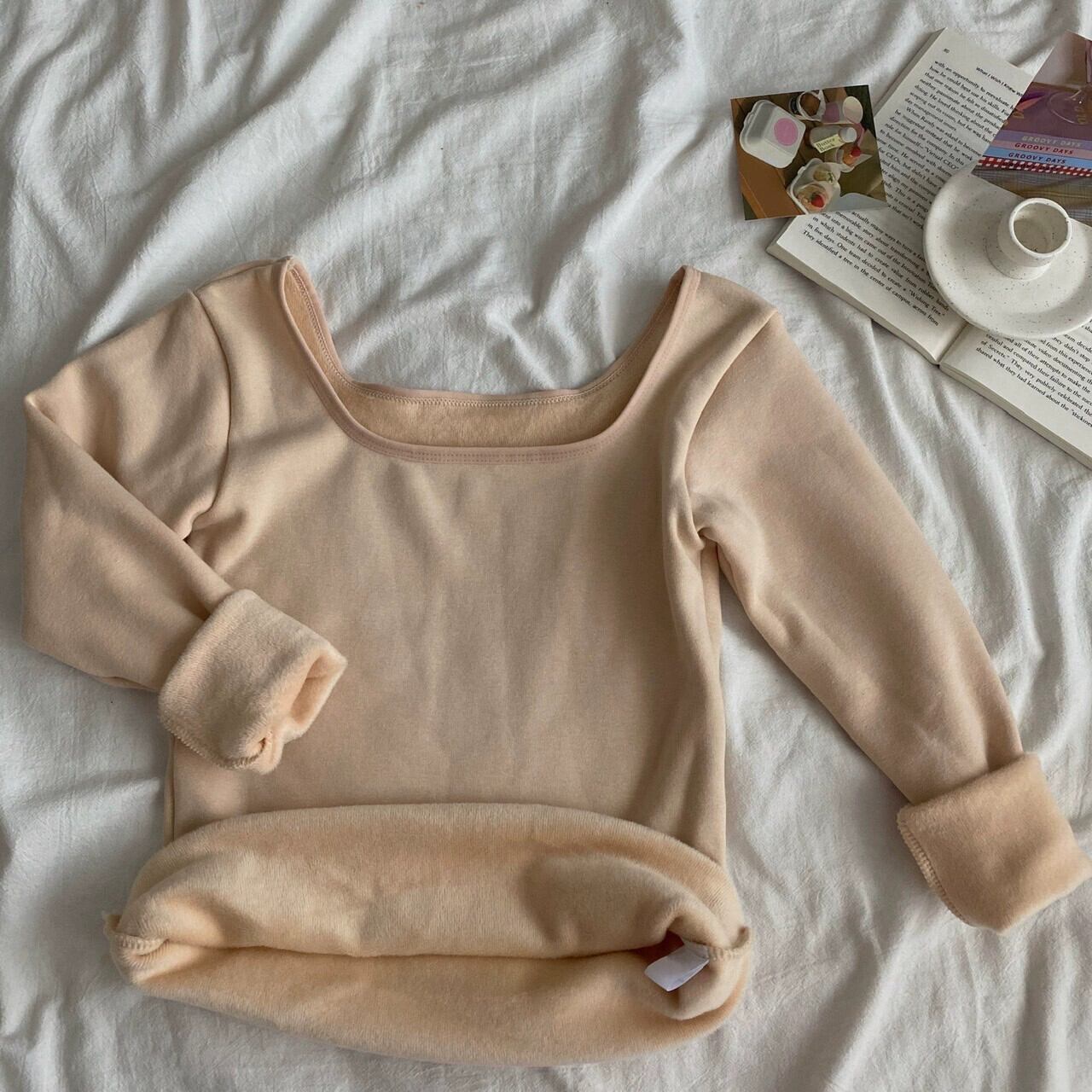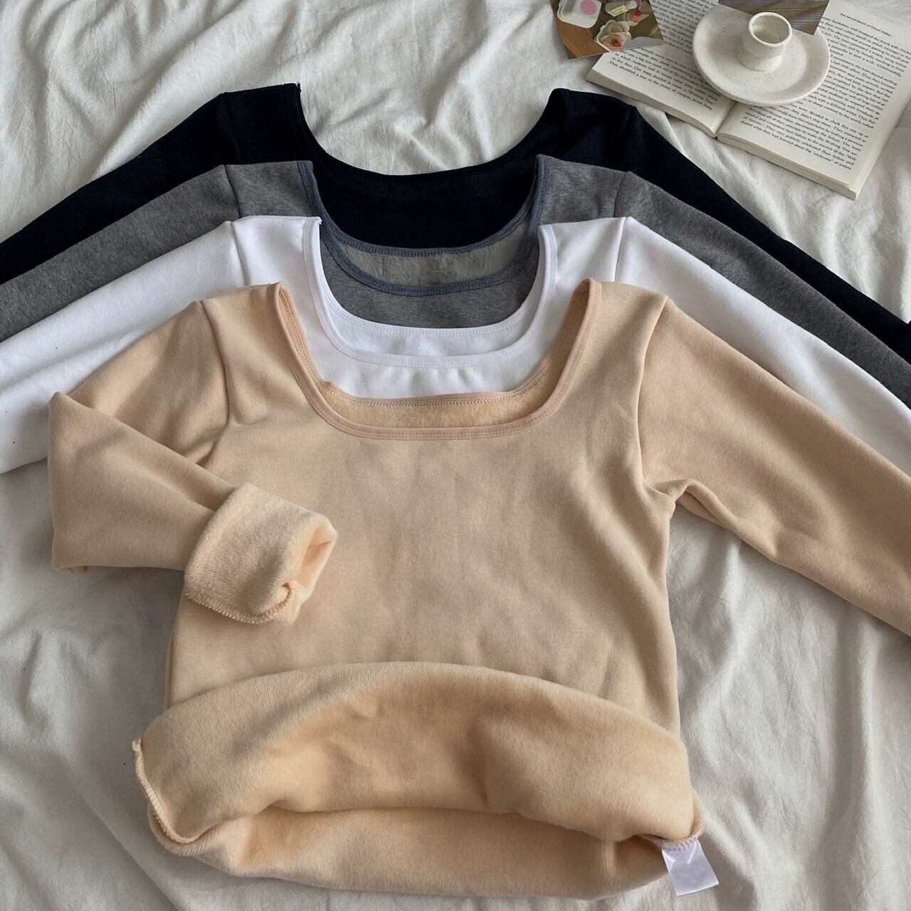 秋冬の厚いベルベットの暖かい底シャツ女性、洋風のインナーウェア、スリムフィットで多用途なショートスクエアネック長袖Tシャツ ロング オータム 秋物 ウィンター 冬物 スクウェア 746004087014662 | framboise21