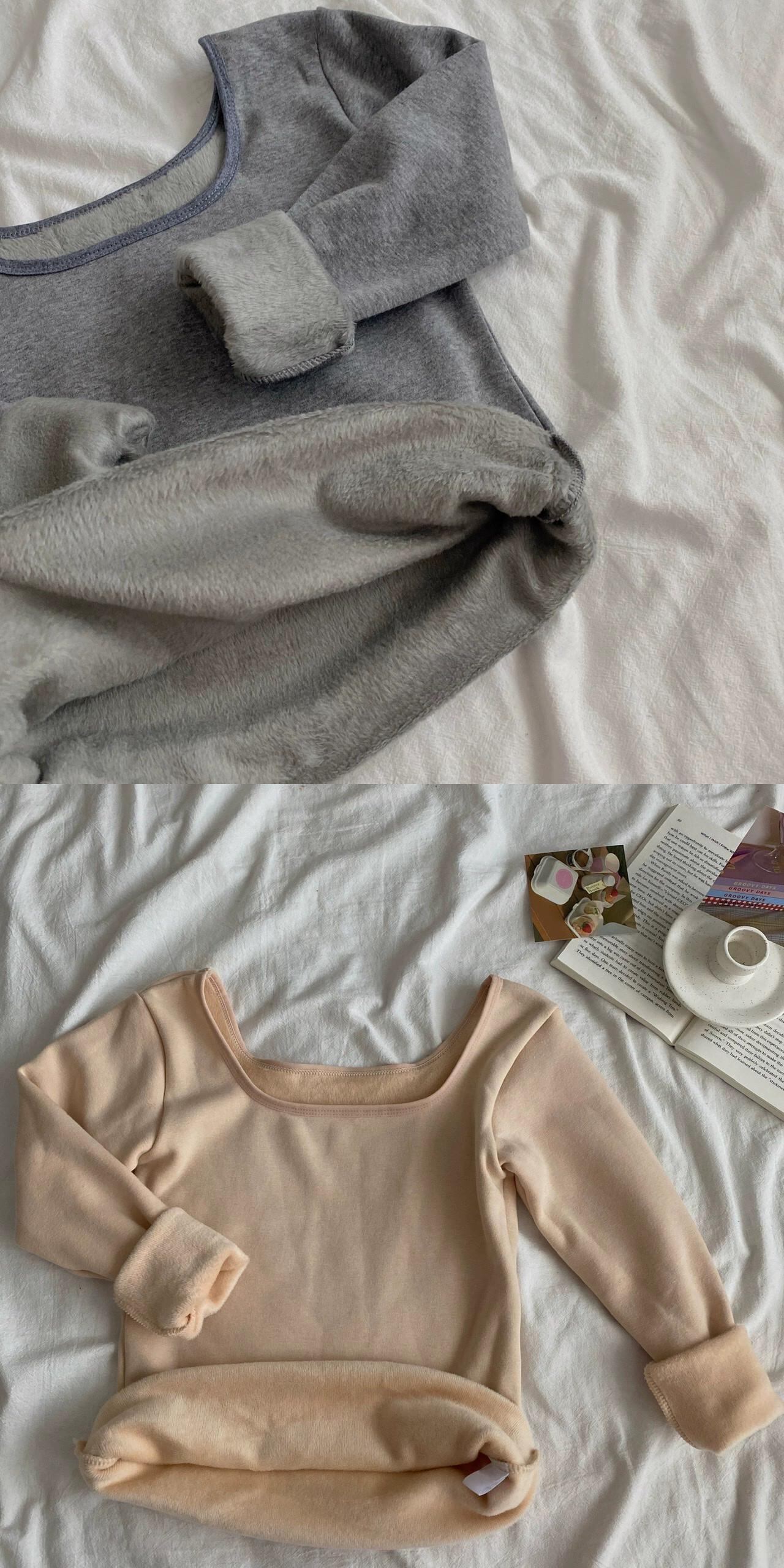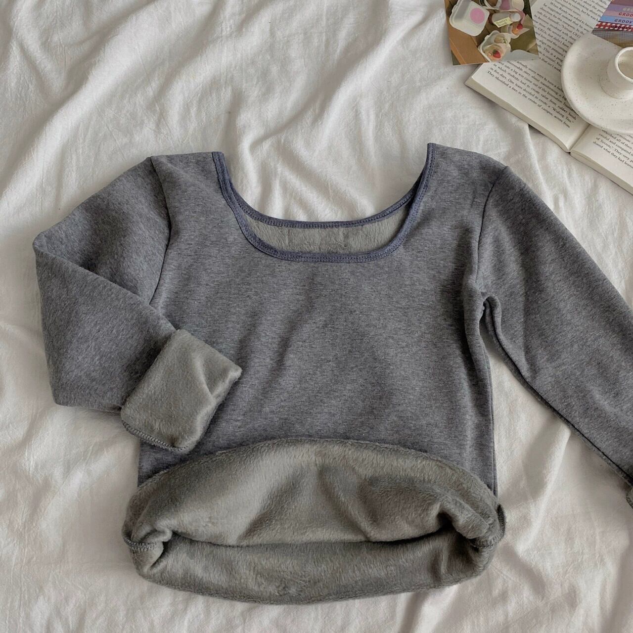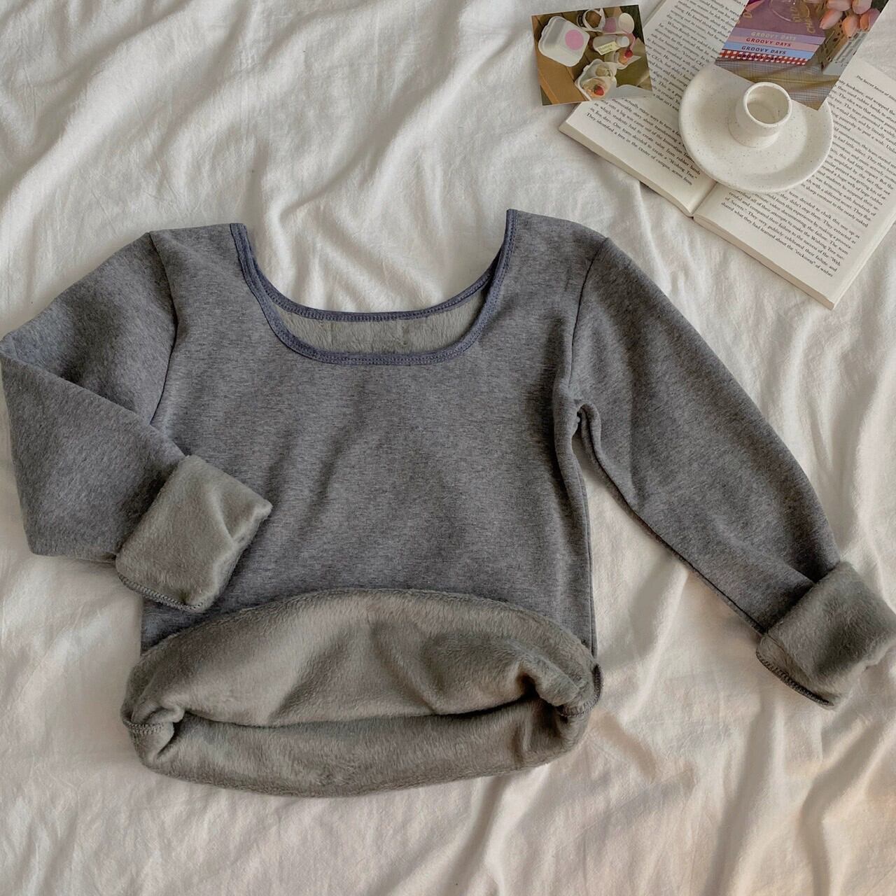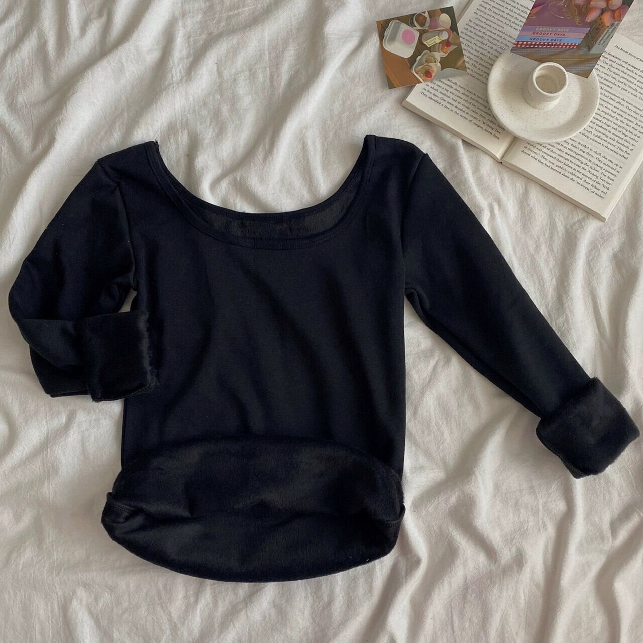 秋冬の厚いベルベットの暖かい底シャツ女性、洋風のインナーウェア、スリムフィットで多用途なショートスクエアネック長袖Tシャツ ロング オータム 秋物 ウィンター 冬物 スクウェア 746004087014662 | framboise21