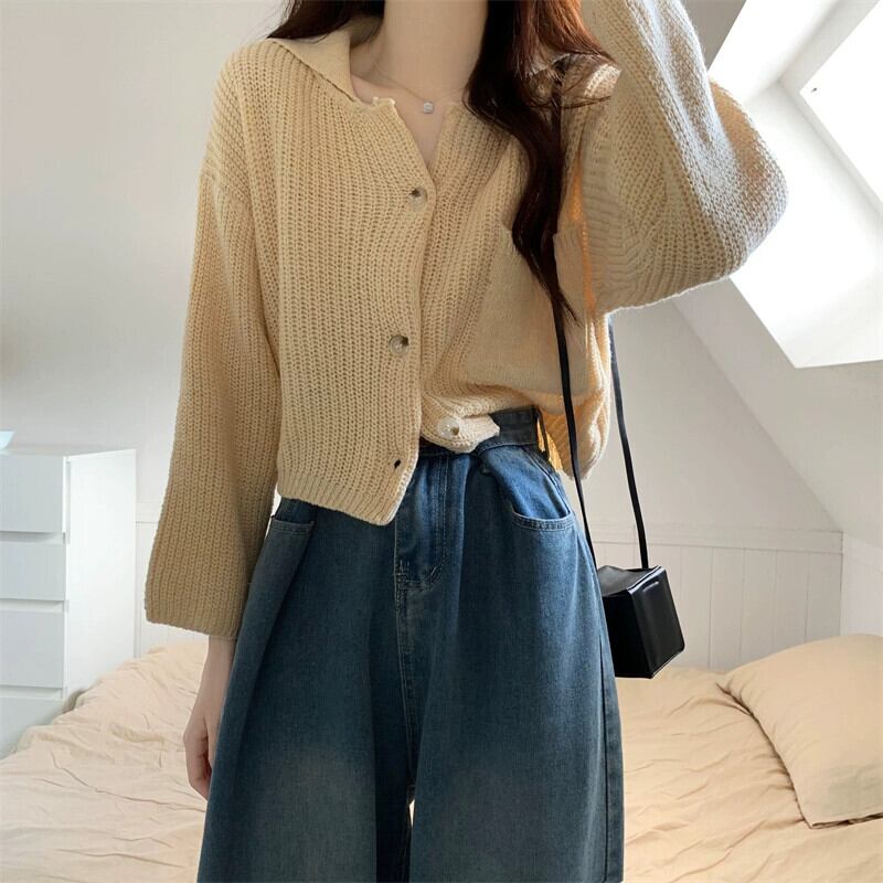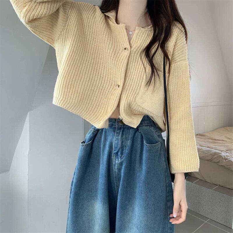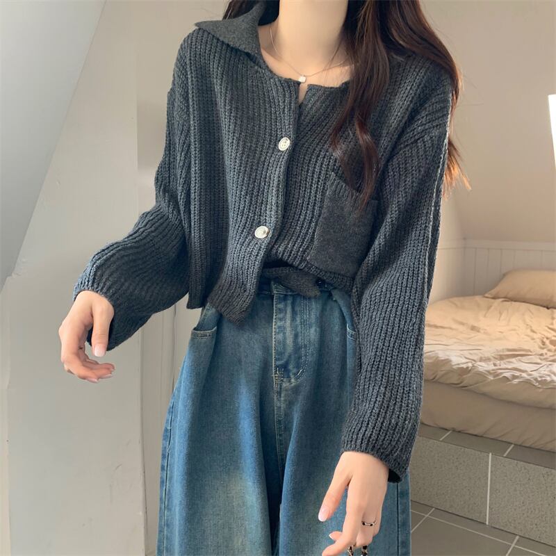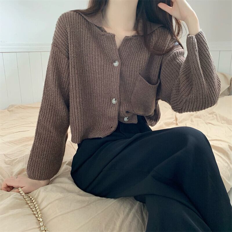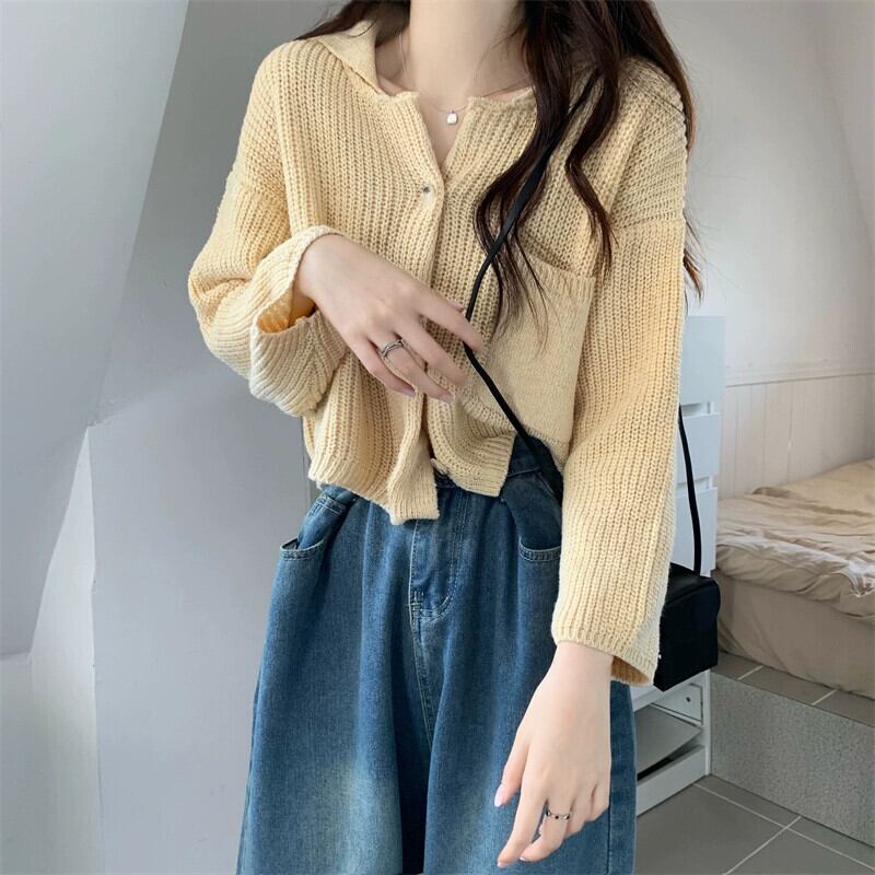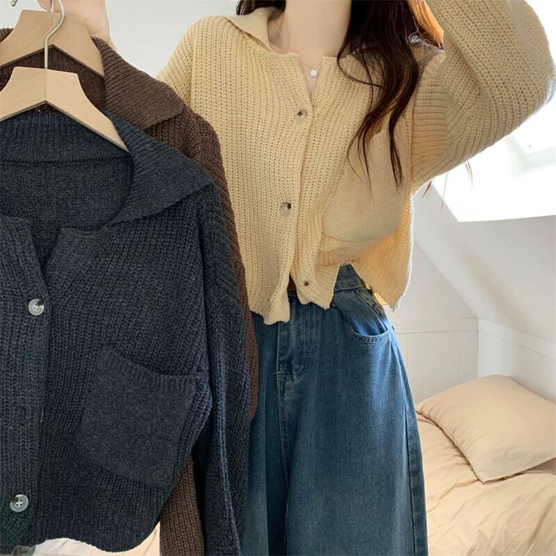 ラペルセータージャケット女性秋と冬 2023 新スタイル怠惰なスタイルカーディガンルーズアウターショートニットセーター オータム 秋物 ウィンター 冬物 7460097979223403 | framboise21