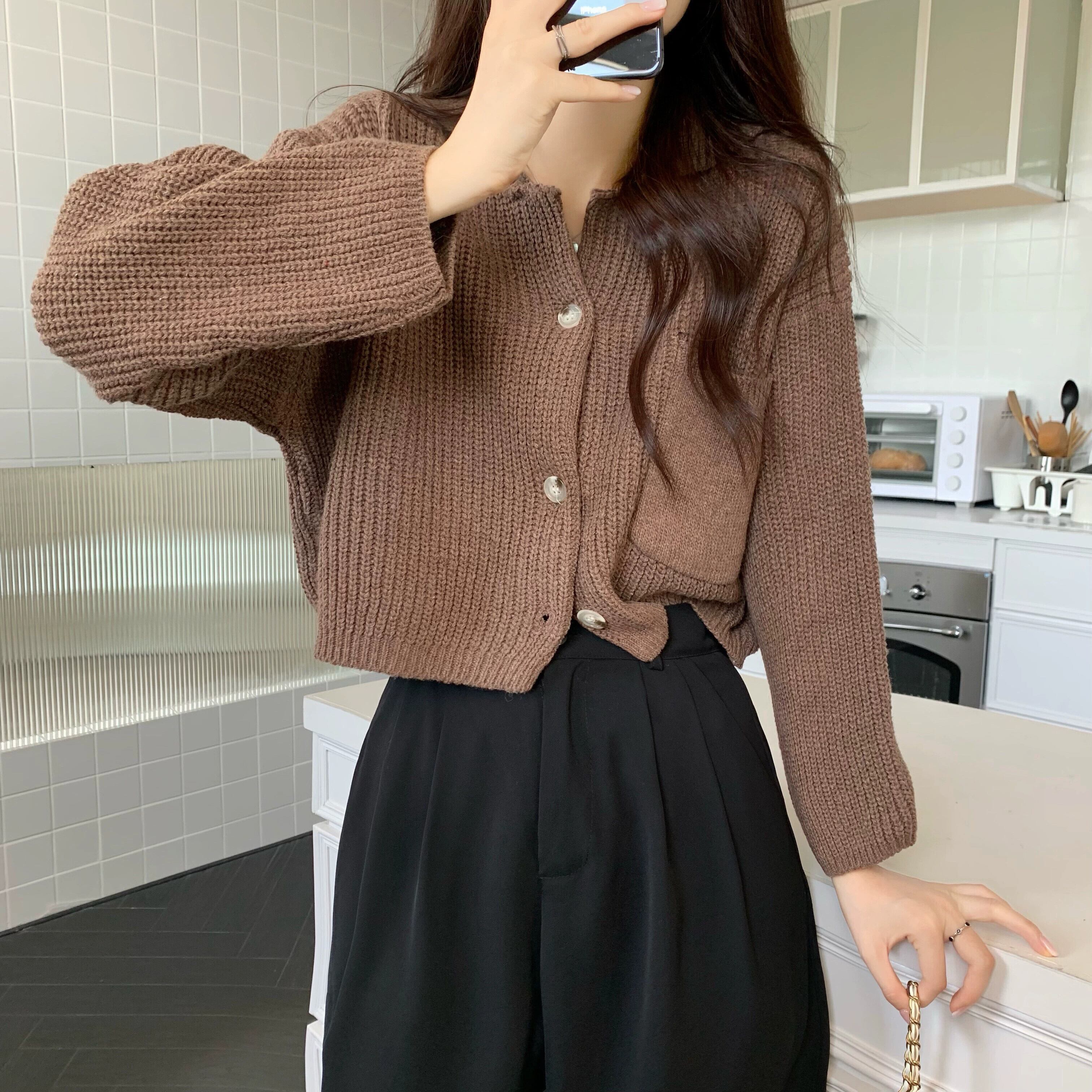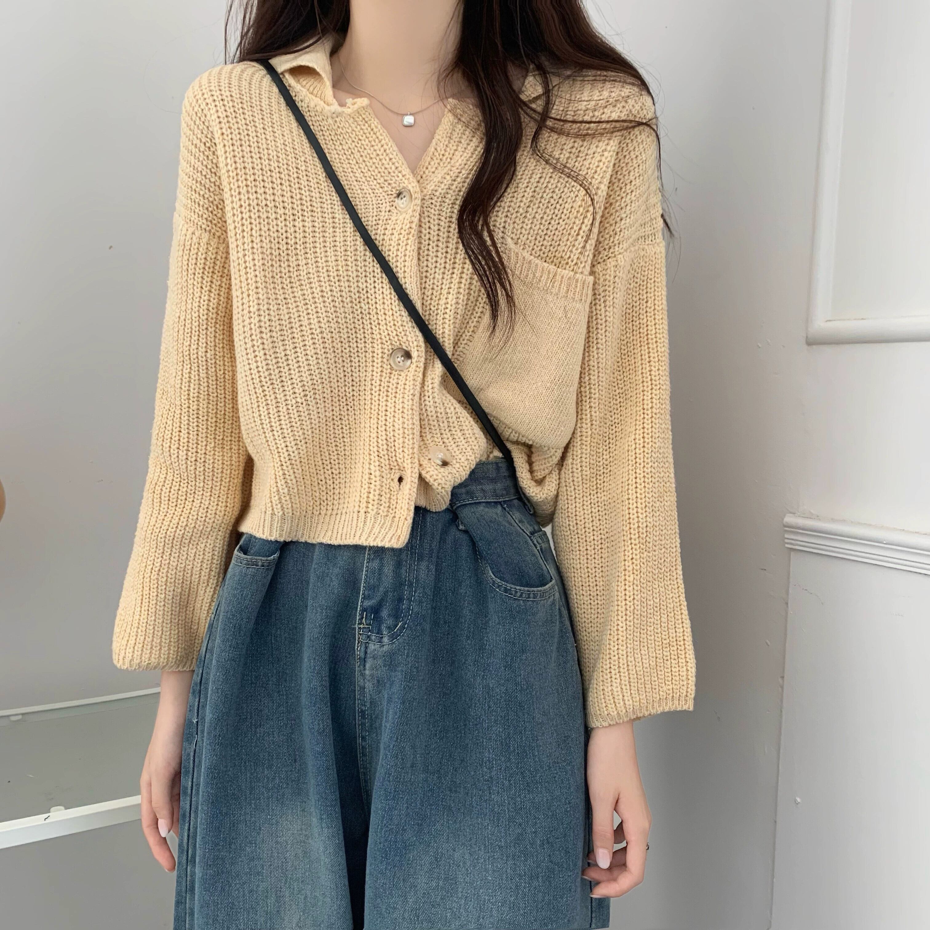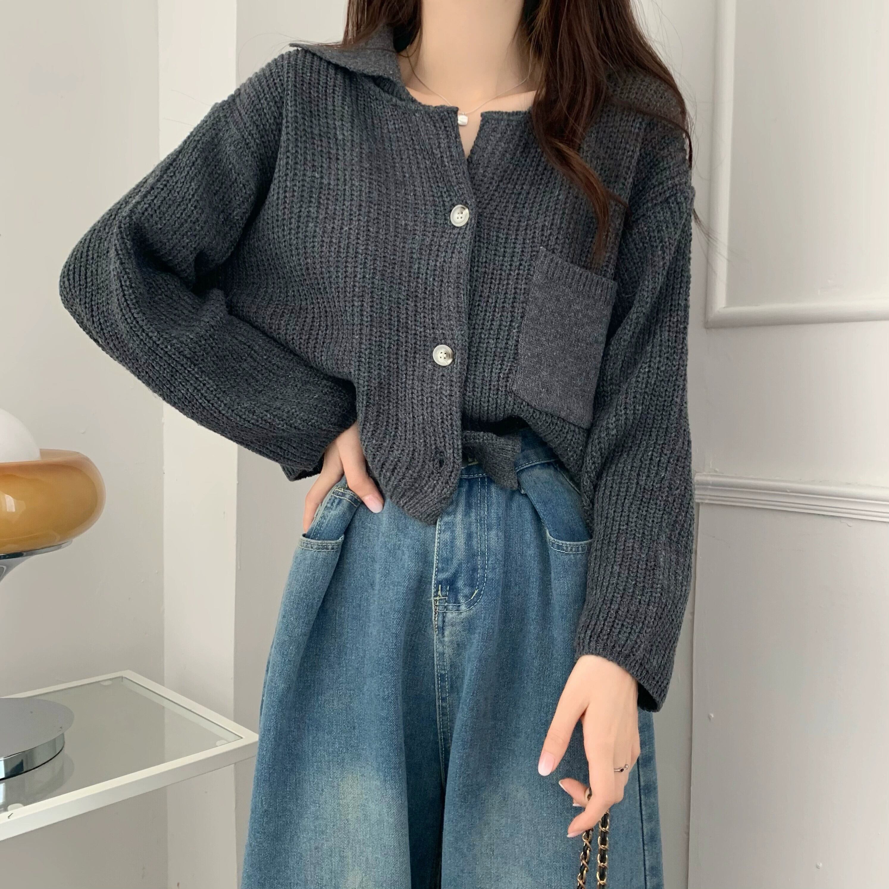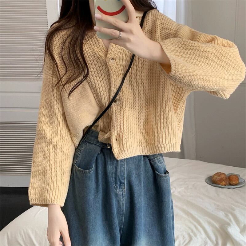 ラペルセータージャケット女性秋と冬 2023 新スタイル怠惰なスタイルカーディガンルーズアウターショートニットセーター オータム 秋物 ウィンター 冬物 7460097979223403 | framboise21