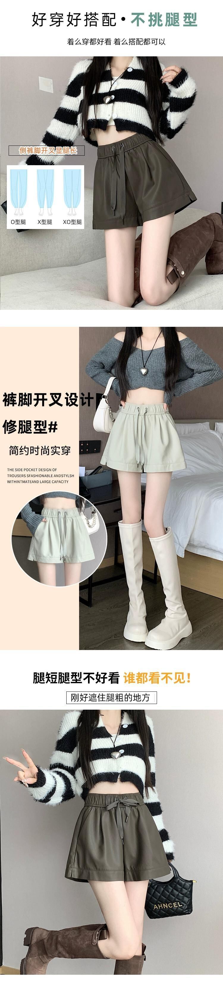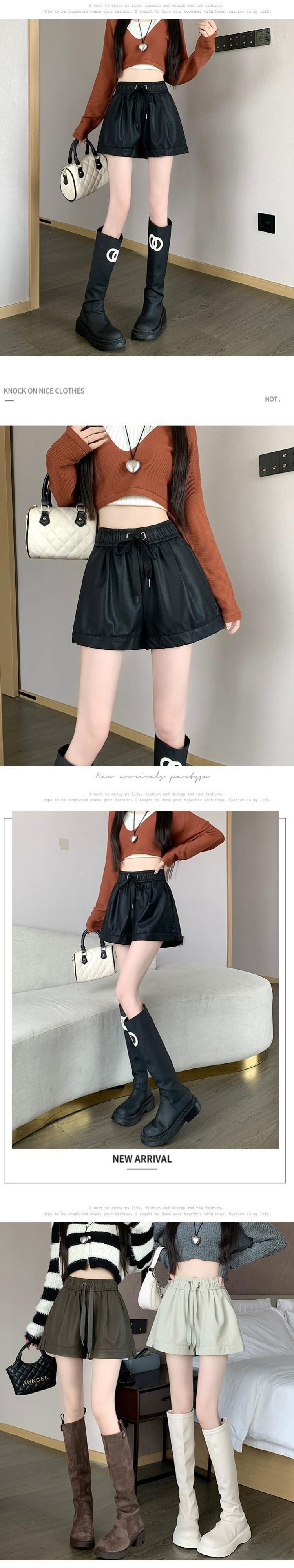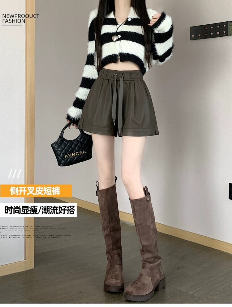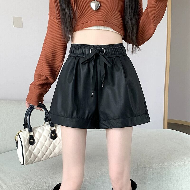 黒 pu レザーショートパンツ女性 2023 秋と冬の新しい黒ワイドレッグブーツパンツハイウエスト a ラインカジュアルパンツを着用 ブラック オータム 秋物 ウィンター 冬物 ショーツ ブルマー Aライン 7460053798081612 | framboise21