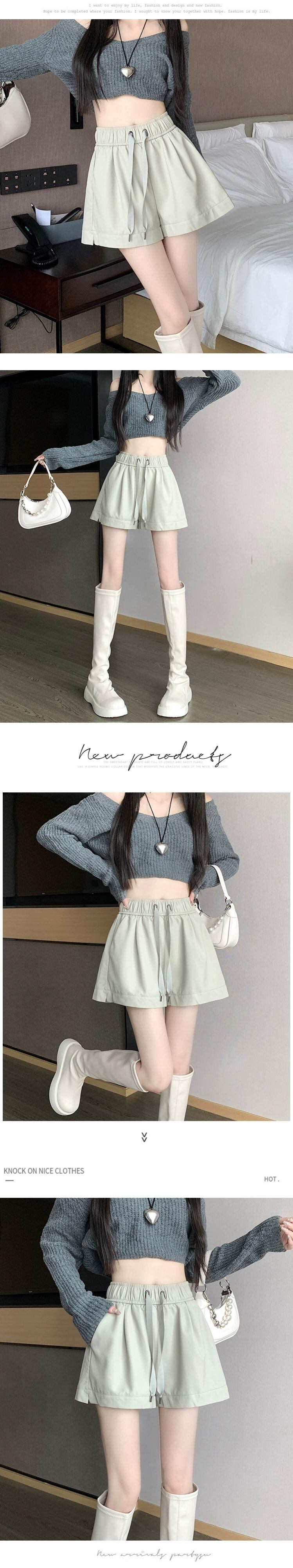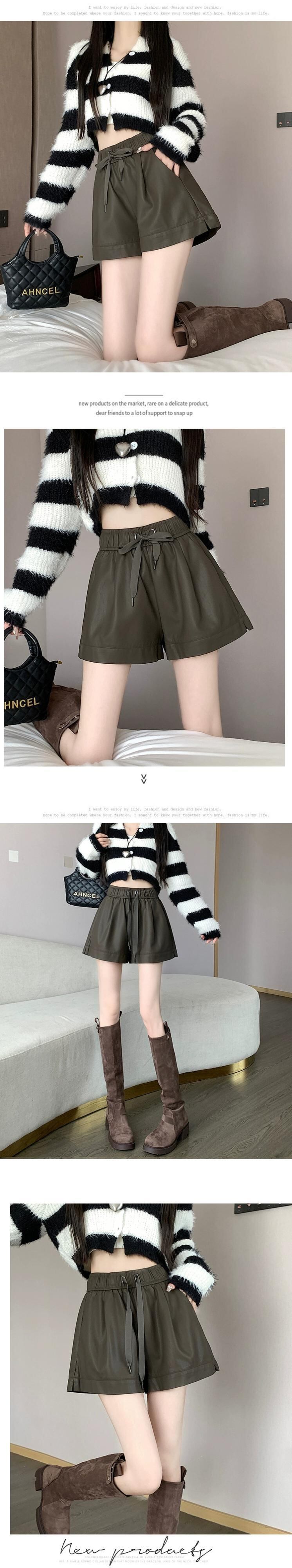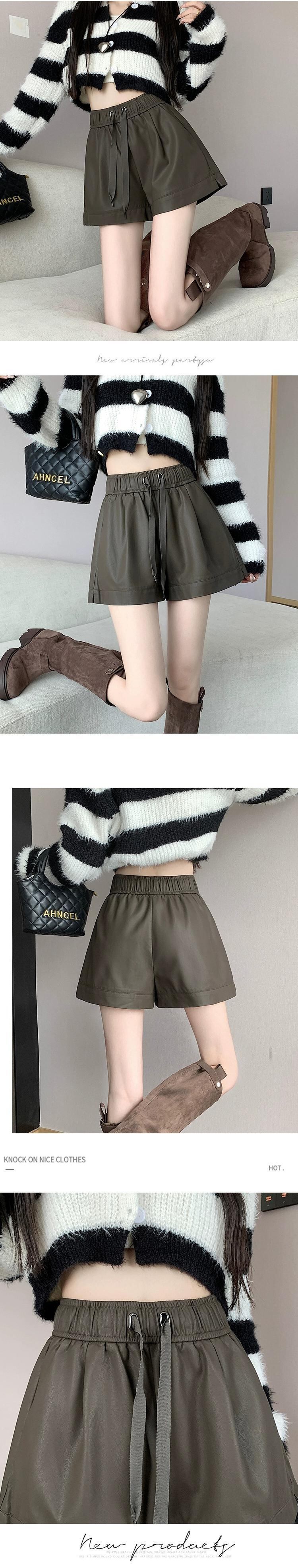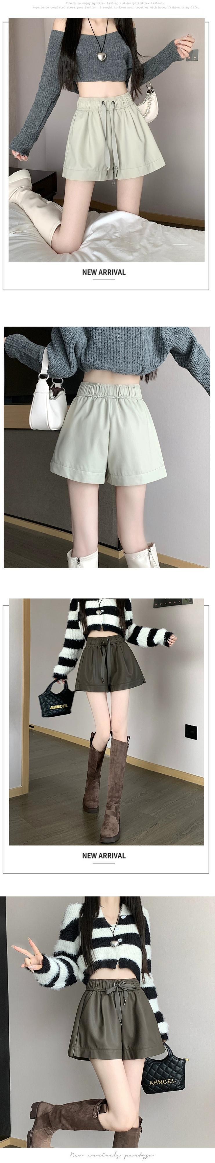 黒 pu レザーショートパンツ女性 2023 秋と冬の新しい黒ワイドレッグブーツパンツハイウエスト a ラインカジュアルパンツを着用 ブラック オータム 秋物 ウィンター 冬物 ショーツ ブルマー Aライン 7460053798081612 | framboise21