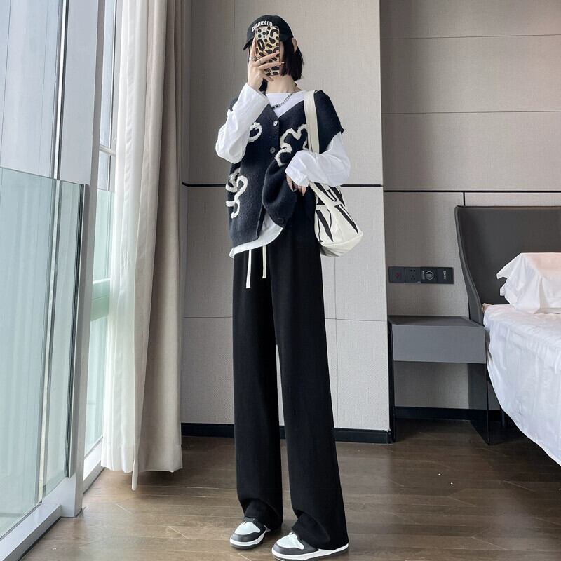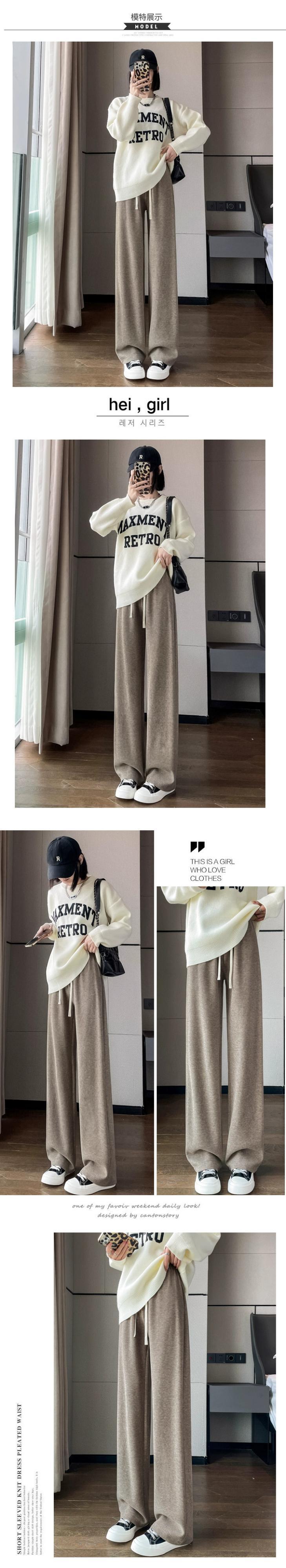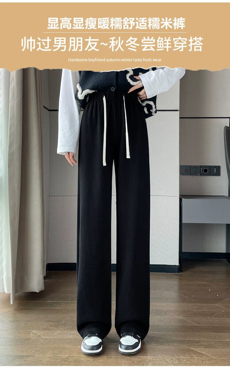 ベルベット肥厚ワイドレッグパンツ女性の秋と冬 2023 新しいカシミヤもち米パンツハイウエストドレープストレートフロアモップカジュアルパンツ ハイウェスト オータム 秋物 ウィンター 冬物 ワイドパンツ 7460052530870450 | framboise21