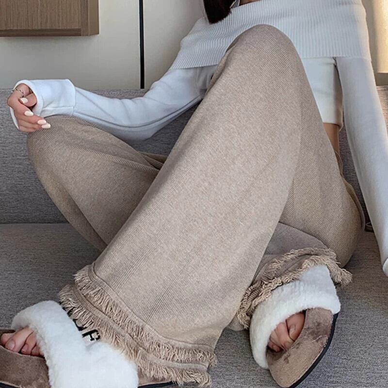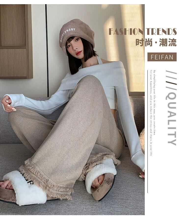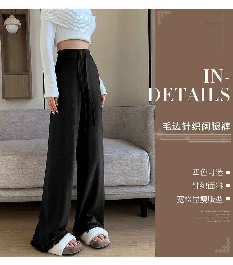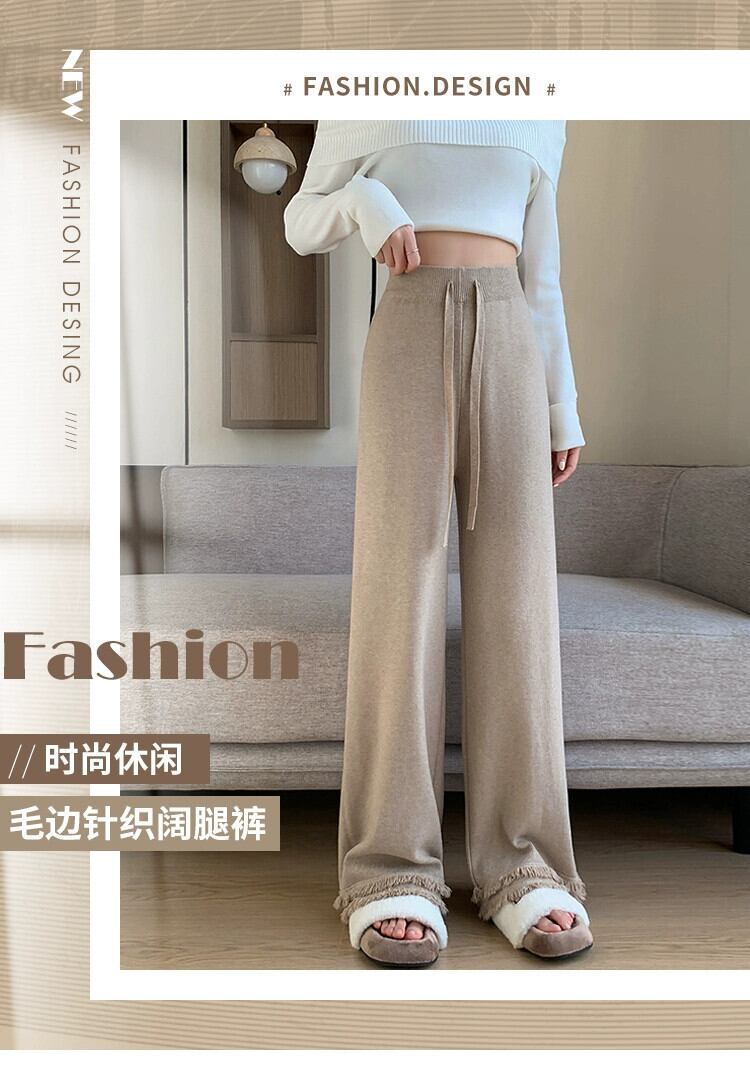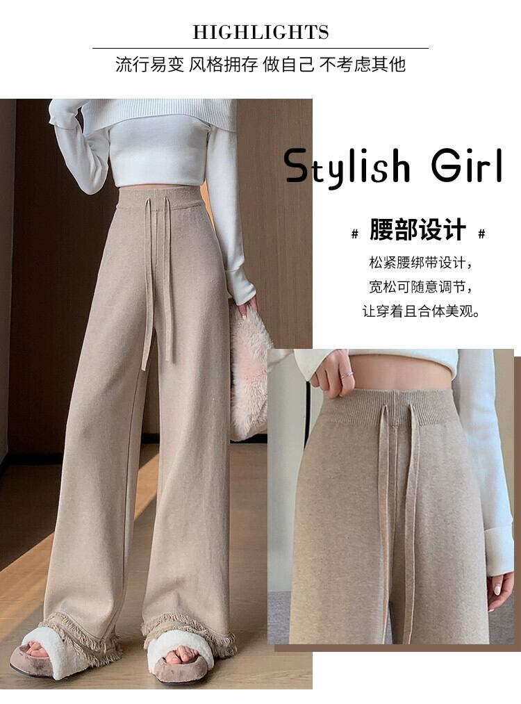 オートミール色のテルローエッジワイドレッグパンツレディース秋冬ハイウエストドレープニットフロアレングスパンツスリミングストレートカジュアルパンツ レッド ウィンター 冬物 7460034675087997 | framboise21