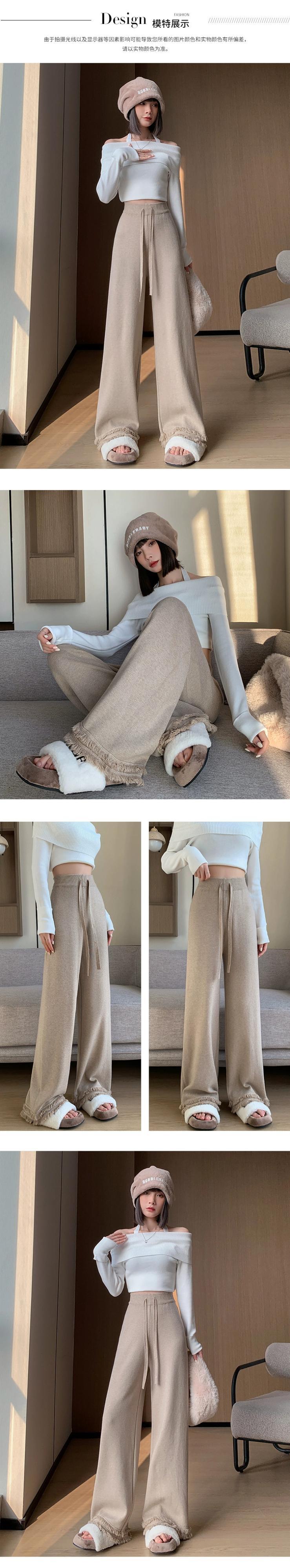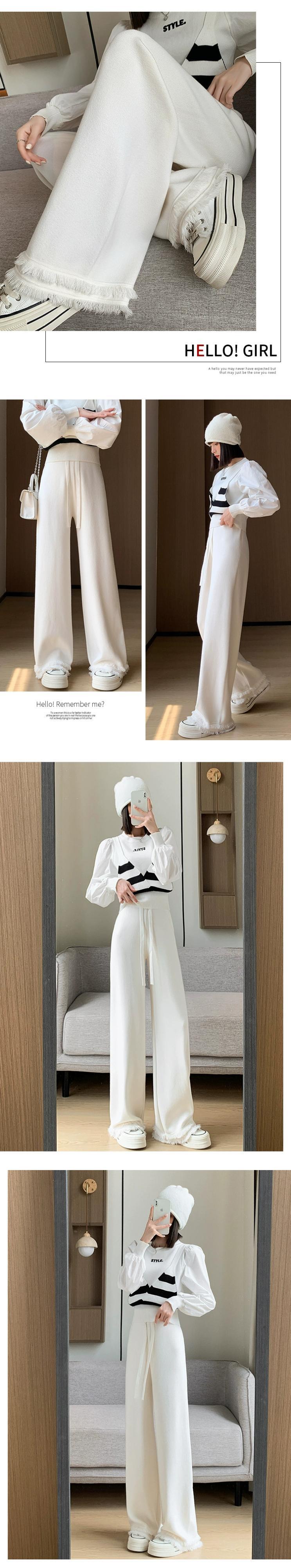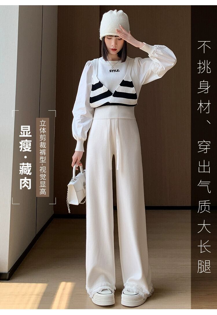オートミール色のテルローエッジワイドレッグパンツレディース秋冬ハイウエストドレープニットフロアレングスパンツスリミングストレートカジュアルパンツ レッド ウィンター 冬物 7460034675087997 | framboise21