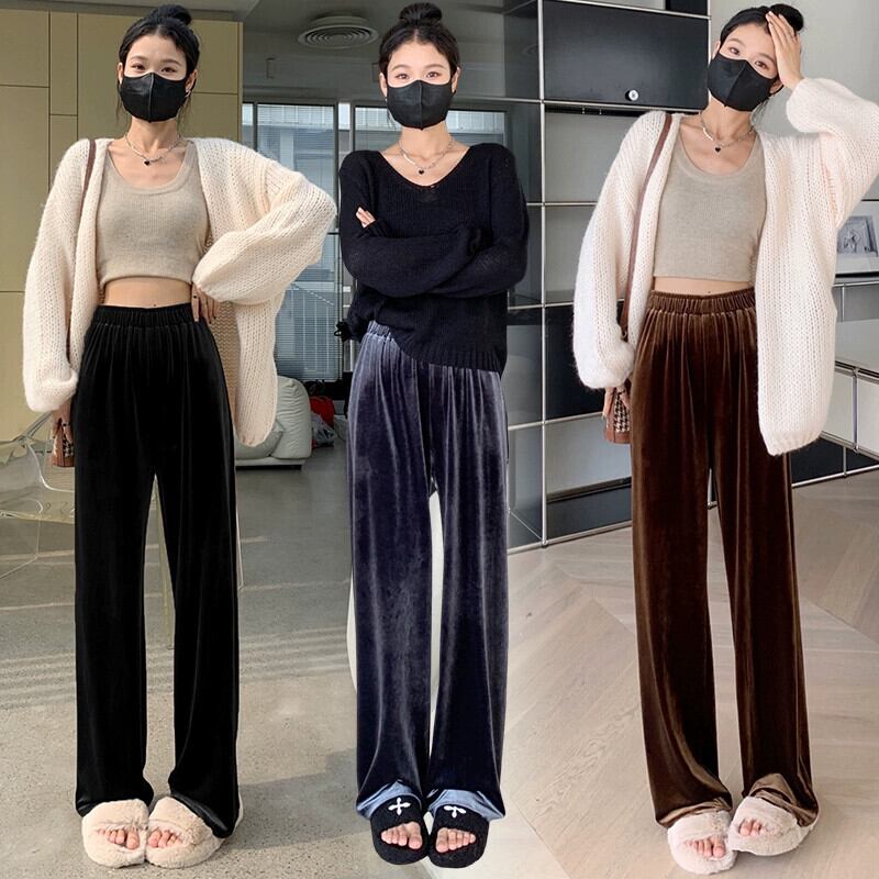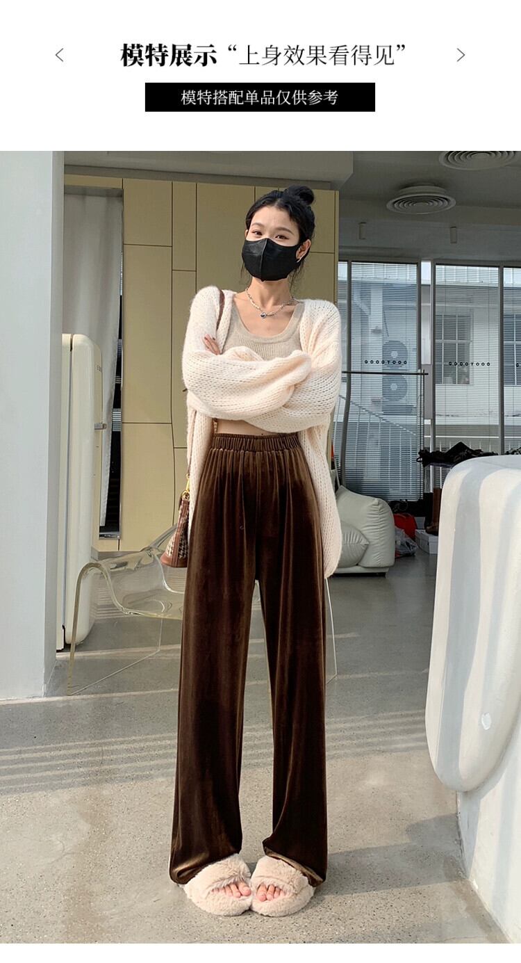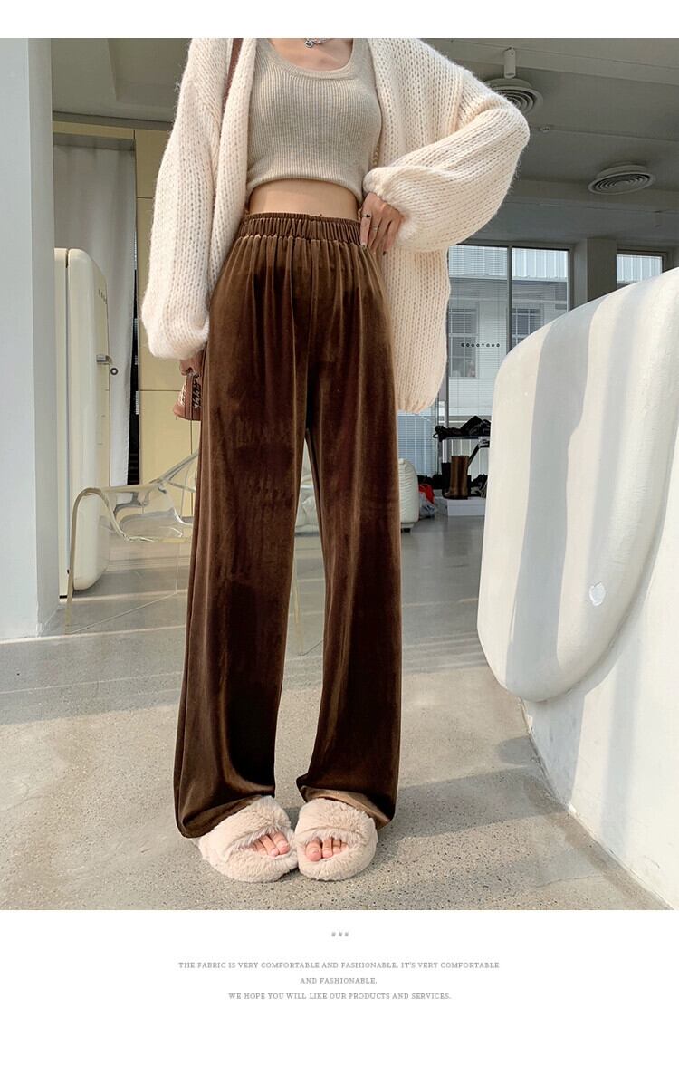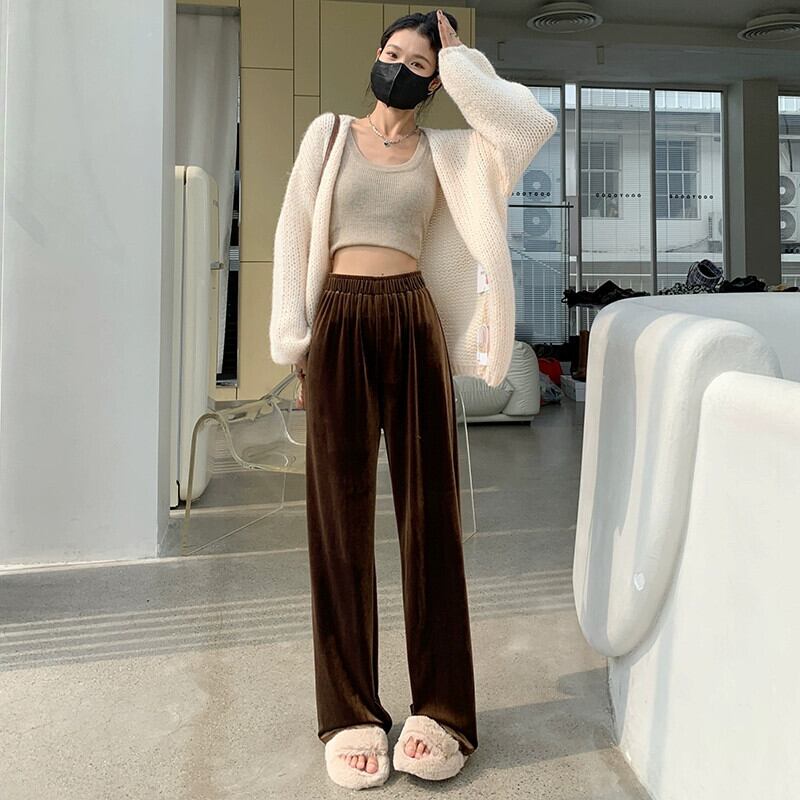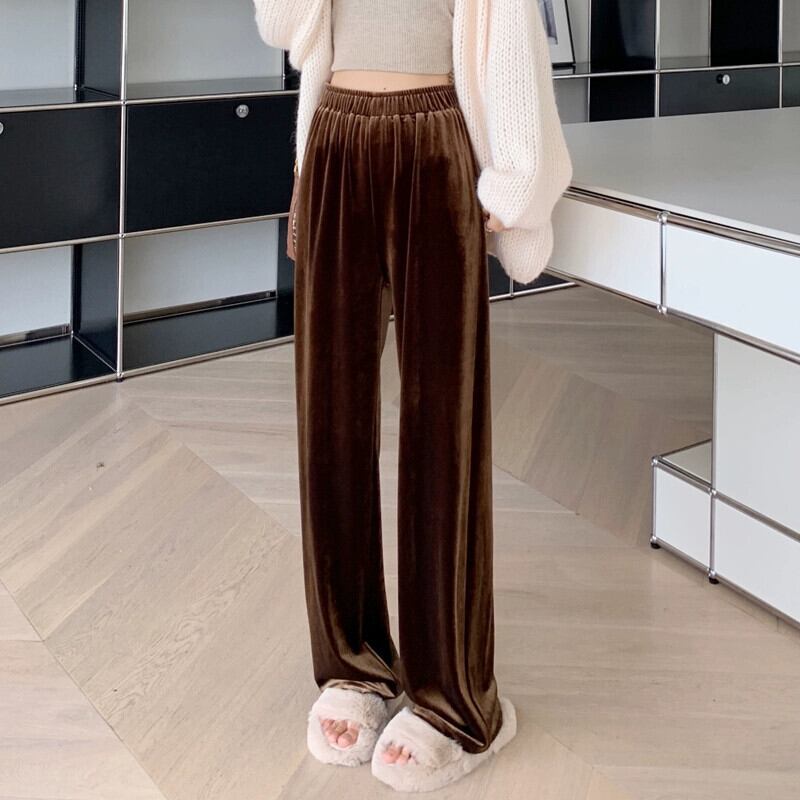ブラウンベルベットワイドレッグパンツ女性 2023 新しい秋と冬のドレープフロアレングスパンツルーズ痩身ストレートカジュアルパンツ女性 オータム 秋物 ウィンター 冬物 7460042212187641 | framboise21