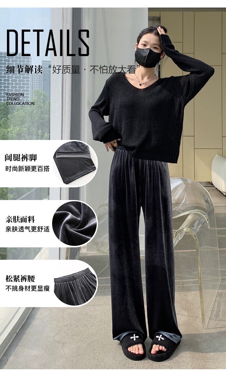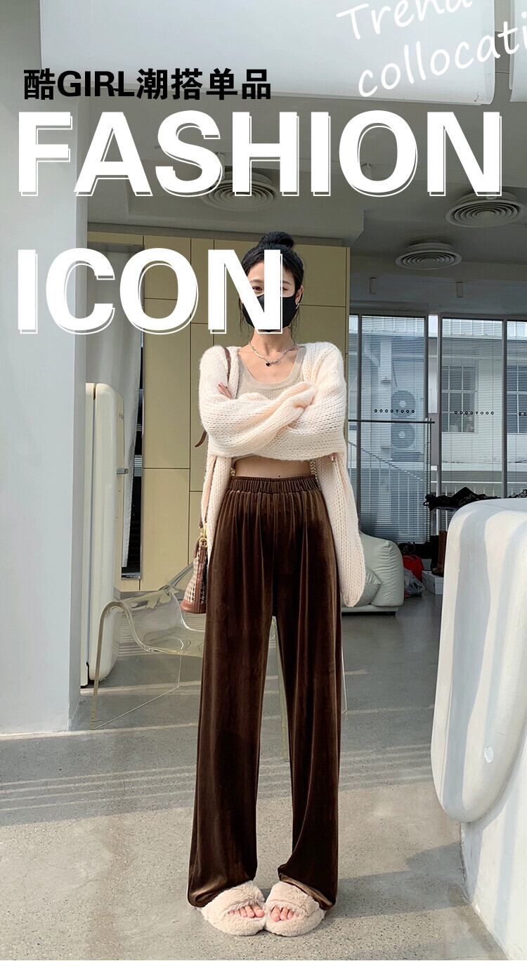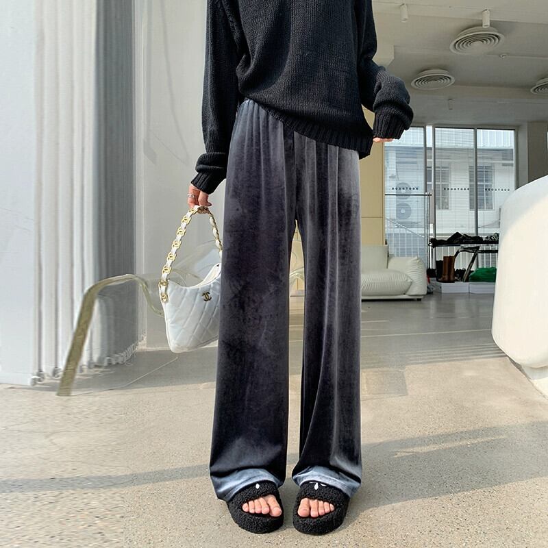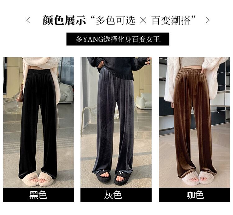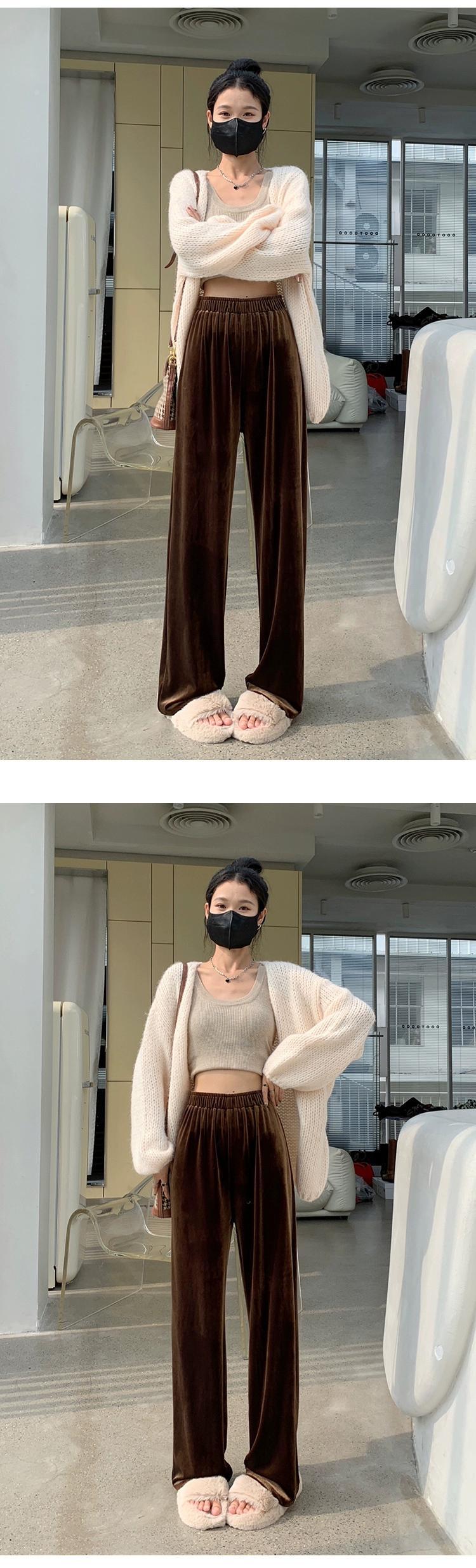 ブラウンベルベットワイドレッグパンツ女性 2023 新しい秋と冬のドレープフロアレングスパンツルーズ痩身ストレートカジュアルパンツ女性 オータム 秋物 ウィンター 冬物 7460042212187641 | framboise21