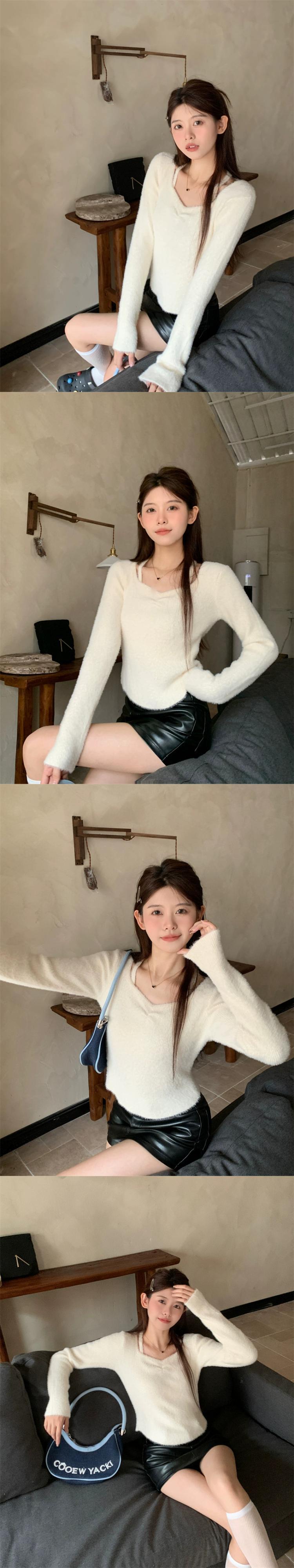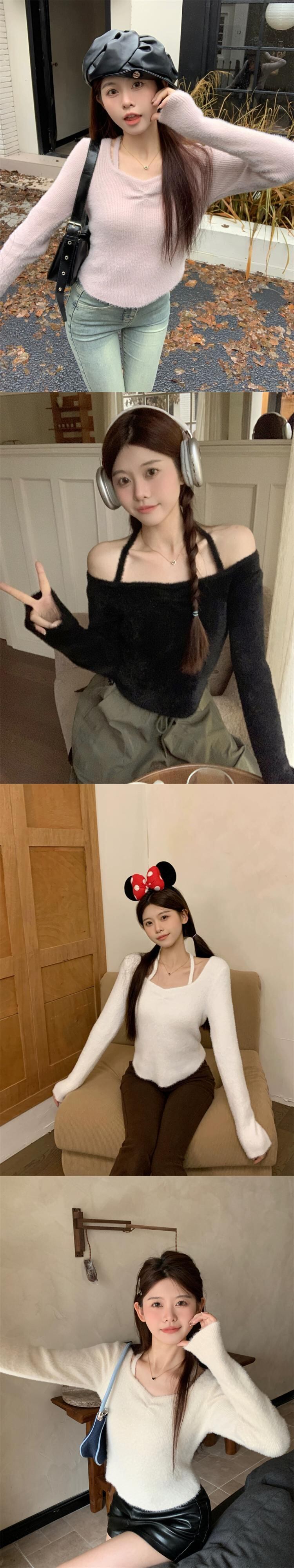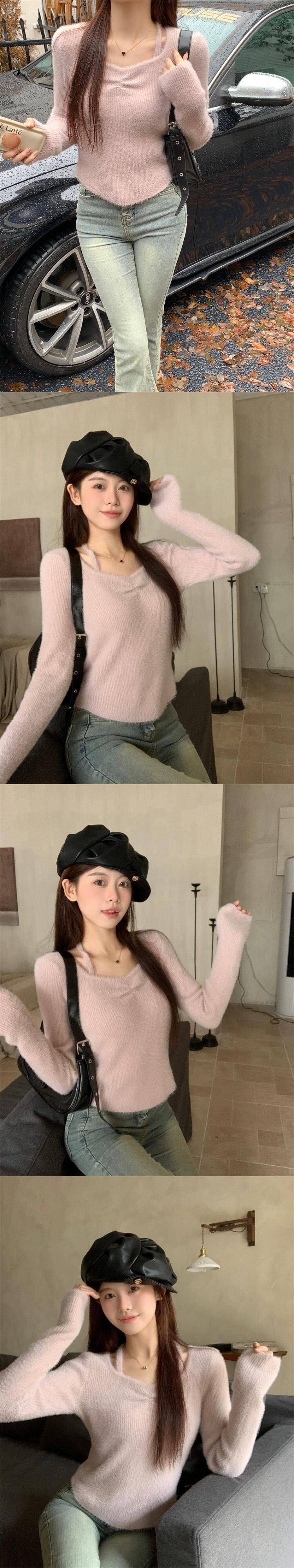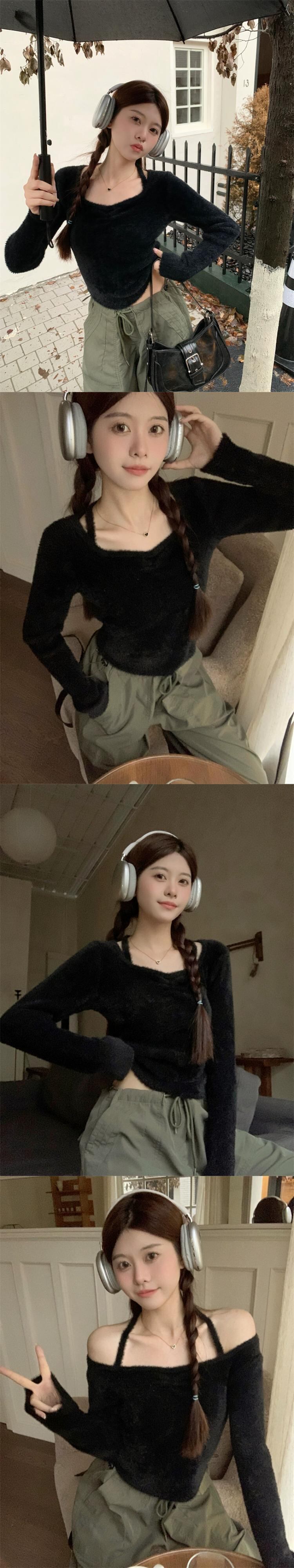 秋冬のホルターネック スクエアネック ボトムス セーター レディース。小さめのスリムフィットでスリムフィット。中に着る短めの長袖セーター。 ショート ロング オータム 秋物 ウィンター 冬物 スクウェア 7460093401375060 | framboise21