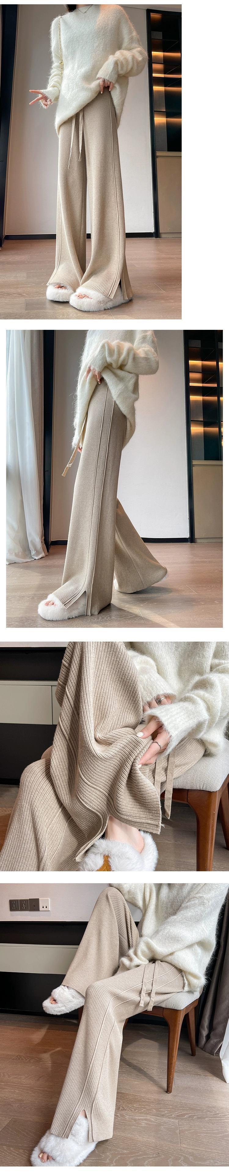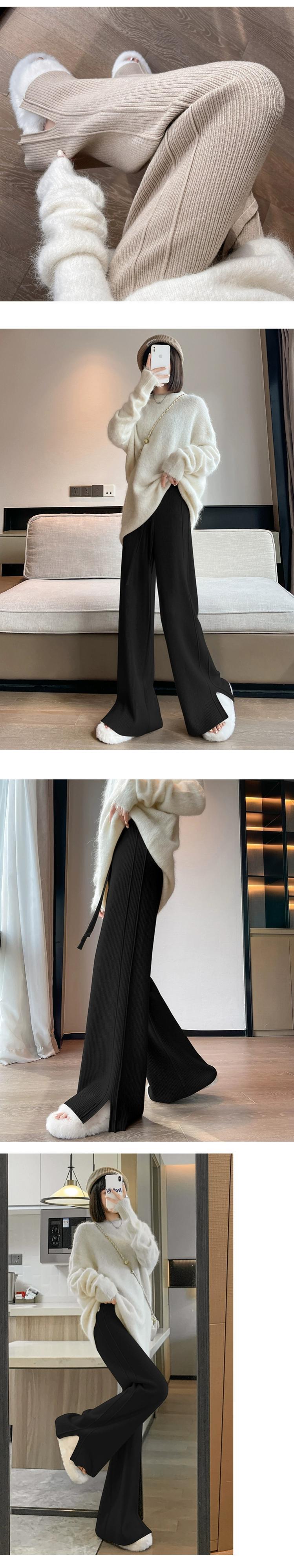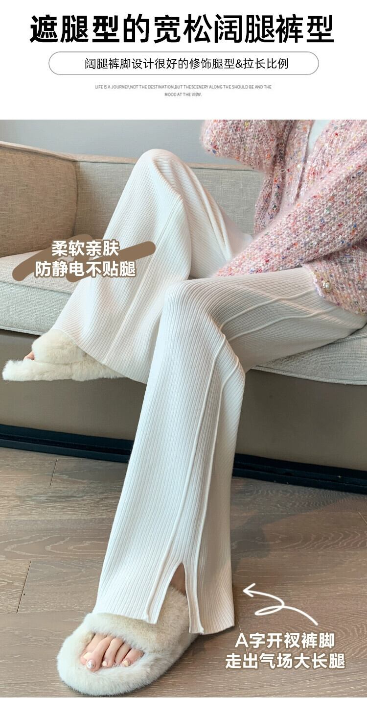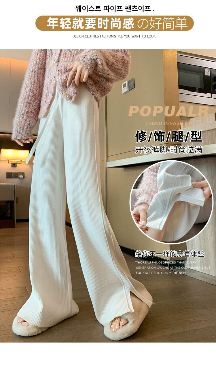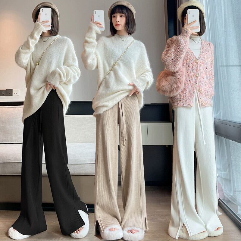 スリットカシミヤニットワイドレッグパンツ女性秋冬白ソフトワックスパンツハイウエストスリムストレートカジュアルパンツ ホワイト オータム 秋物 ウィンター 冬物 7460033545005107 | framboise21
