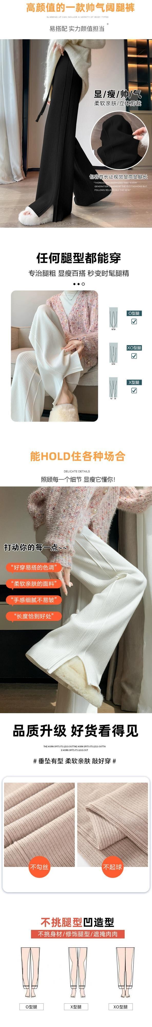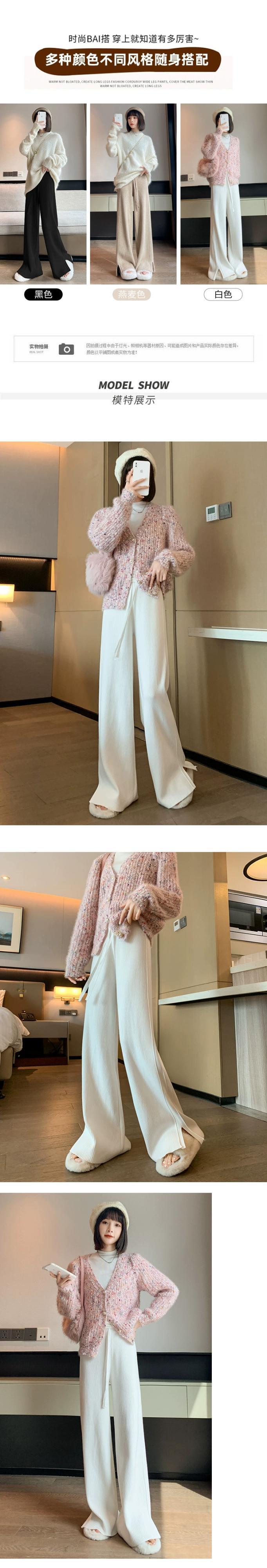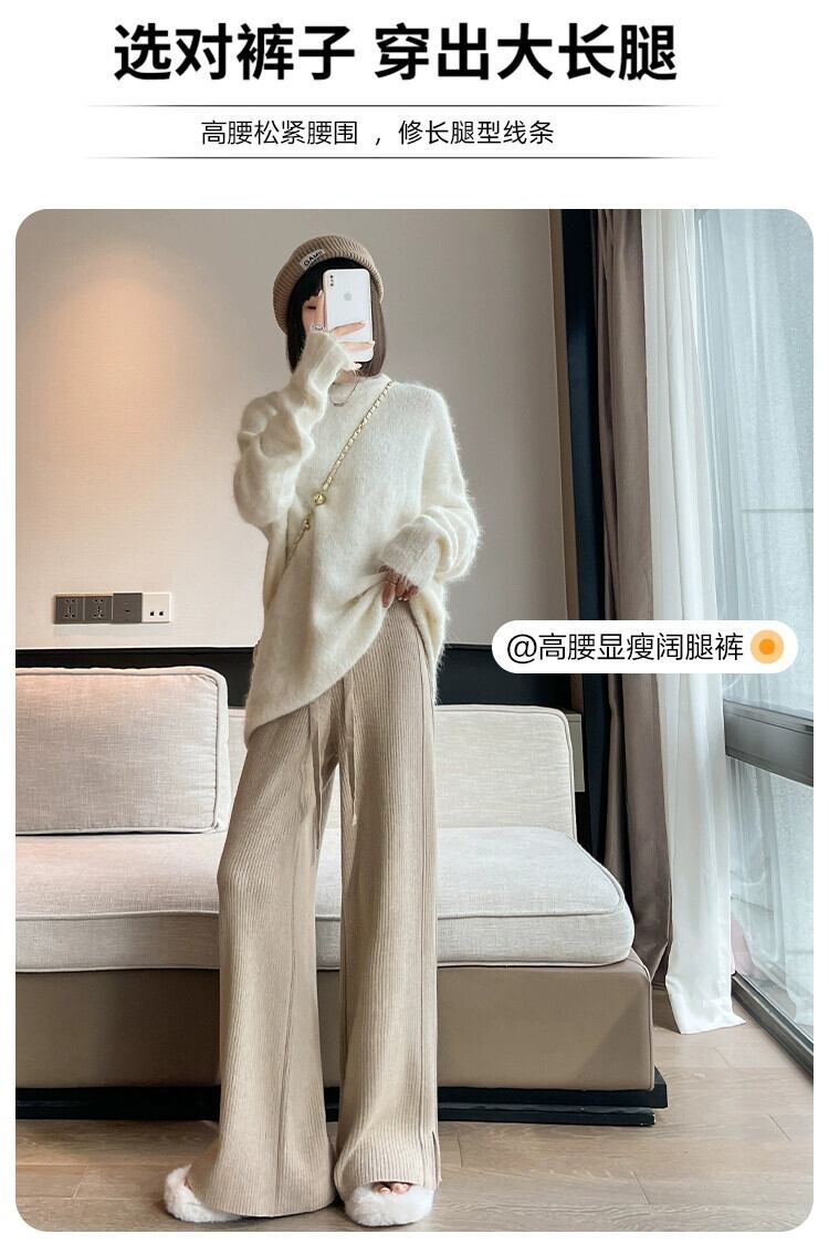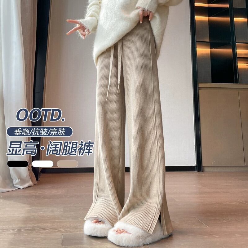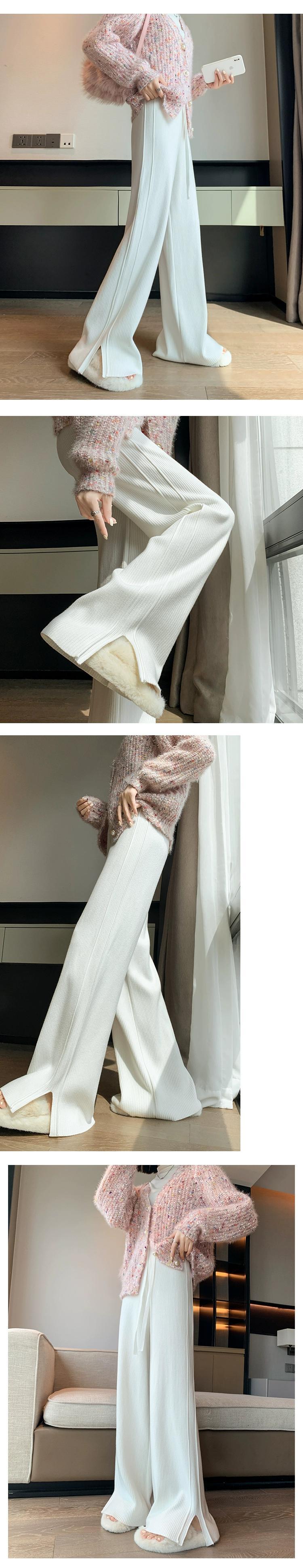 スリットカシミヤニットワイドレッグパンツ女性秋冬白ソフトワックスパンツハイウエストスリムストレートカジュアルパンツ ホワイト オータム 秋物 ウィンター 冬物 7460033545005107 | framboise21