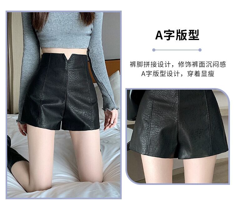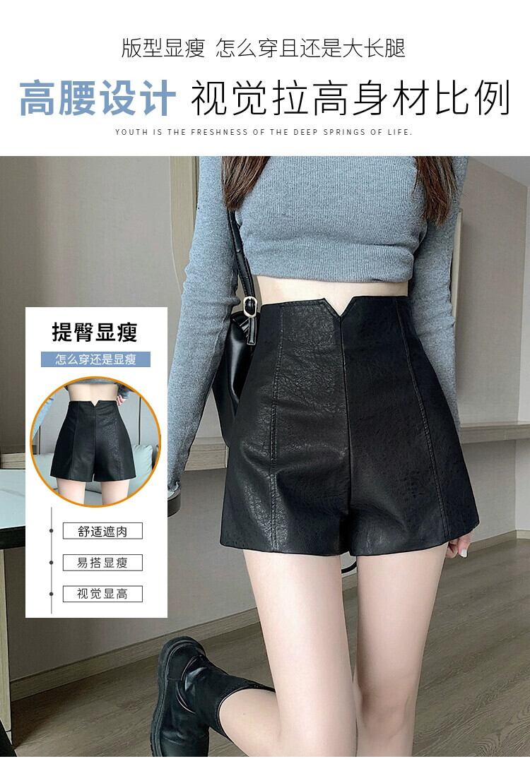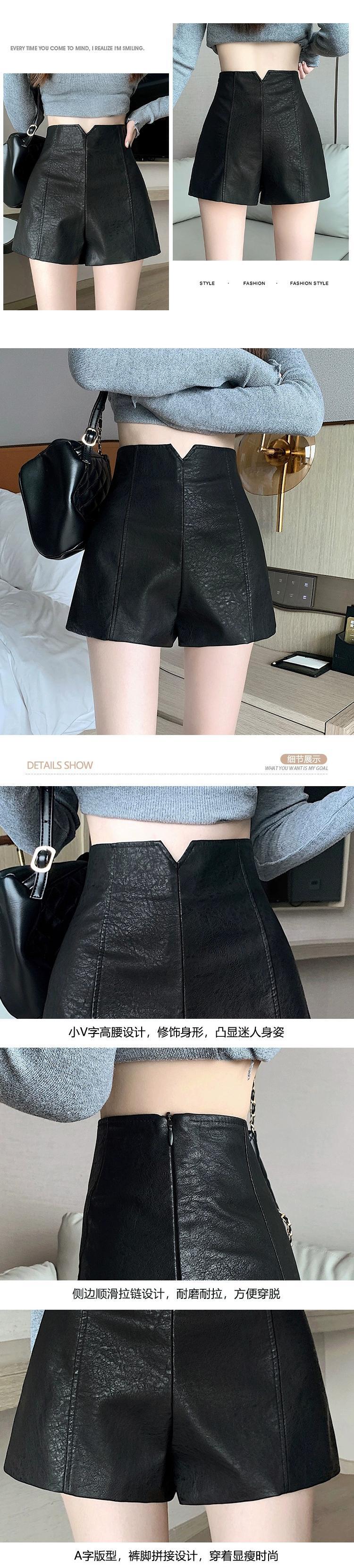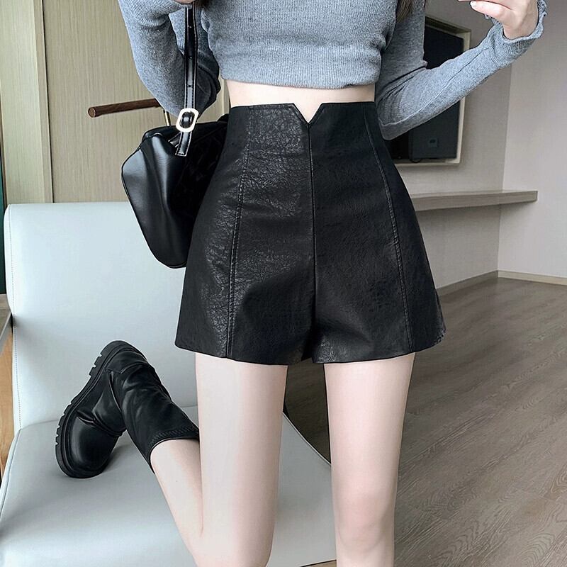 PUレザーショートレザーパンツレディース、秋と冬、黒ブーツパンツ小柄な人、カジュアル、スリム、ハイウエスト、Aラインヒップハグパンツ ブラック オータム 秋物 ウィンター 冬物 7460031771963978 | framboise21