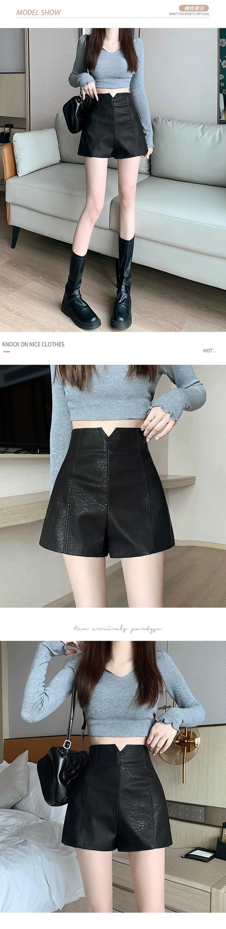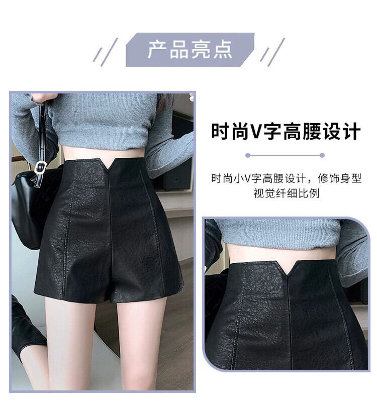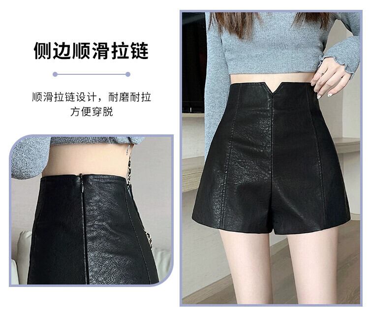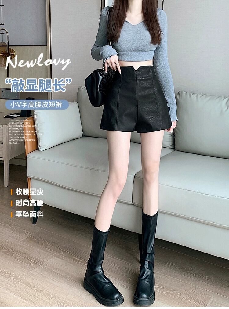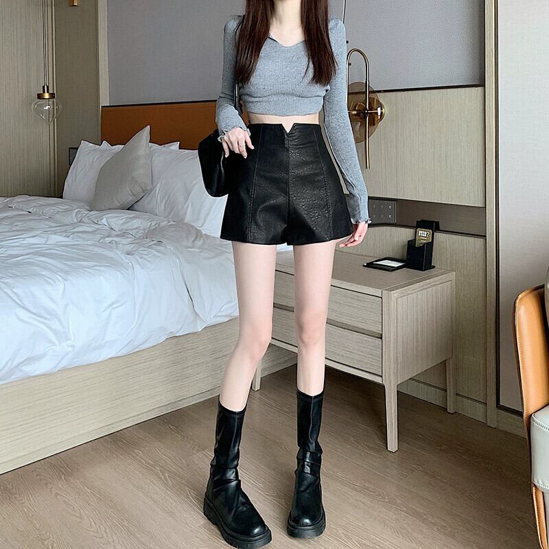PUレザーショートレザーパンツレディース、秋と冬、黒ブーツパンツ小柄な人、カジュアル、スリム、ハイウエスト、Aラインヒップハグパンツ ブラック オータム 秋物 ウィンター 冬物 7460031771963978 | framboise21
