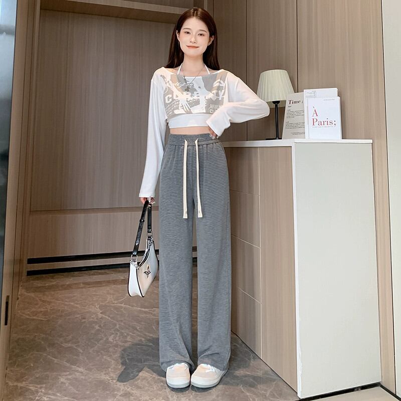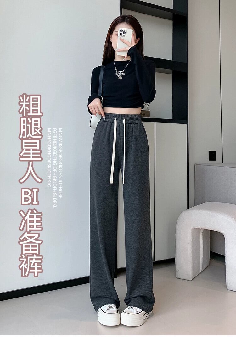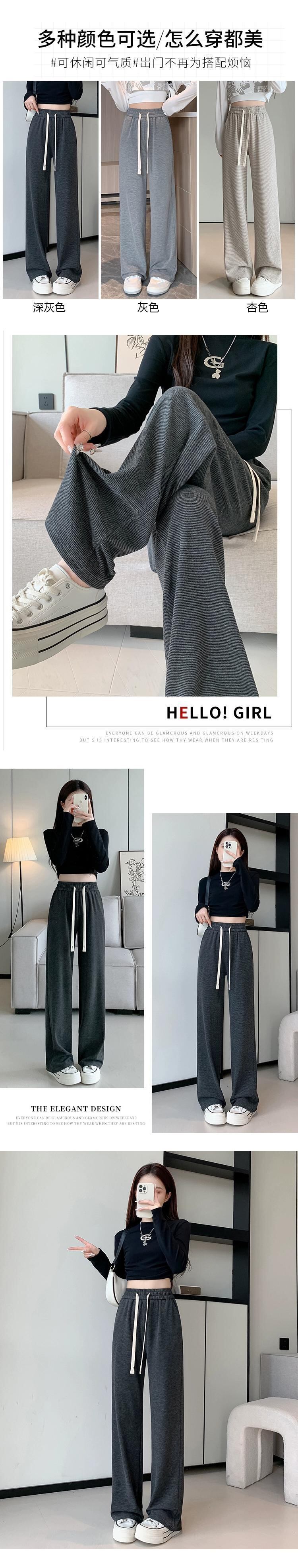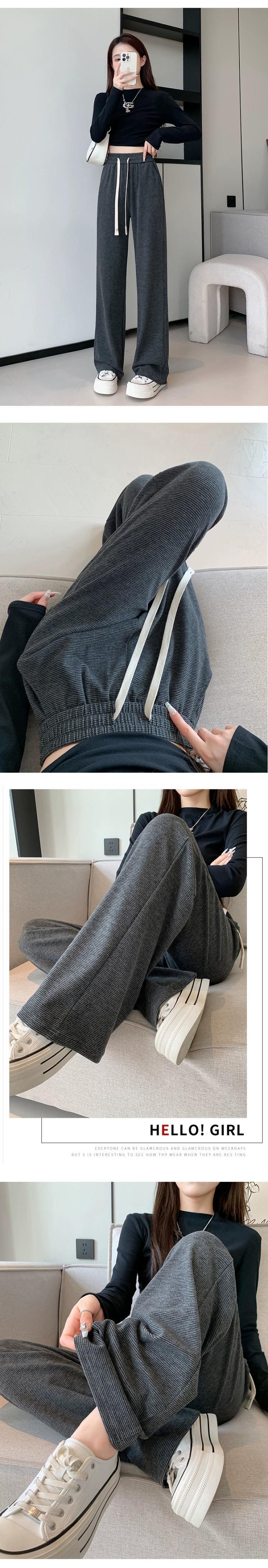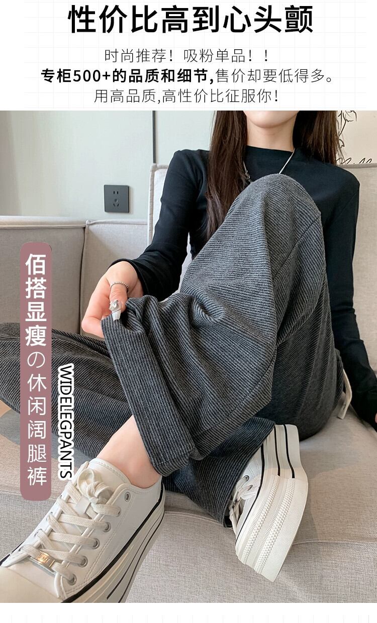 ダークグレーのソフトワックスニットワイドレッグパンツレディース、秋冬ハイウエストドレープパンツ、スリムナローバージョンカジュアルストレートレッグフロアレングスパンツ オータム 秋物 ウィンター 冬物 7460064597092308 | framboise21