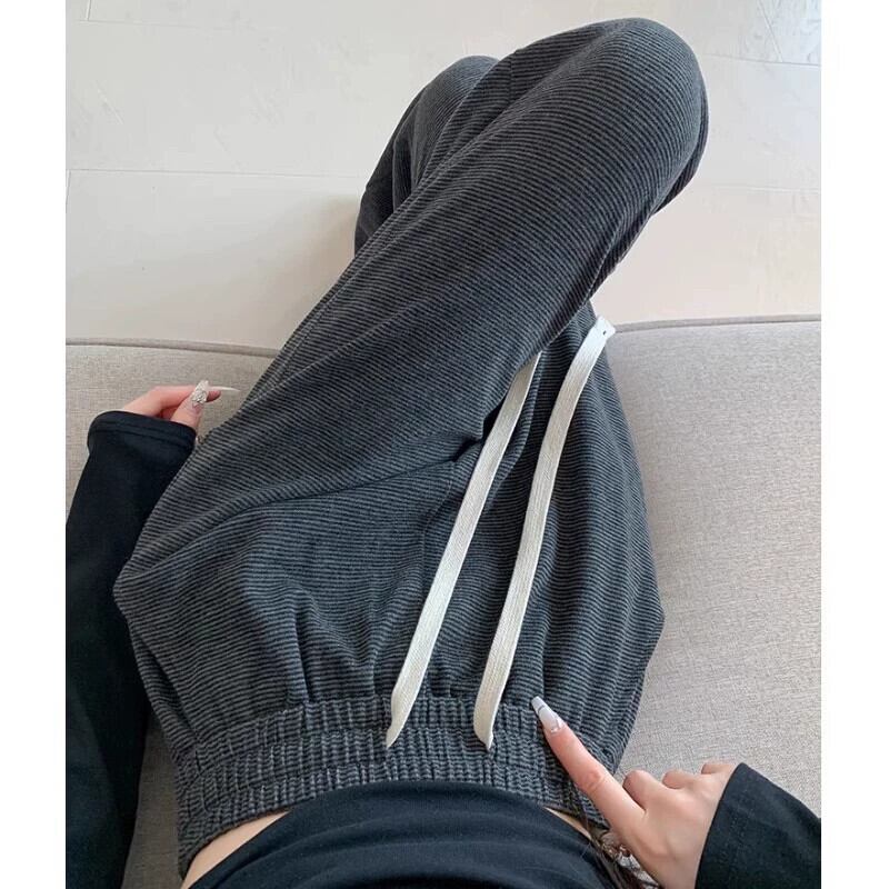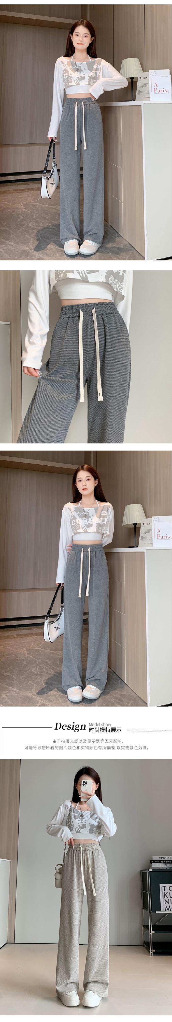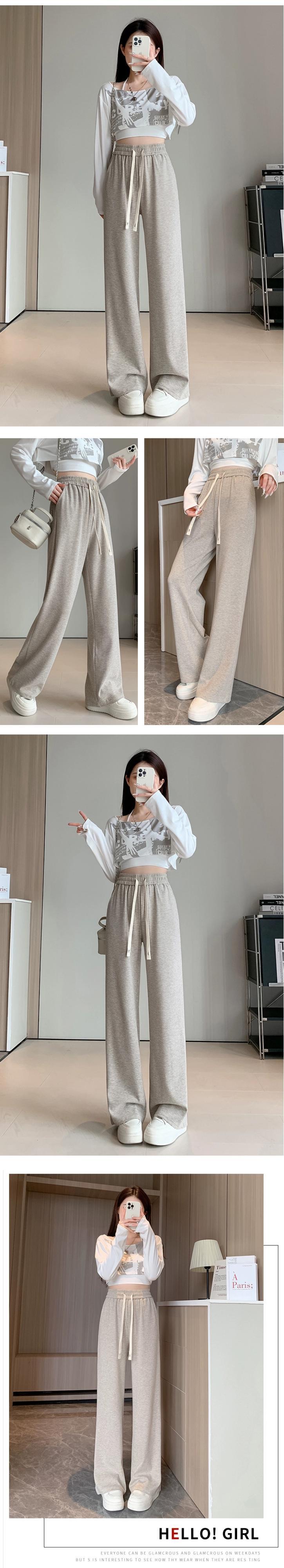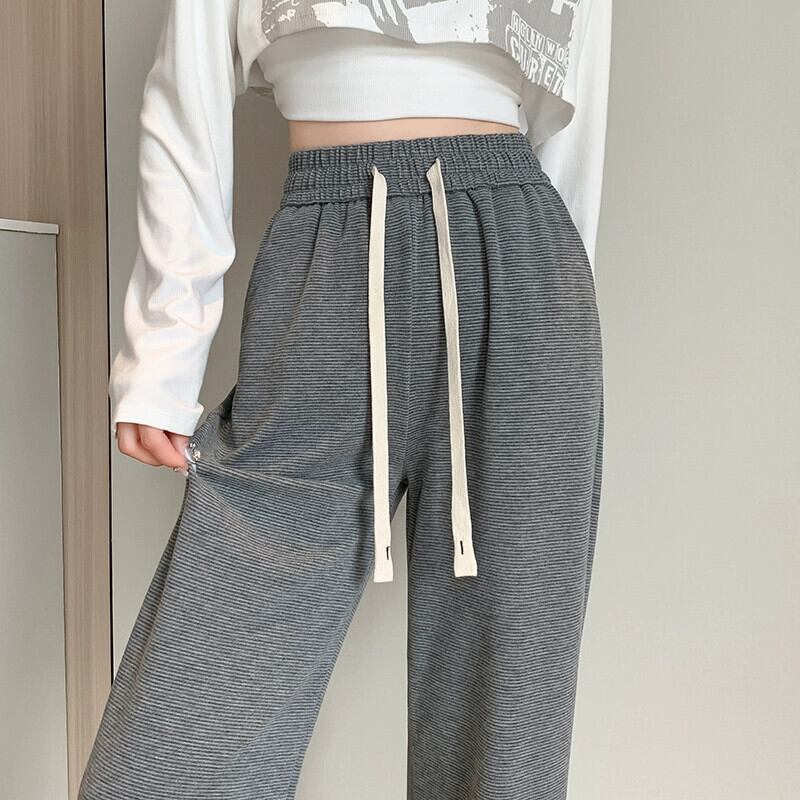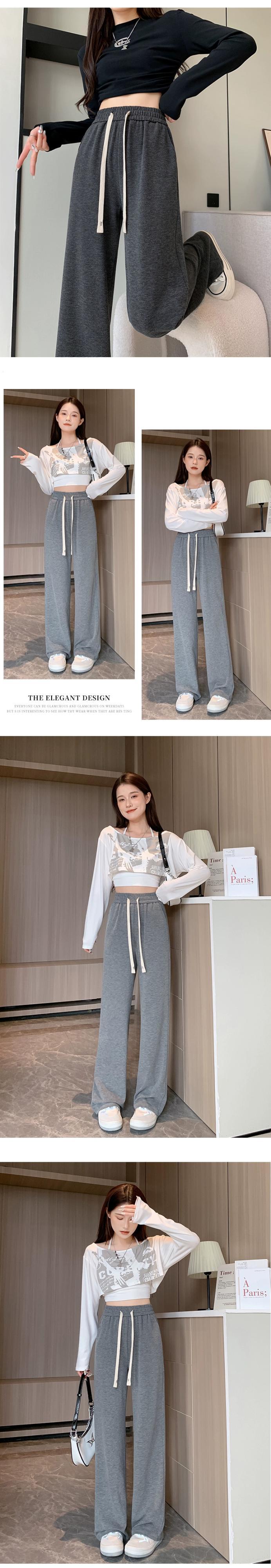 ダークグレーのソフトワックスニットワイドレッグパンツレディース、秋冬ハイウエストドレープパンツ、スリムナローバージョンカジュアルストレートレッグフロアレングスパンツ オータム 秋物 ウィンター 冬物 7460064597092308 | framboise21