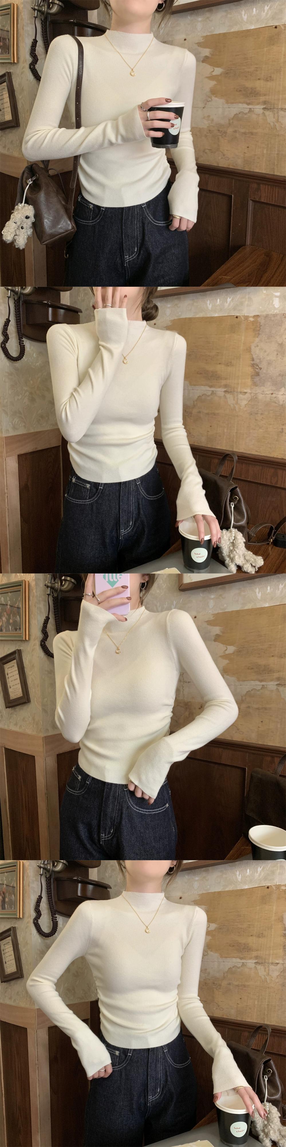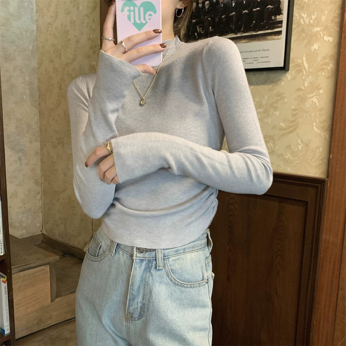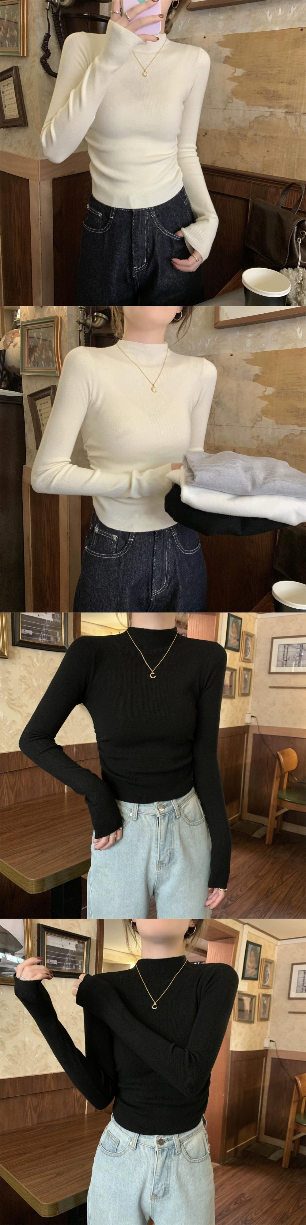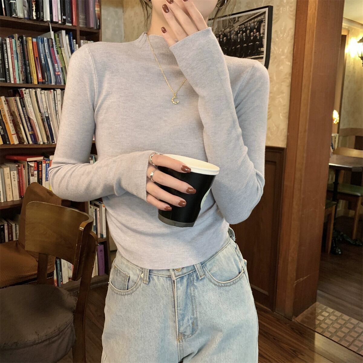 ハーフタートルネックニットボトムセーターレディース、秋冬スタイル、スリムフィット、不規則なプリーツプルオーバー長袖セーター ロング オータム 秋物 ウィンター 冬物 7460087795108666 | framboise21