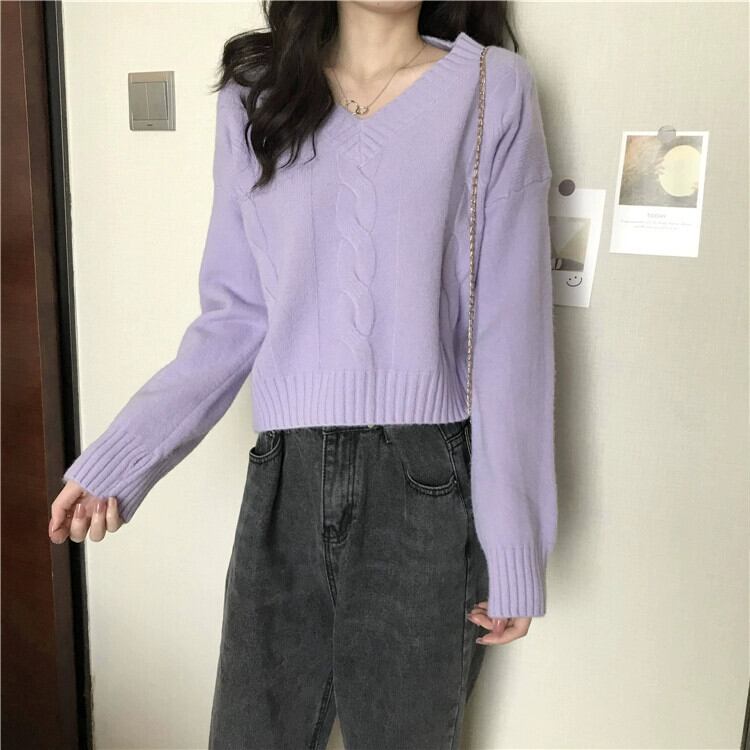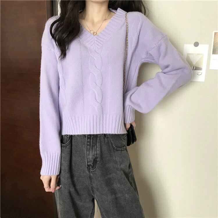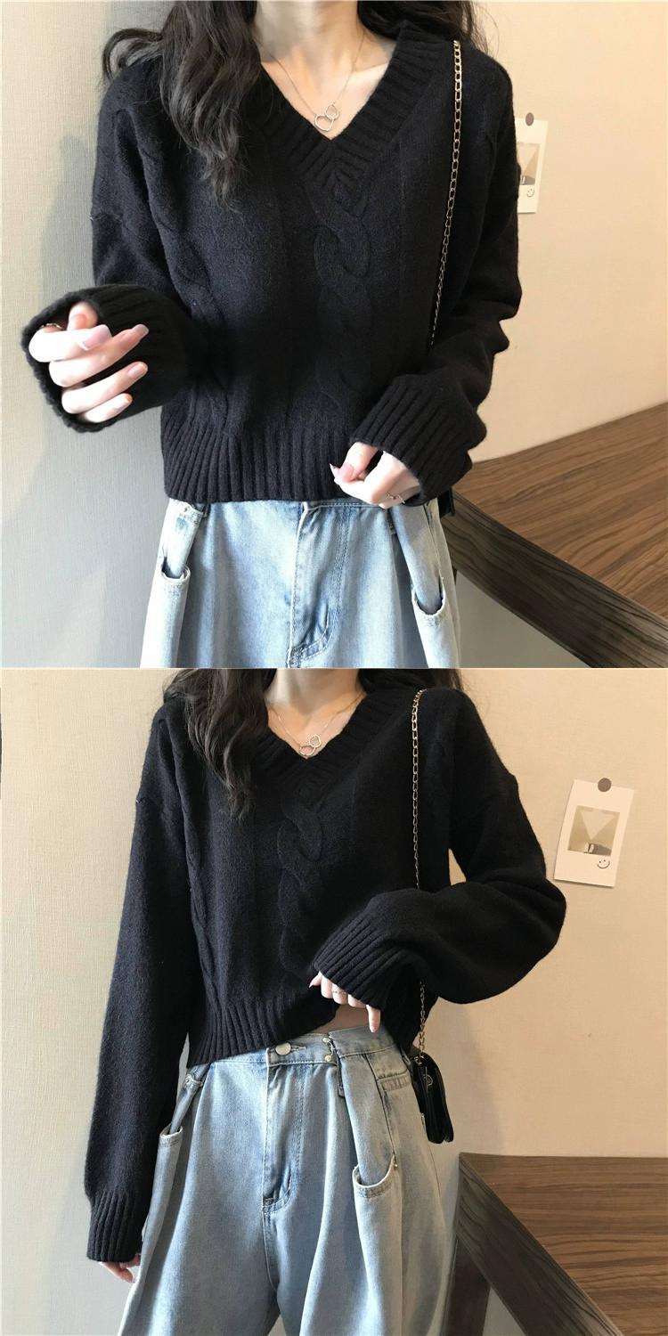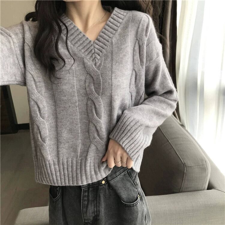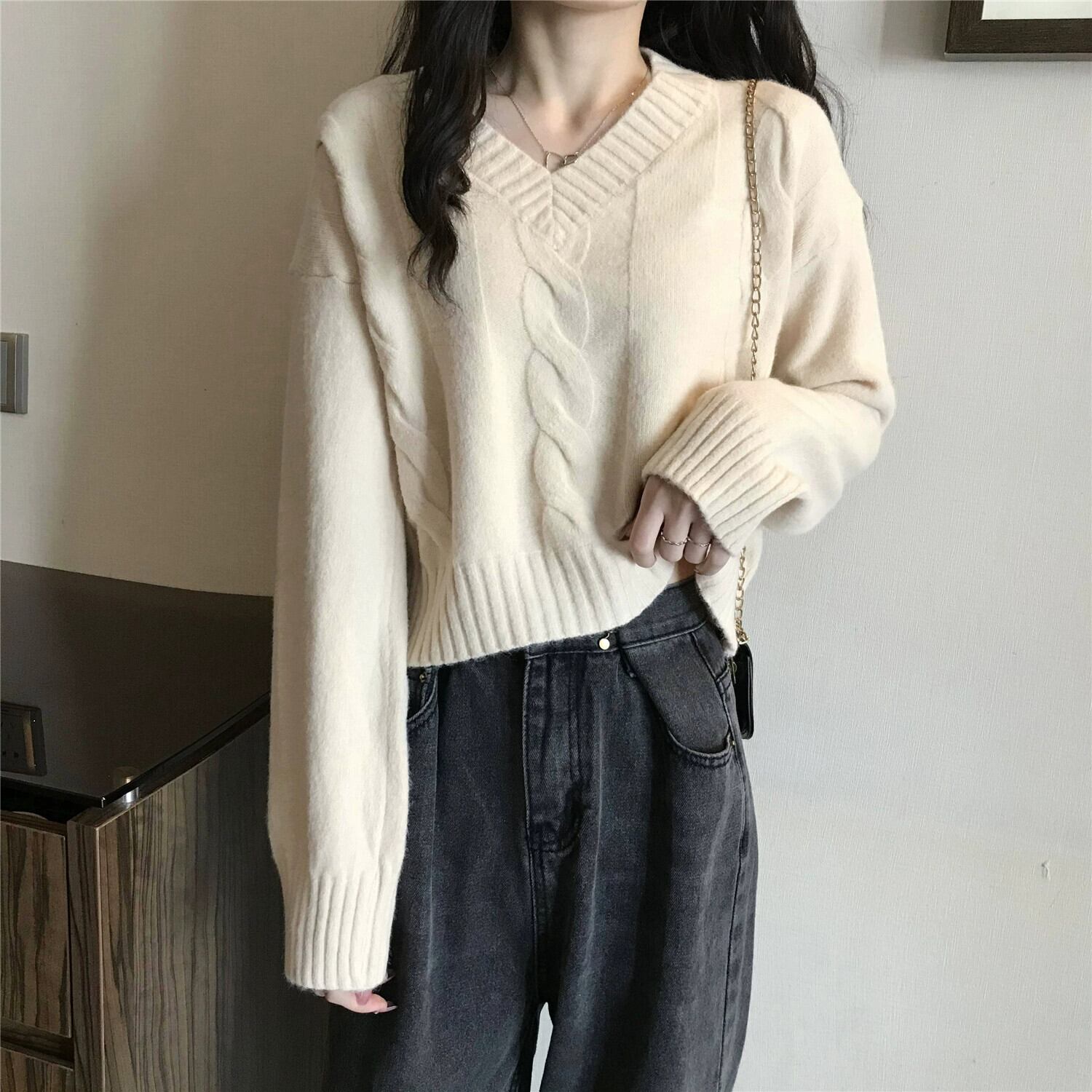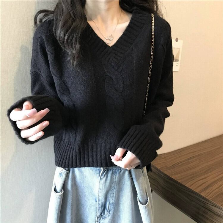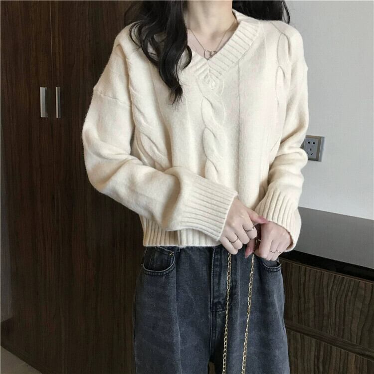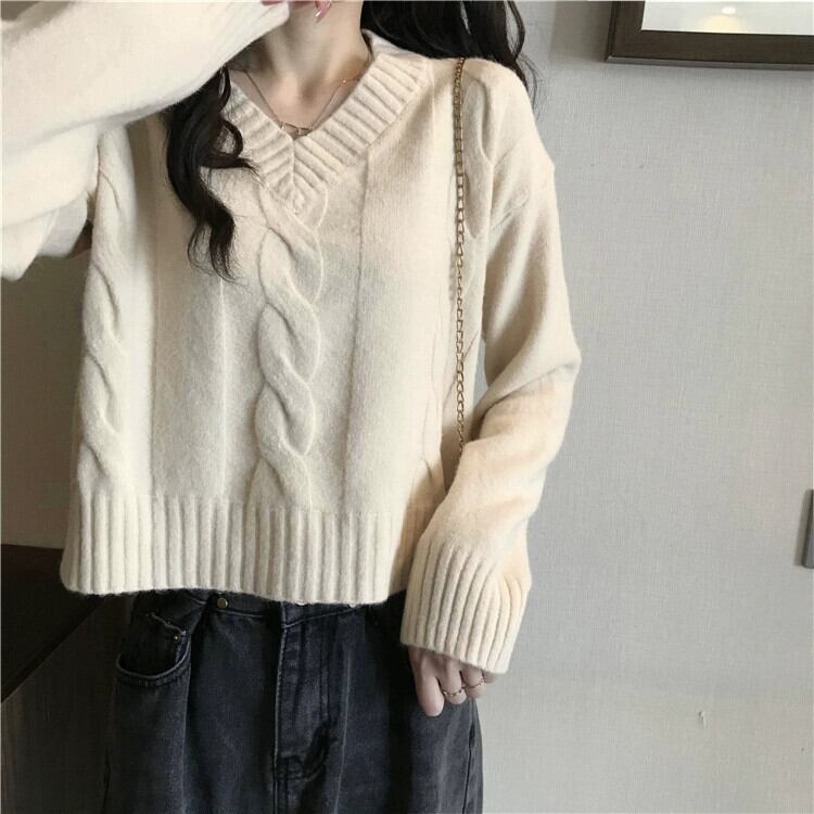 ショート V ネックツイストセーター女性秋冬 2023 新しいルーズアウターウェア多用途肥厚プルオーバー長袖セーター ロング オータム 秋物 ウィンター 冬物 Vネック 7460053417625494 | framboise21