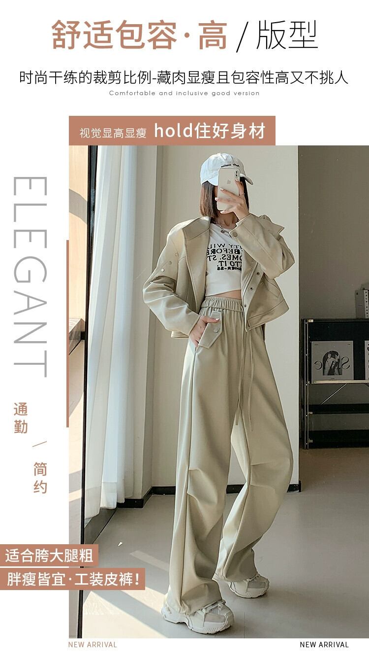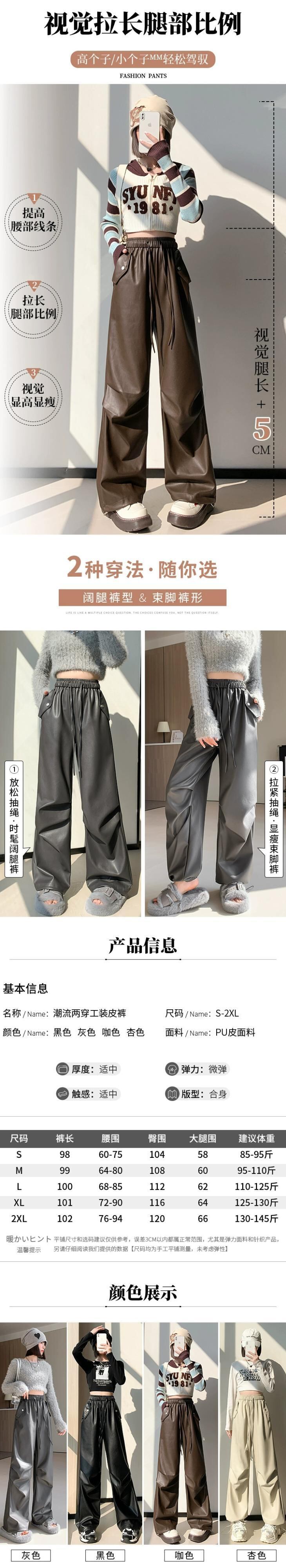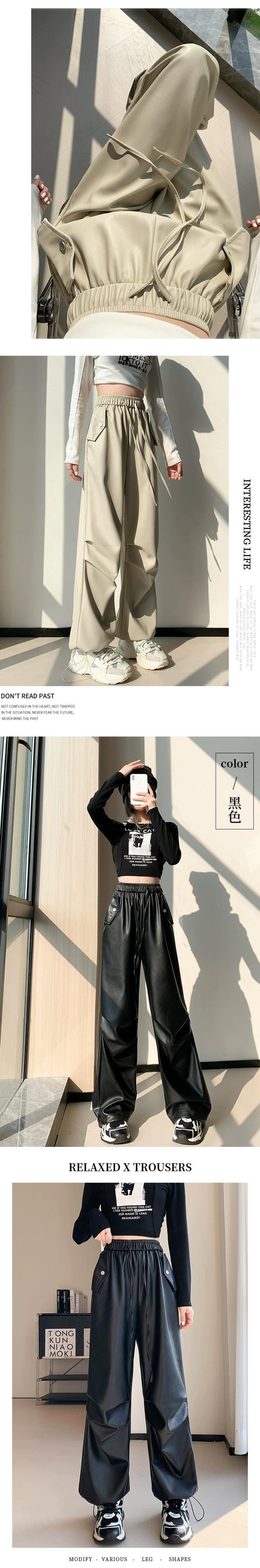 コーヒー色のPUレザーパンツ、ワイドレッグパンツレディース、秋冬ハイエンドアメリカンスタイルレギンスオーバーオール、ハイウエストストレートカジュアルパンツ レッド オータム 秋物 ウィンター 冬物 7460030700683175 | framboise21